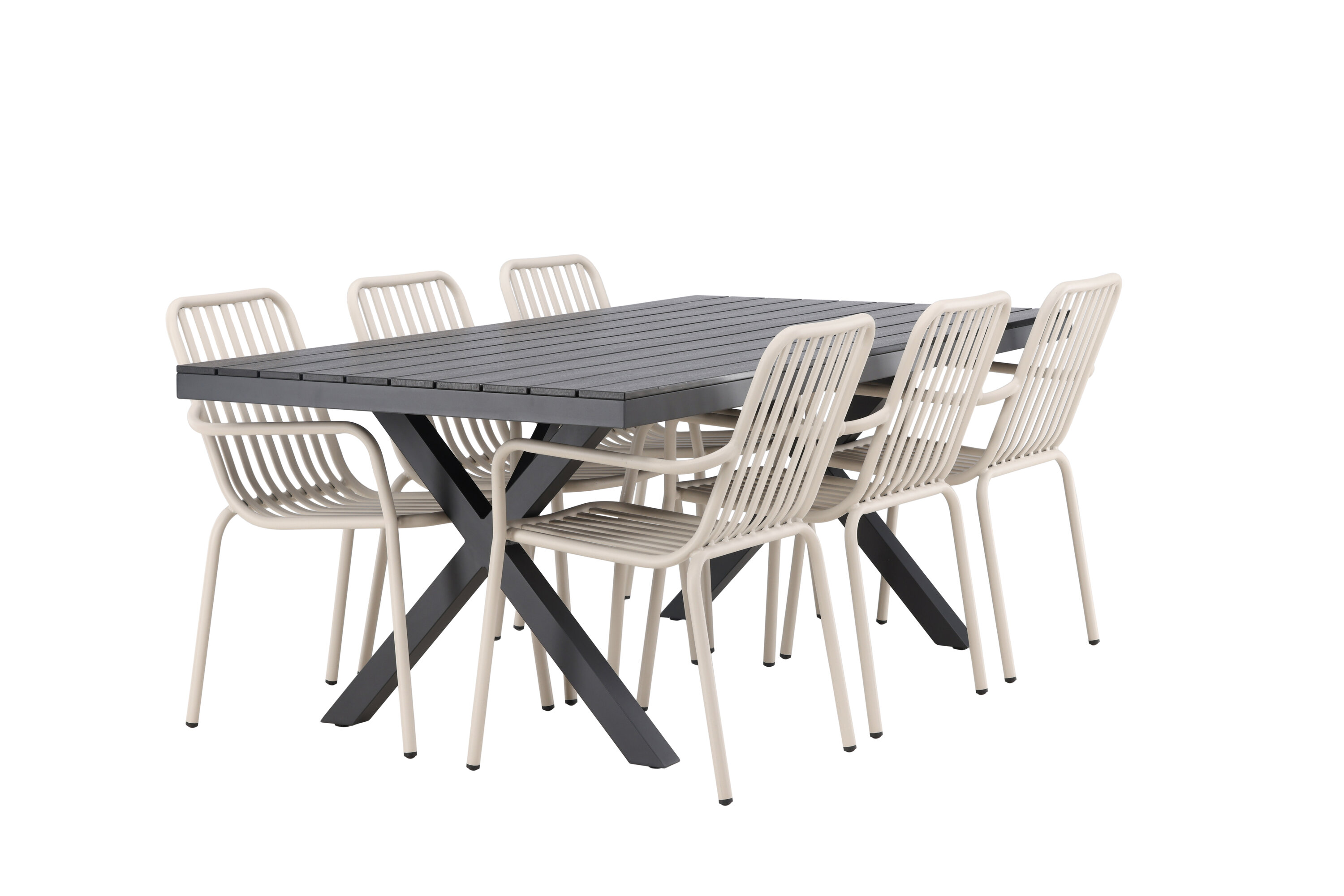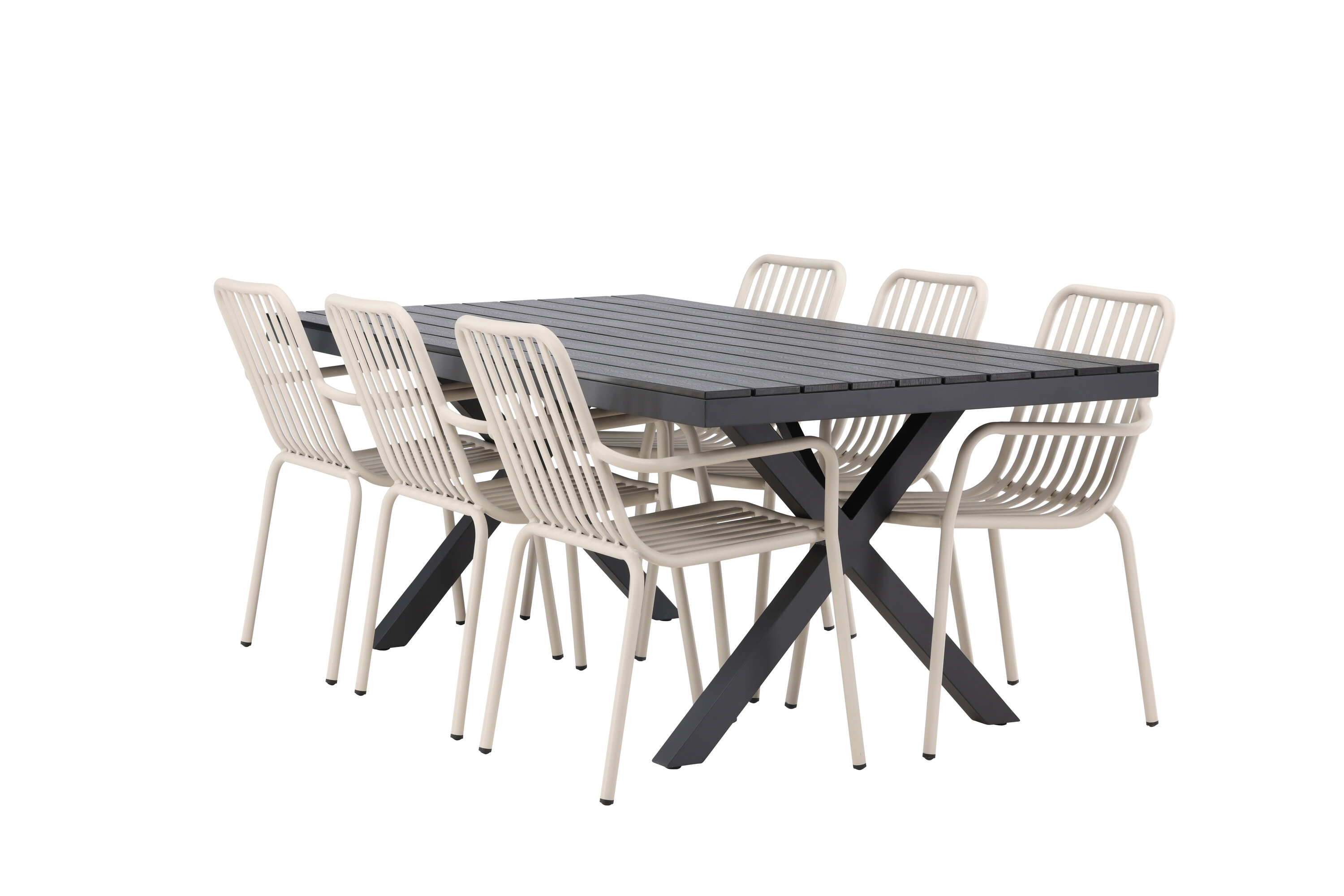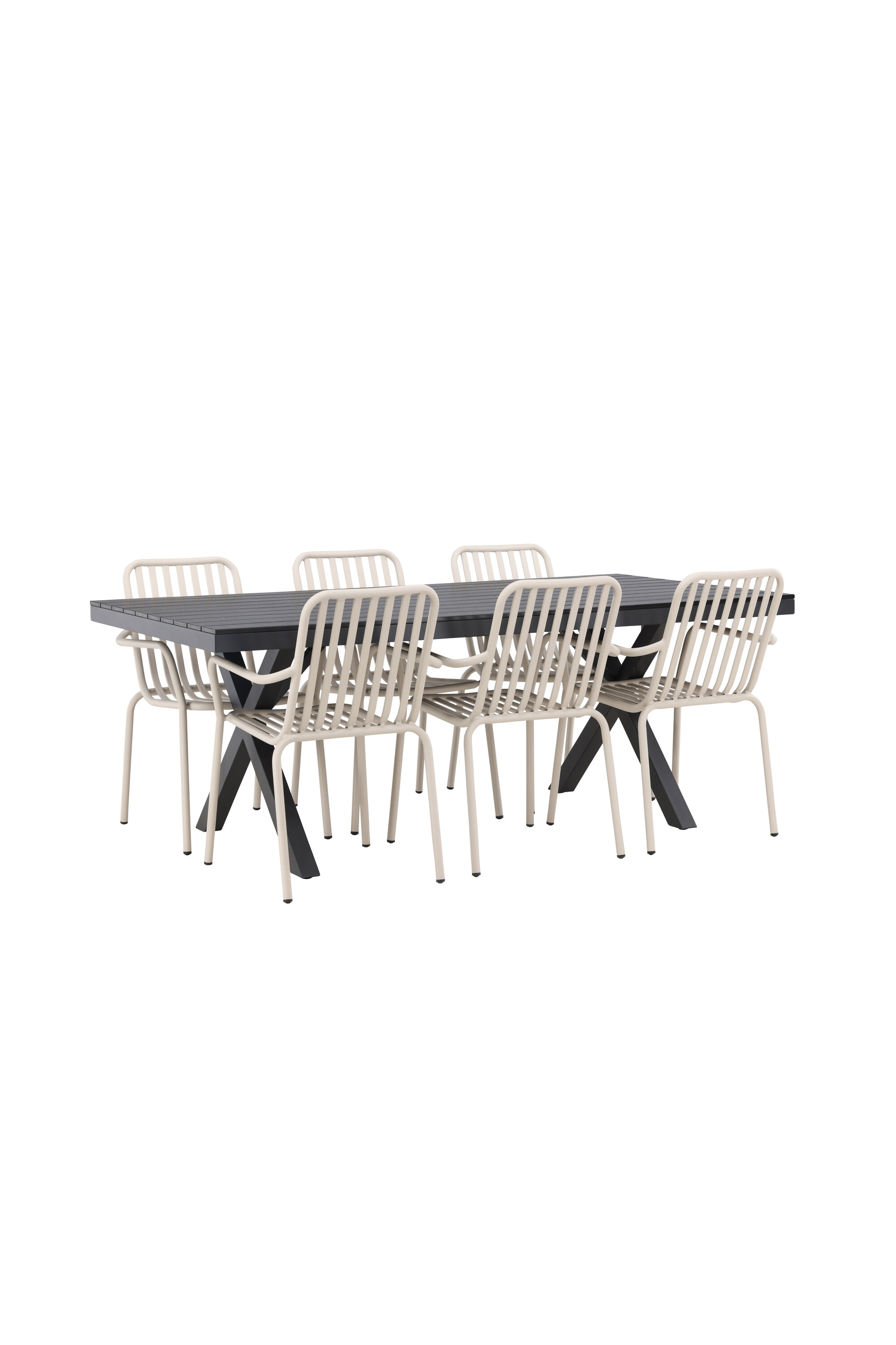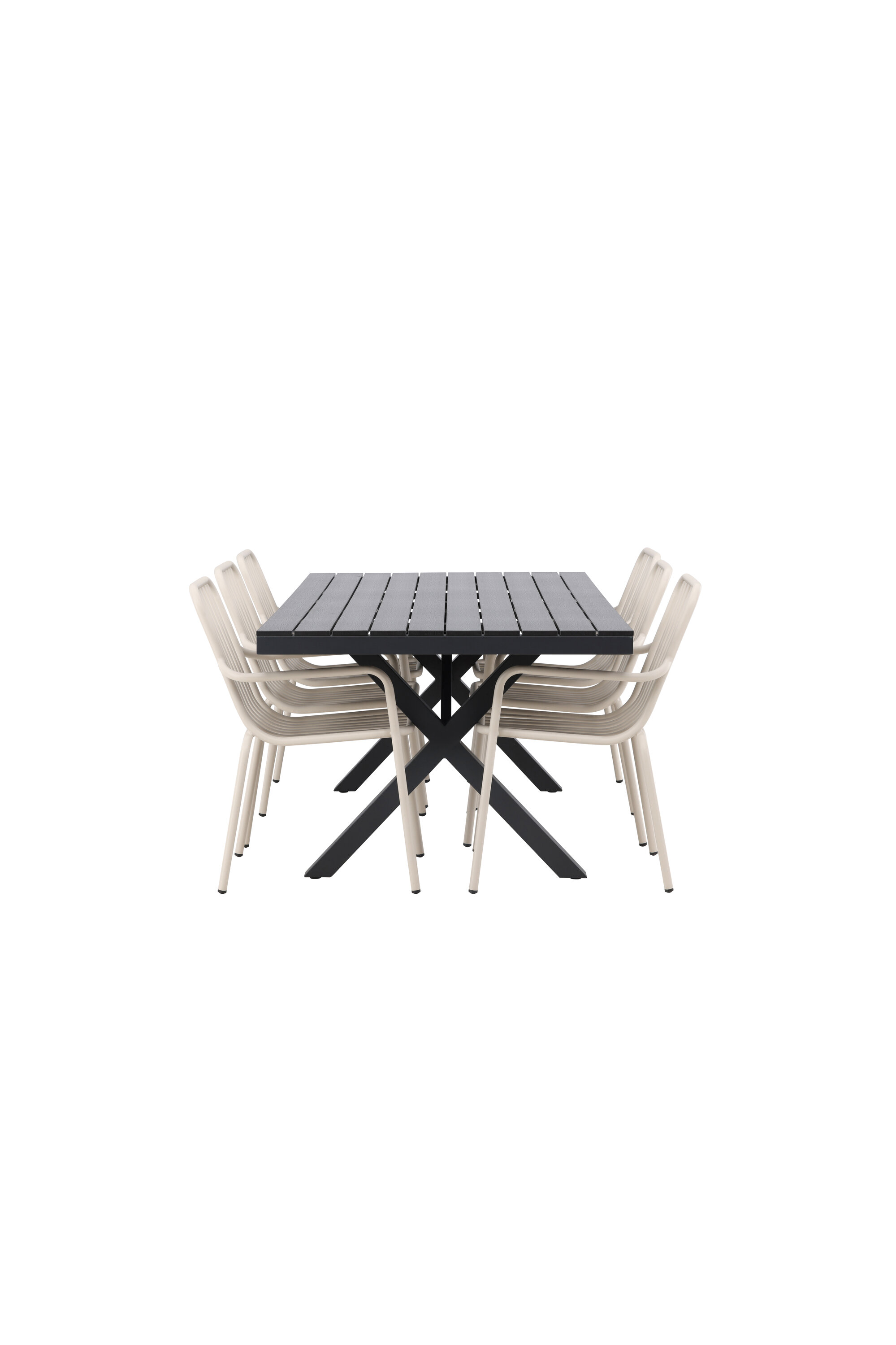 Moodne, vastupidav ja läbimõeldud – mida veel tahta? Meie ristkülikukujuline Garcia söögilaud on klassikalise disainiga, mille lauaplaat on mustast aintpuidust ja ristatud lauajalad mustast alumiiniumist. Siin stiilne kombinatsioon Pekingi sarja beežide toolidega. Tooli soonik disain ja pehme beež värv loovad teile võluva söögigrupi. Integreeritud käetoed pakuvad teile ka lisamugavust. Söögigrupp lihtsalt kõigi õigete funktsioonidega! Laua mõõdud: 200x100cm.