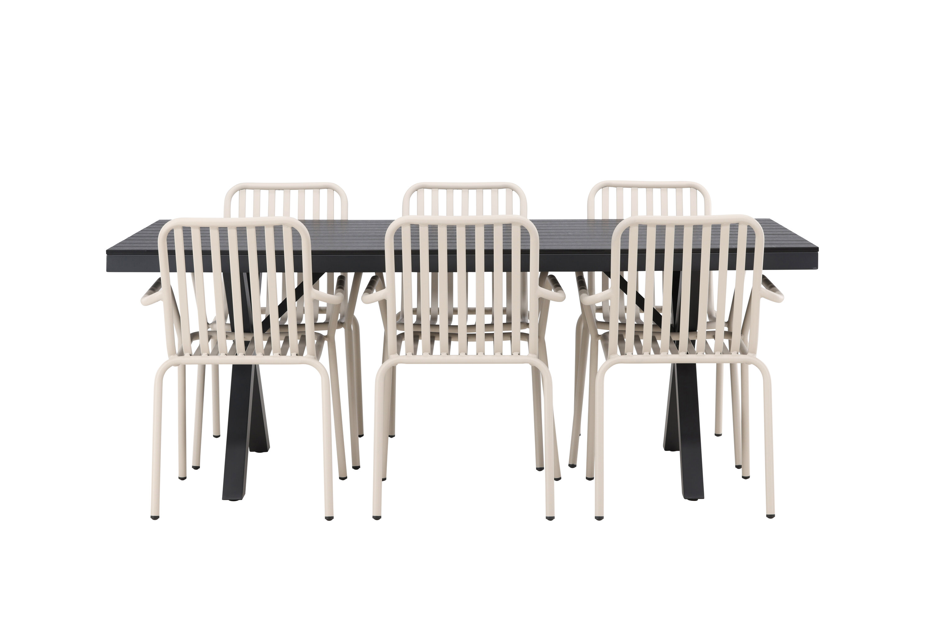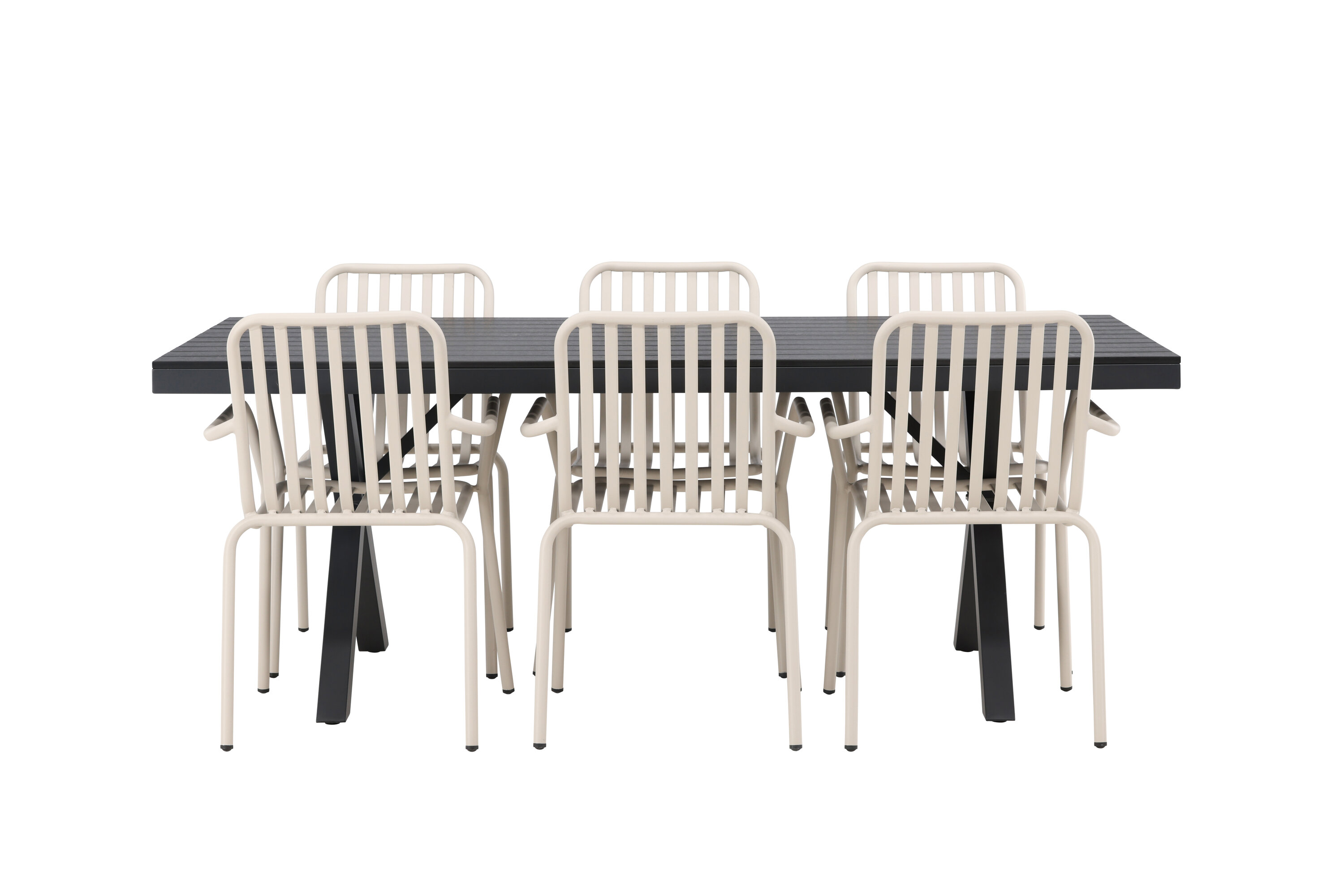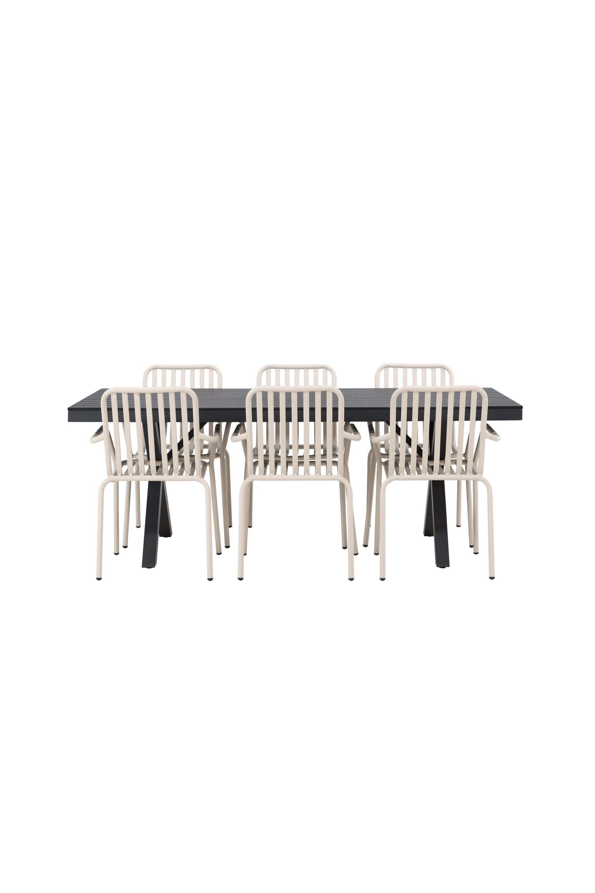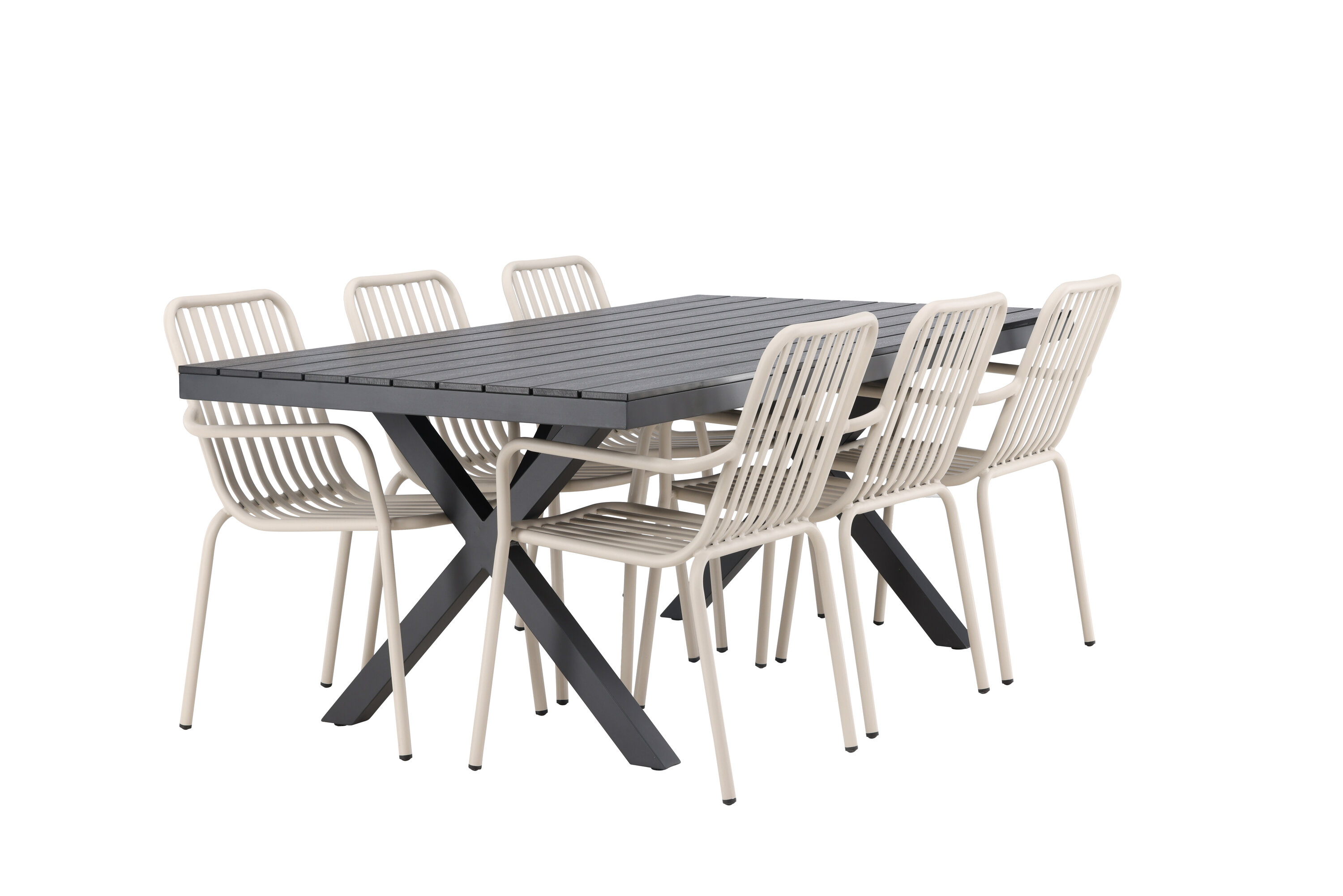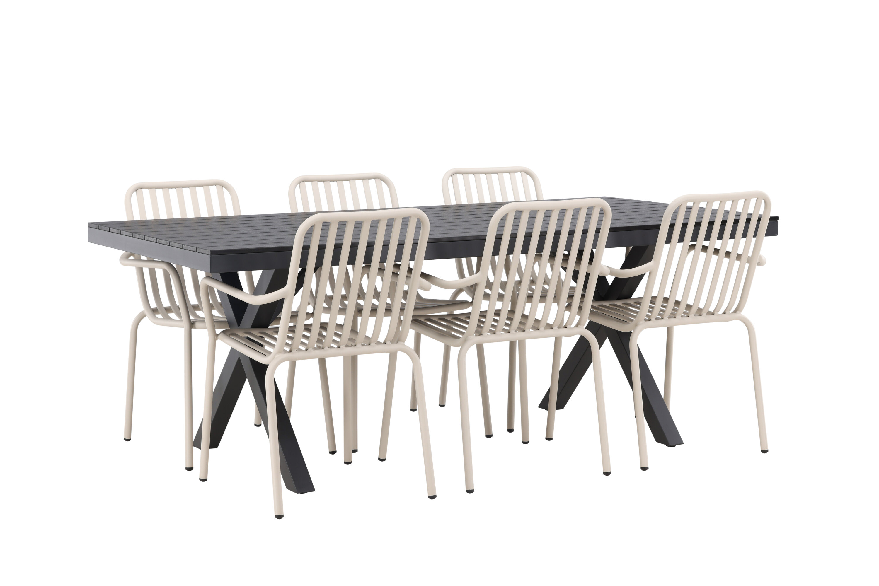 Moodne, vastupidav ja läbimõeldud – mida veel tahta? Meie ristkülikukujuline Garcia söögilaud on klassikalise disainiga, mille lauaplaat on mustast aintpuidust ja ristatud lauajalad mustast alumiiniumist. Siin stiilne kombinatsioon Pekingi sarja beežide toolidega. Tooli soonik disain ja pehme beež värv loovad teile võluva söögigrupi. Integreeritud käetoed pakuvad teile ka lisamugavust. Söögigrupp lihtsalt kõigi õigete funktsioonidega! Laua mõõdud: 200x100cm.