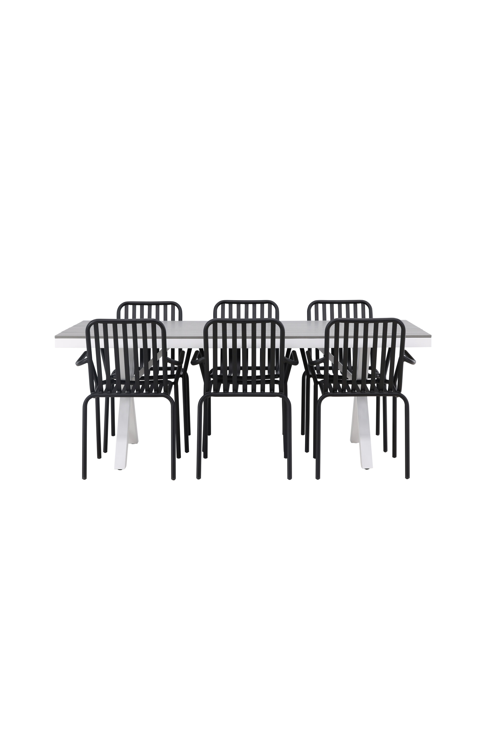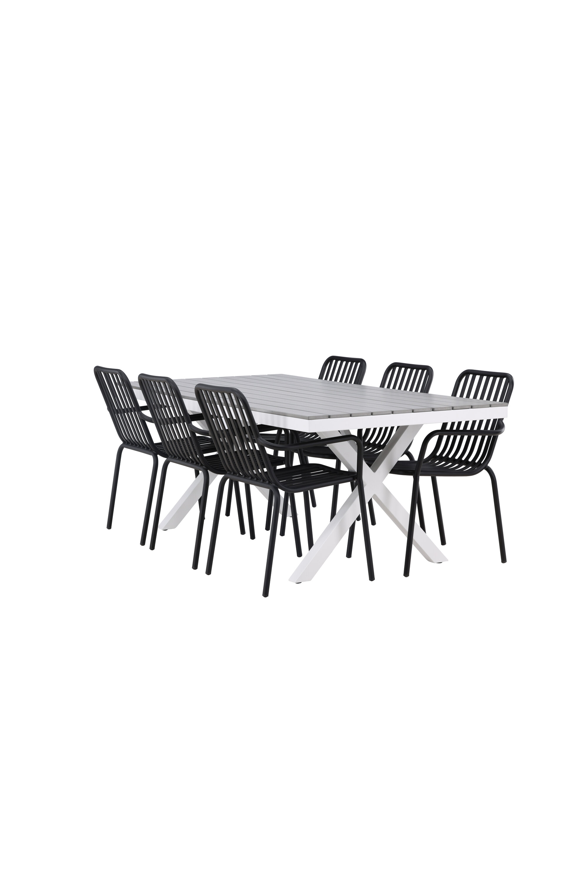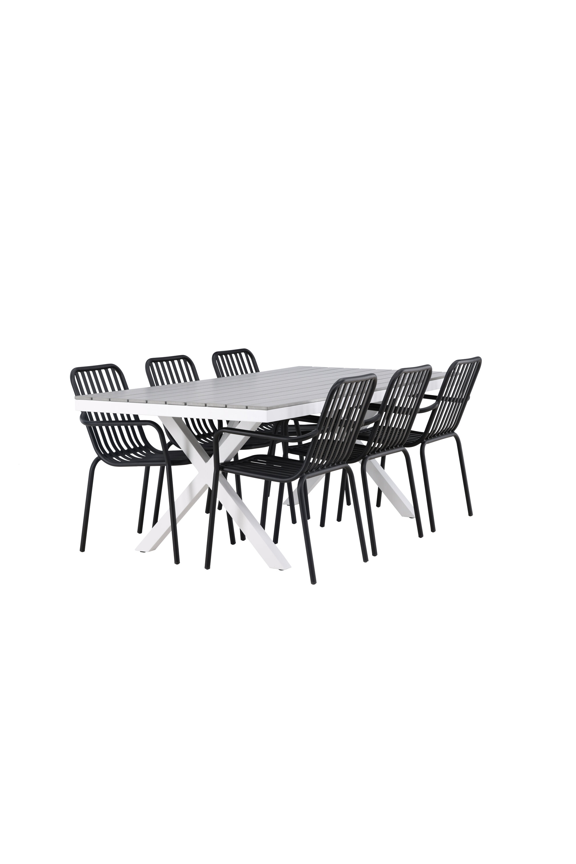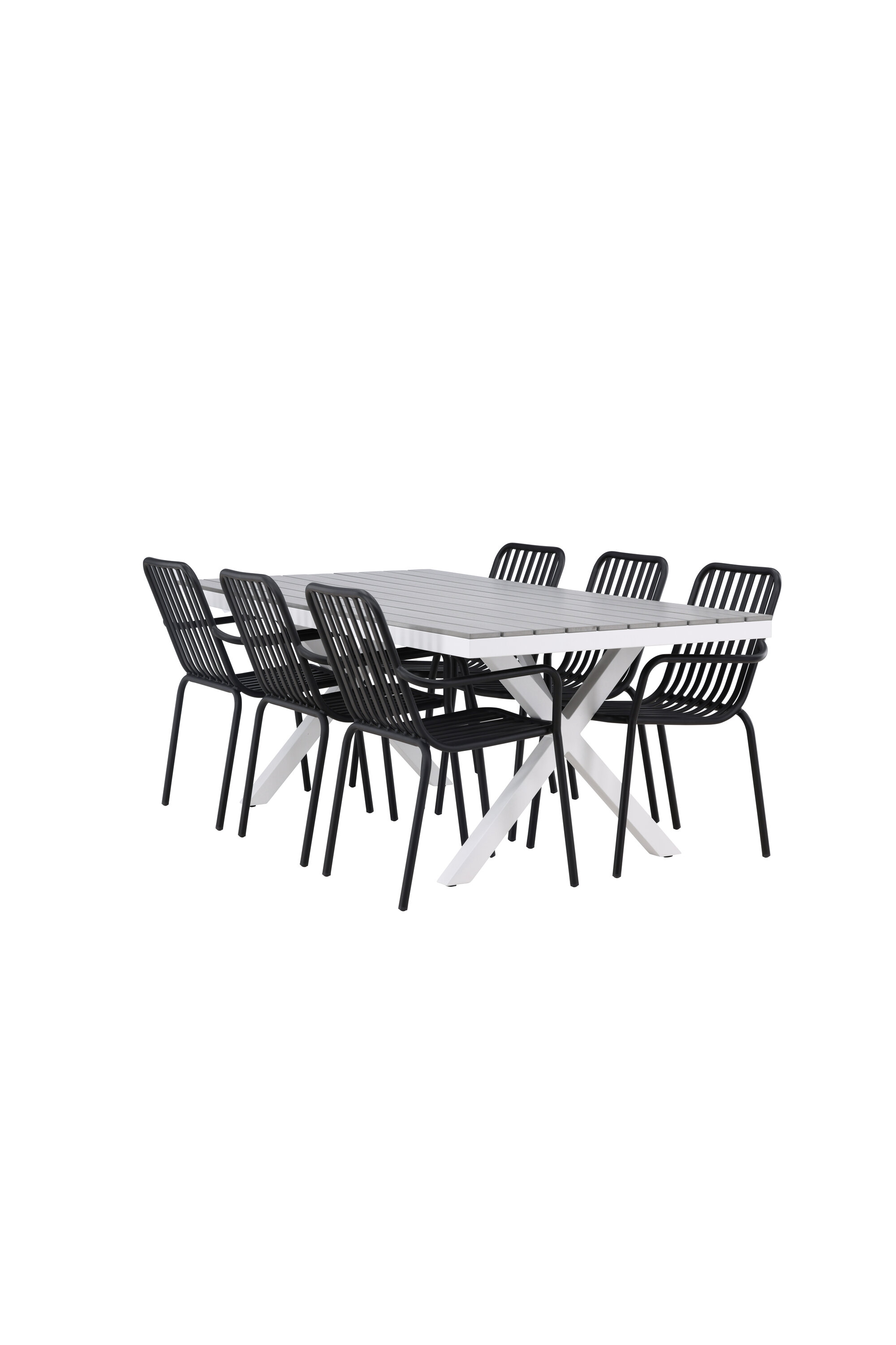 Söögigrupp, mis on tõeline pilgupööraja! Meie ristkülikukujuline söögilaud Garcia on klassikalise disainiga, mille lauaplaat on maitsekas aintpuidust ja ristatud lauajalad valgest alumiiniumist. Siin koos meie suurepäraste söögitoolidega Pekingi sarjast. Tooli soonik disain ja tahmane must värv muudavad selle nii modernseks kui ka ajatuks. Valmistatud alumiiniumist, mis muudab selle hõlpsaks liikumiseks ja integreeritud käetoed lisamugavuse tagamiseks. Siin saate istuda tunde ja nautida oma terrassi! Laua mõõdud: 200x100cm.