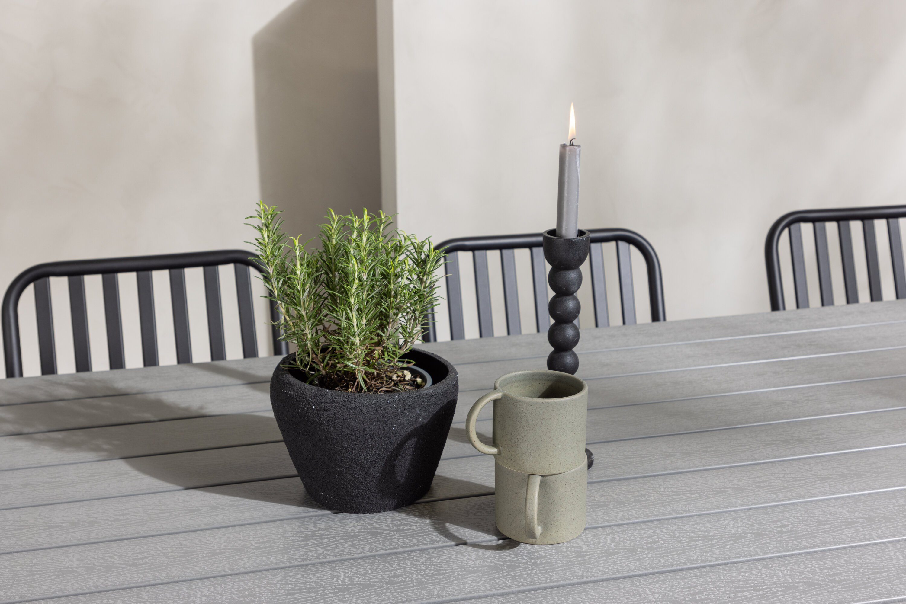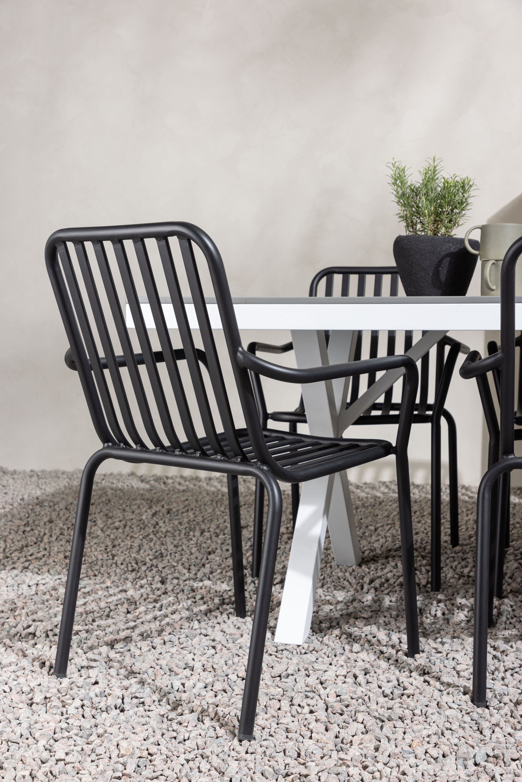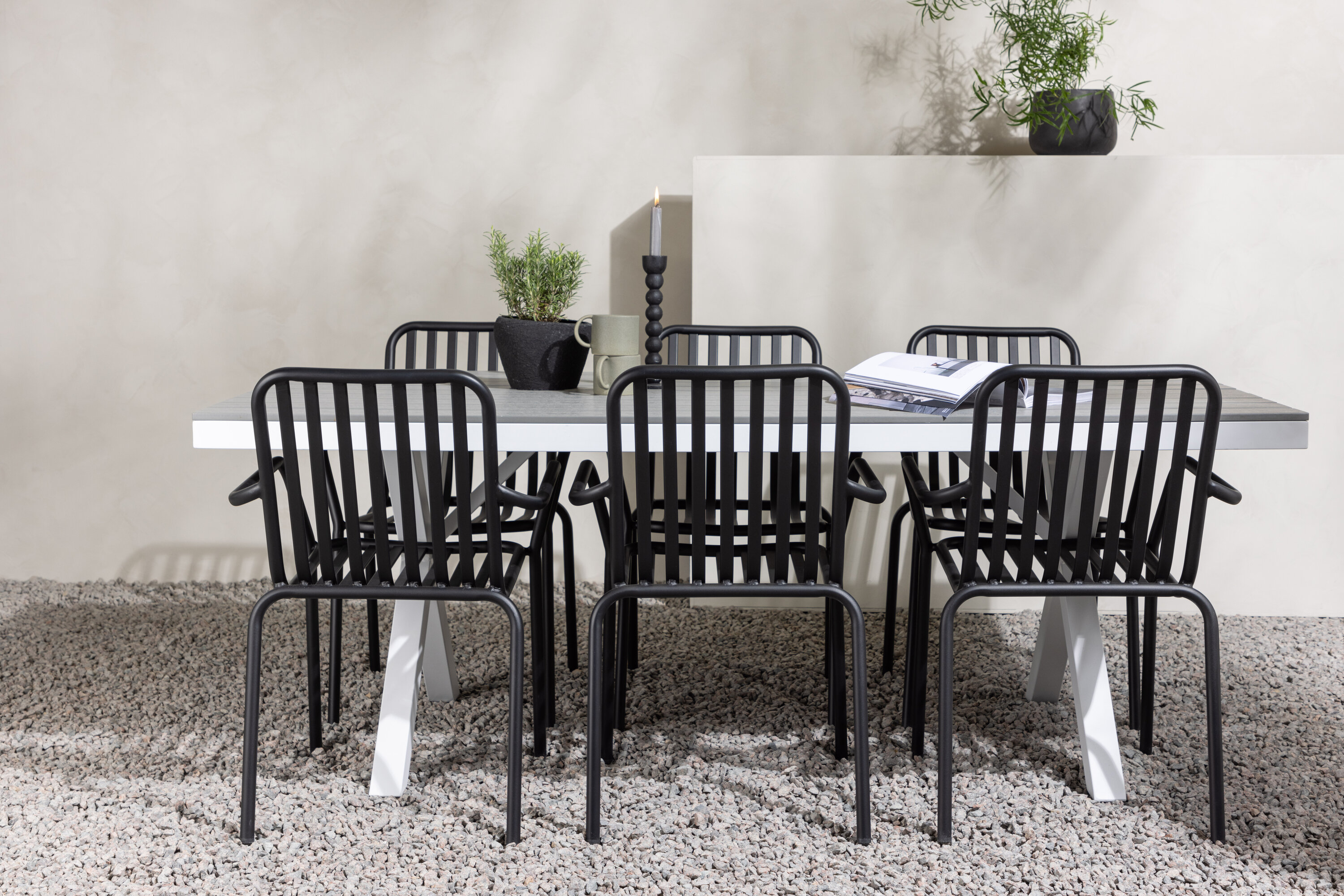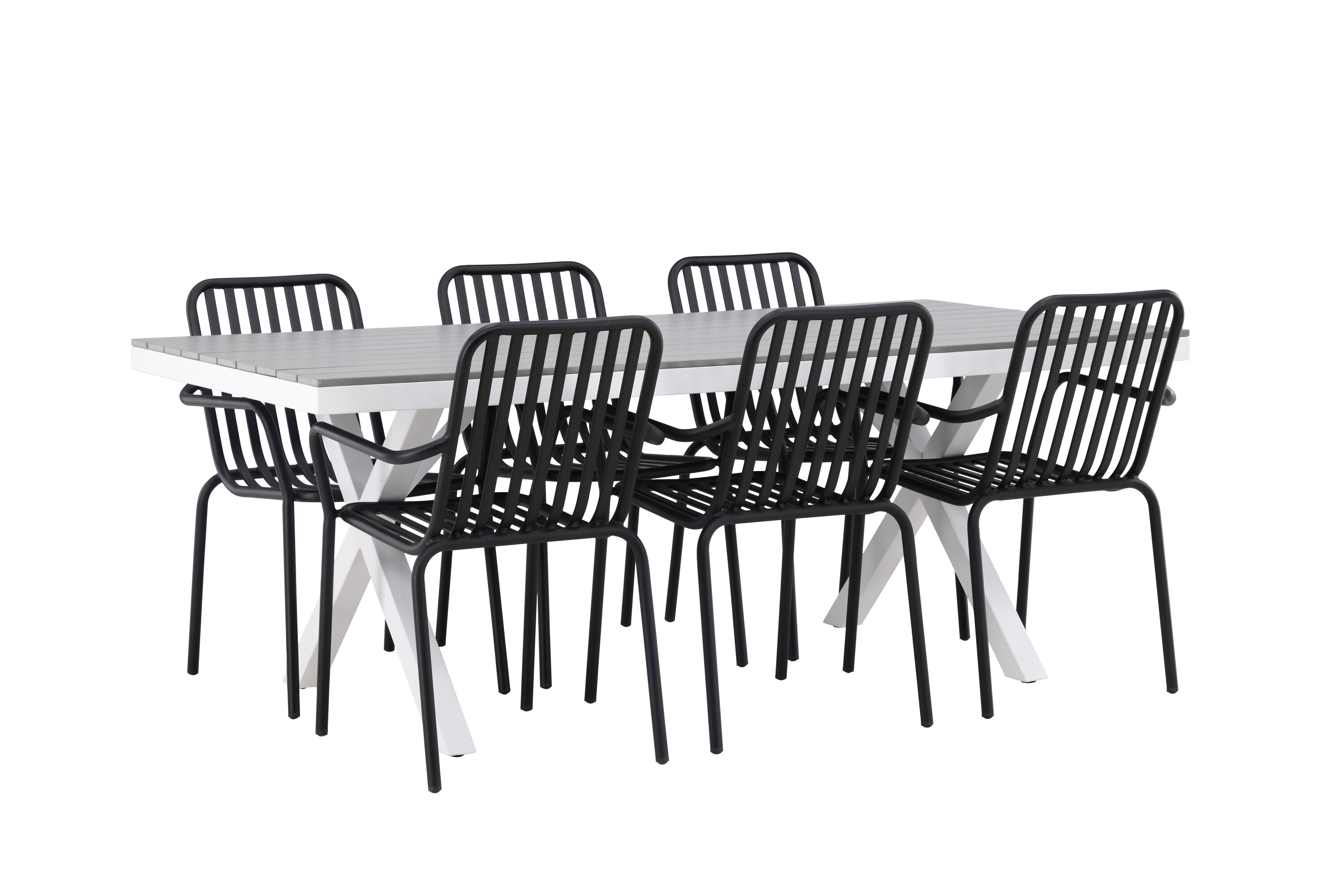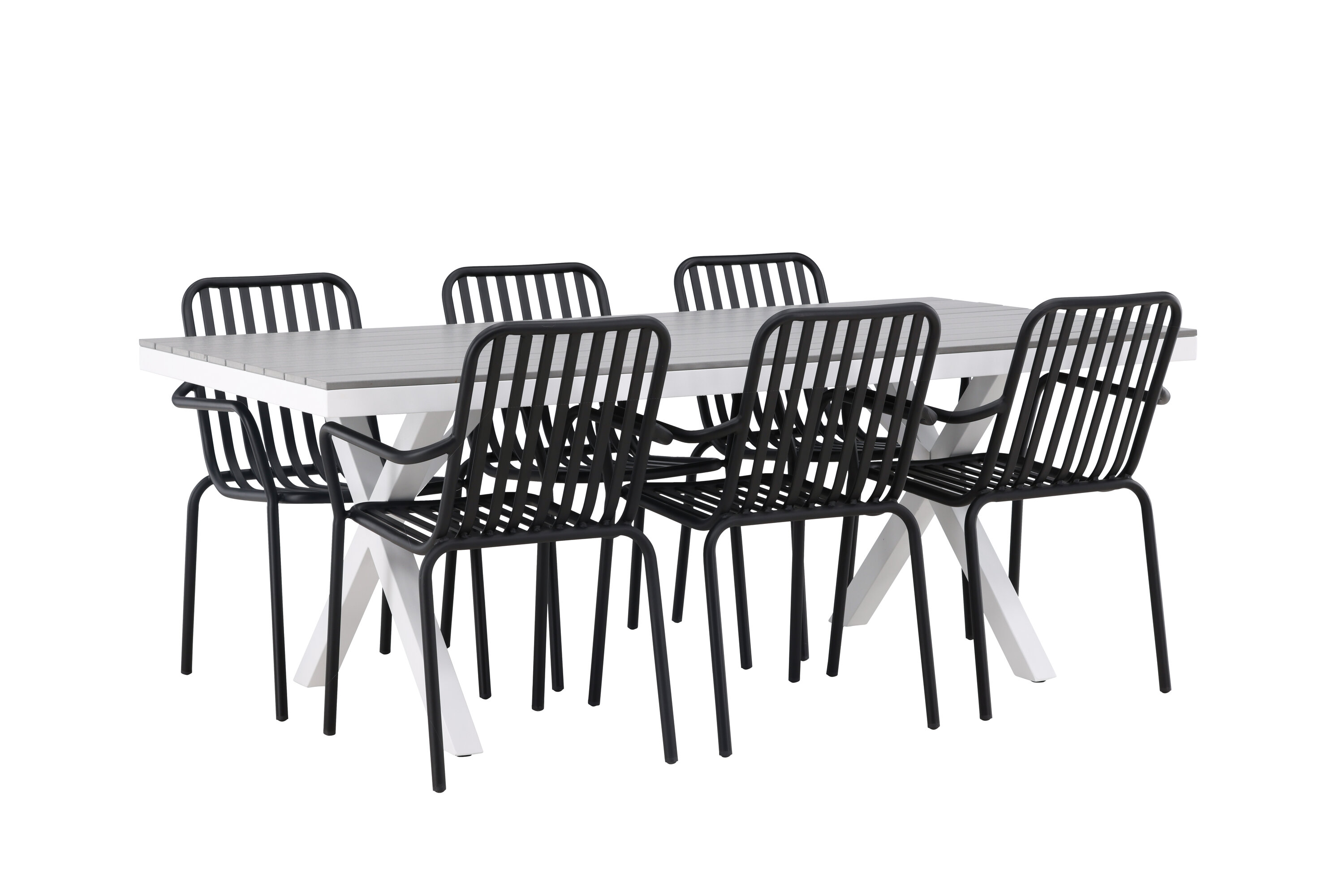 Söögigrupp, mis on tõeline pilgupööraja! Meie ristkülikukujuline söögilaud Garcia on klassikalise disainiga, mille lauaplaat on maitsekas aintpuidust ja ristatud lauajalad valgest alumiiniumist. Siin koos meie suurepäraste söögitoolidega Pekingi sarjast. Tooli soonik disain ja tahmane must värv muudavad selle nii modernseks kui ka ajatuks. Valmistatud alumiiniumist, mis muudab selle hõlpsaks liikumiseks ja integreeritud käetoed lisamugavuse tagamiseks. Siin saate istuda tunde ja nautida oma terrassi! Laua mõõdud: 200x100cm.