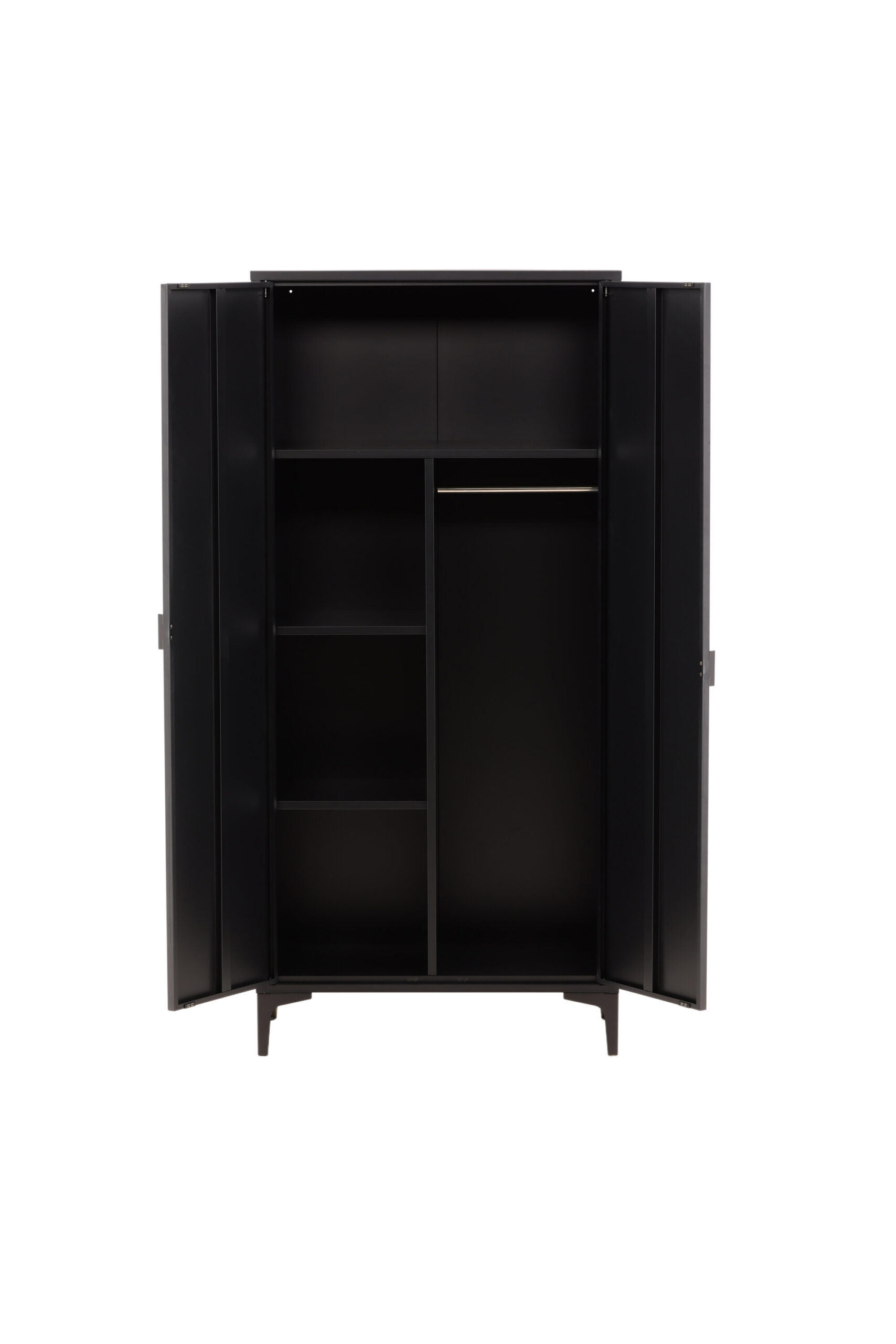 Kukne ja ajatu – garderoob sarjast Piring on ideaalne täiendus magamistuppa! Sellel mustast terasest kõrgel garderoobikapil on kaks ust, mis avanevad kuni nelja riiulini ning mahutavad ka riidepuud, et äsja silitatud riided ei peaks kortsu minema. Piringut tõstavad neli korralikku jalga, mis loovad õhulise mulje ja hõlbustavad ka tolmuimejat. Investeerige enda jaoks rohkem hoiuruumi ja hankige ostuga oma koju kena mööbliese!