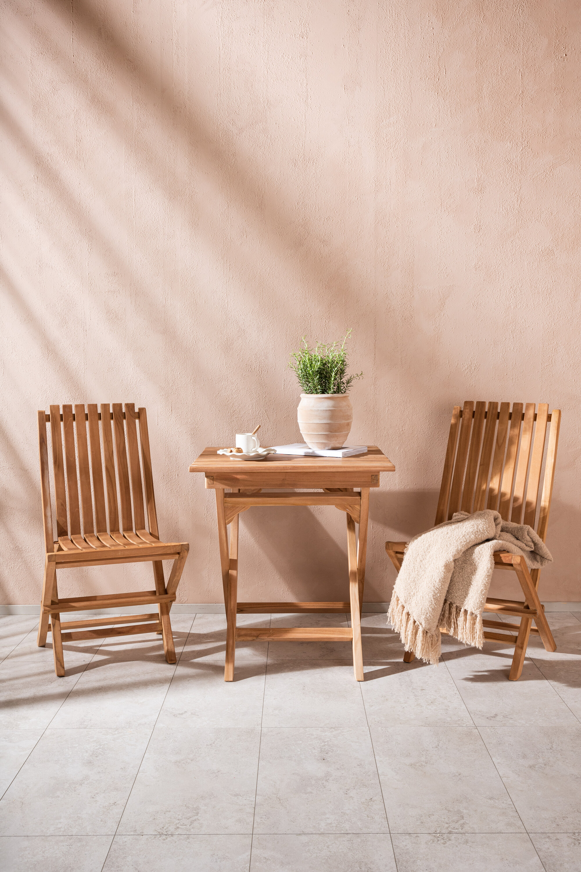 Ghana – ideaalne kohvikuselts selle suve päikesepaistelise kohviaega! Laud on minimalistliku disainiga maitsekas tiikpuust ning praktiliseks liigutamiseks ja hoiustamiseks kokkupandav. Toolid on kokkuklapitavad optimaalseks lõõgastumiseks ja kutsuvad teid nautima palju mõnusaid hommikusööke ja pärastlõunakohvi väljas rõdul!