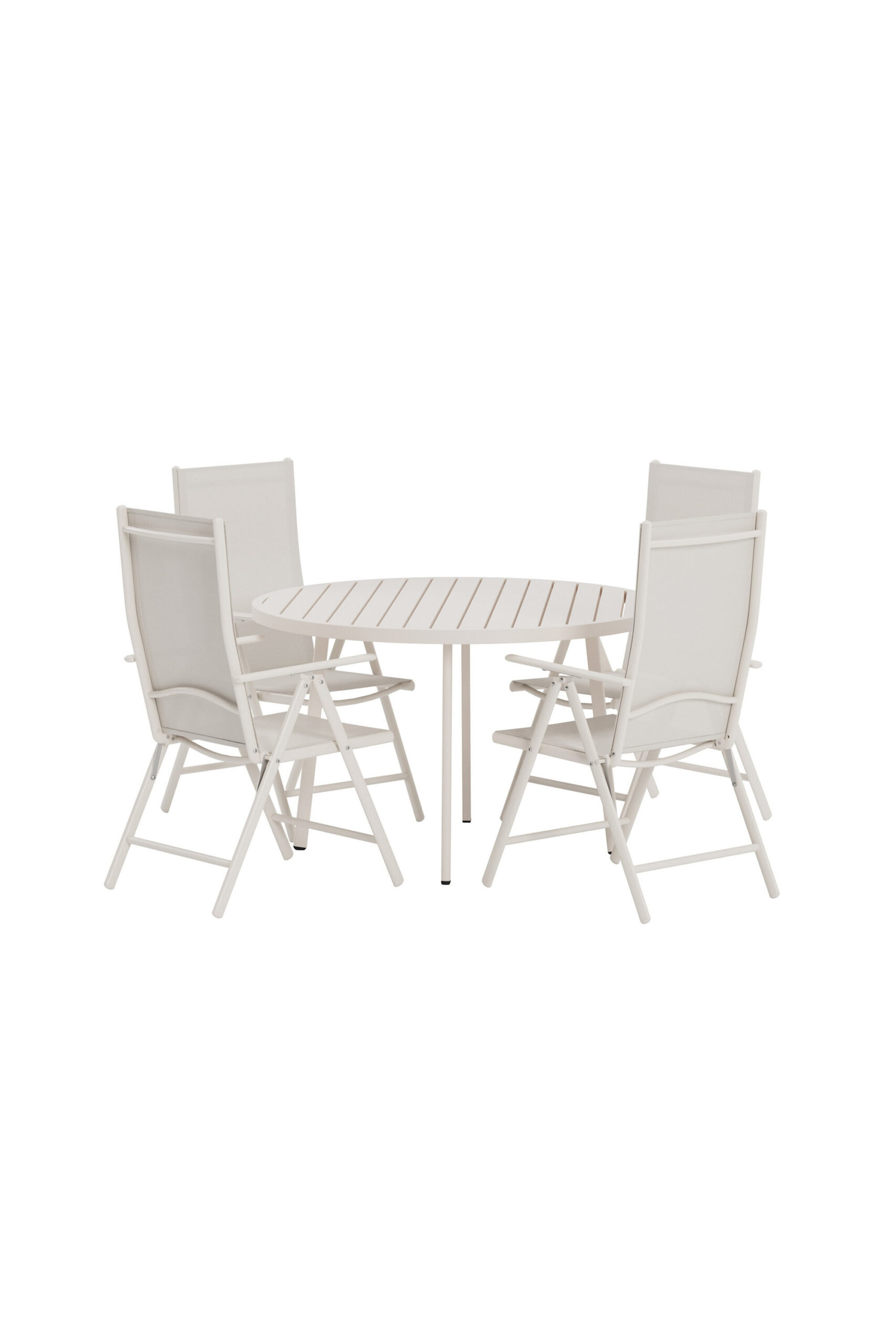 Selle Break lamamistoolide ja ümmarguse Giardini söögilaua elegantse kombinatsiooniga looge stiilne ja kutsuv õuesöömisala. Lamamistool Break ühendab kaasaegse disaini kõrge funktsionaalsusega. Elegantne beež värv ja vastupidav alumiiniumraam annavad harmoonilise välimuse, samas kui tugevast tekstiilist iste pakub suurt mugavust. Tool on nii kokkupandav kui ka reguleeritava seljatoega – ideaalne nii einetamiseks kui ka lõõgastumiseks. Giardini söögilaud on ilus 120 cm läbimõõduga elegantne beež ümmargune laud. Liistudega lauaplaat lisab omapära ja ümar kuju loob loomuliku kogunemiskoha terrassil või aias. Laud, mis sobib sama hästi nii modernsesse kui klassikalistesse välikeskkondadesse. Break ja Giardini moodustavad koos harmoonilise, praktilise ja atraktiivse söögikomplekti – ideaalne imeliste hetkede nautimiseks väljas sellel suvel.