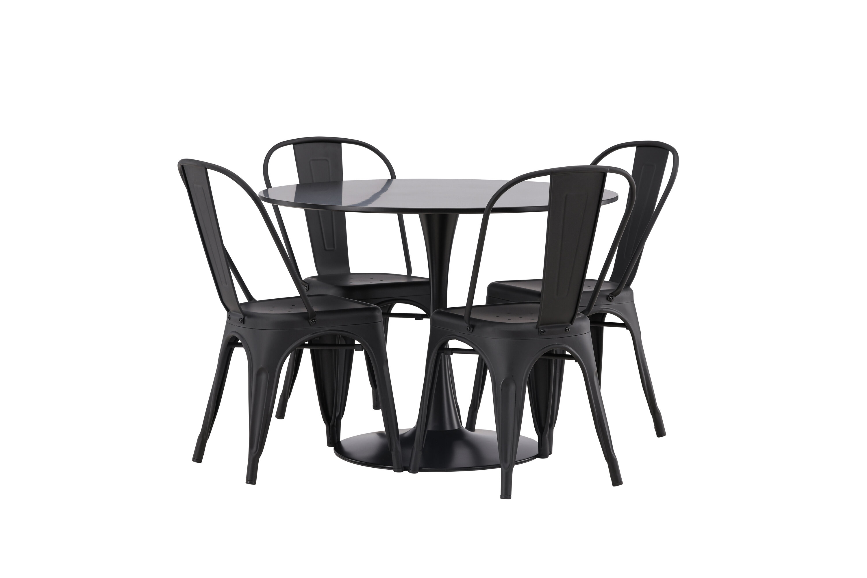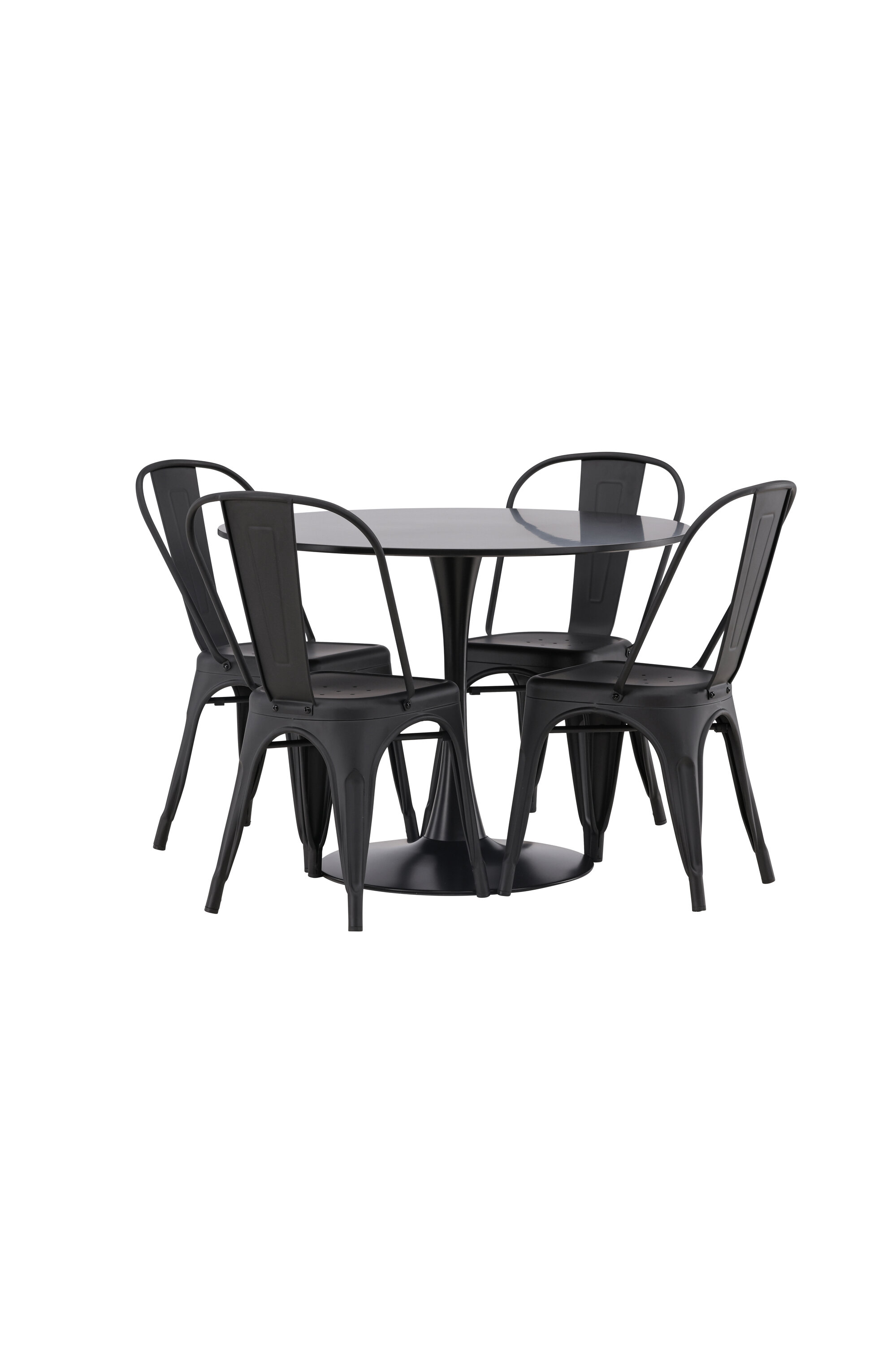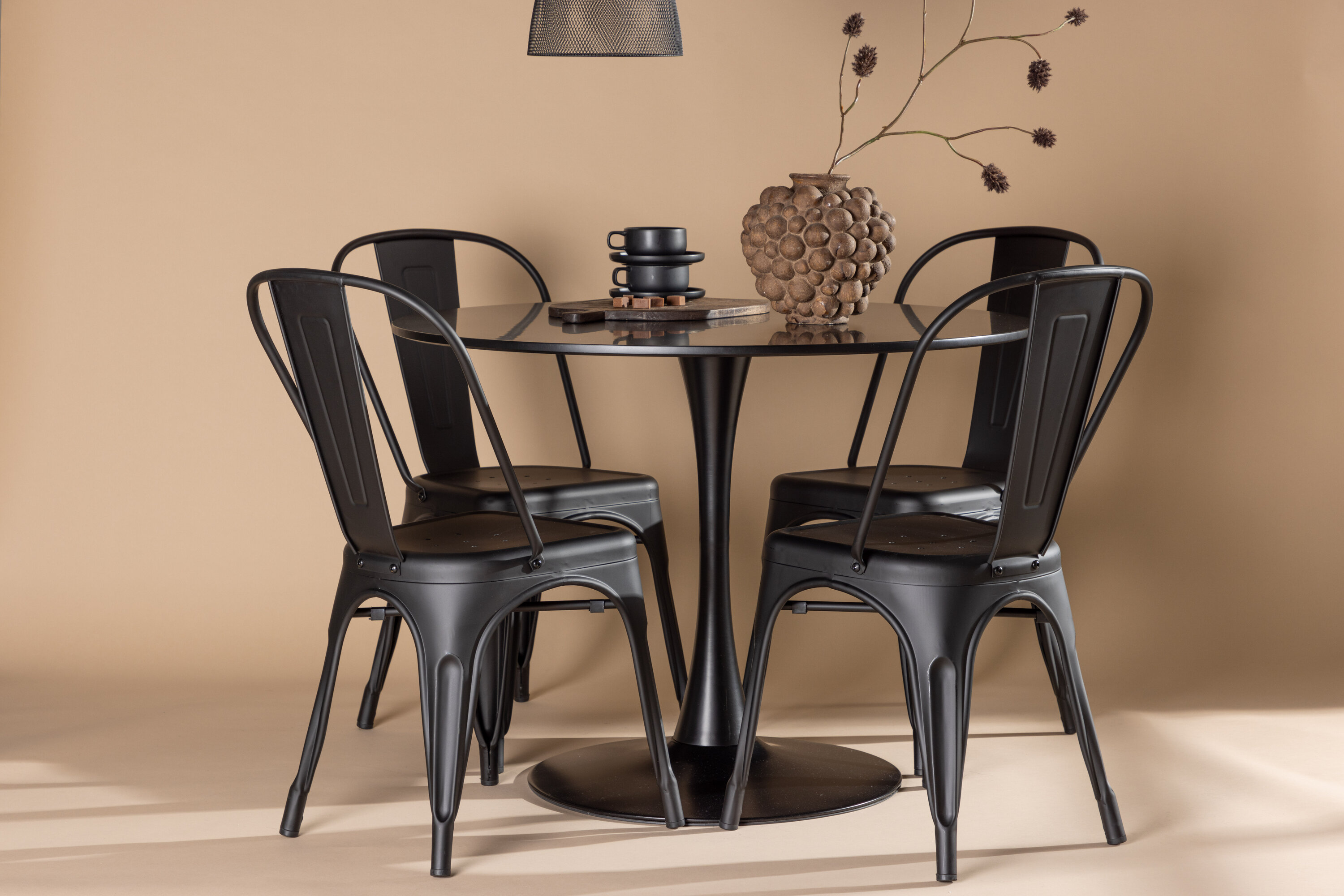 Glade söögilaud on stiilse skandinaavialiku disainiga, mille õhuke mustast terasest trompetijalg ja must MDF-ist lauaplaat. Siin stiilses matšis mustade toolidega sarjast Tempe. Tooli kergelt laienevad jalad, mis sujuvalt istme ja seljatoega kokku puutuvad stiilse disainiga, ühtlaselt mustast metallist. Siit saate kokku kogutud musta söögirühma, mis peab ajaproovile vastu. Laua mõõdud: 100 cm.