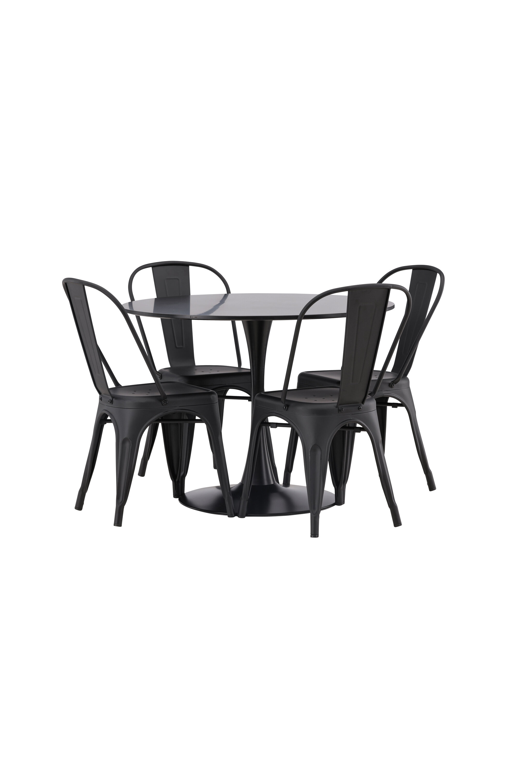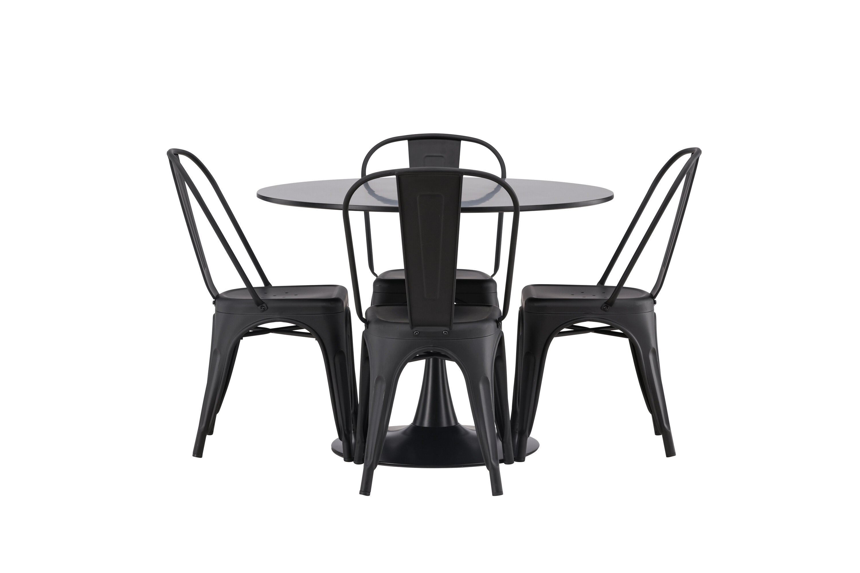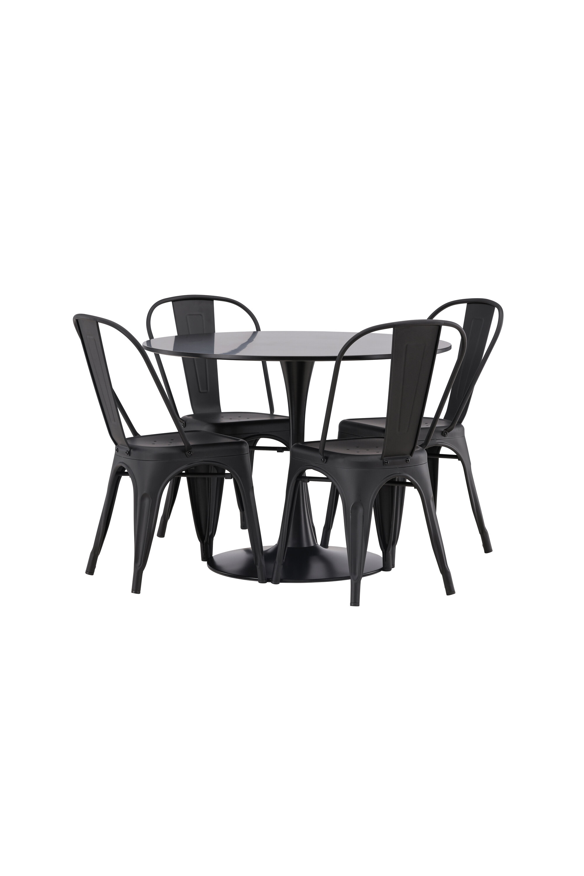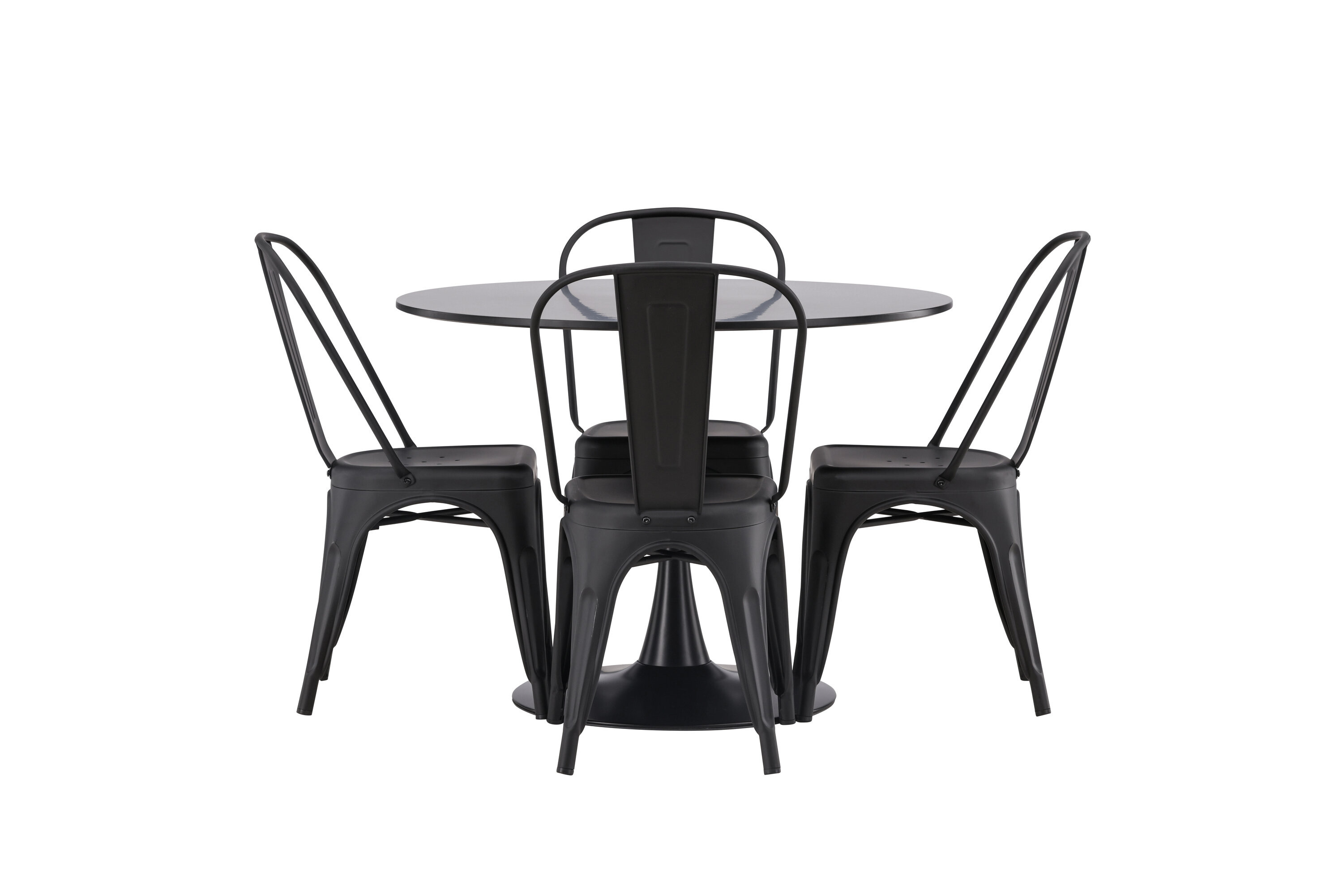 Glade söögilaud on stiilse skandinaavialiku disainiga, mille õhuke mustast terasest trompetijalg ja must MDF-ist lauaplaat. Siin stiilses matšis mustade toolidega sarjast Tempe. Tooli kergelt laienevad jalad, mis sujuvalt istme ja seljatoega kokku puutuvad stiilse disainiga, ühtlaselt mustast metallist. Siit saate kokku kogutud musta söögirühma, mis peab ajaproovile vastu. Laua mõõdud: 100 cm.