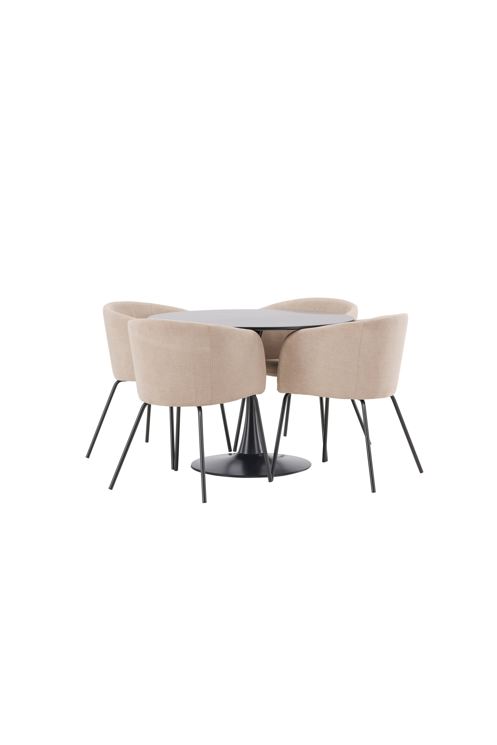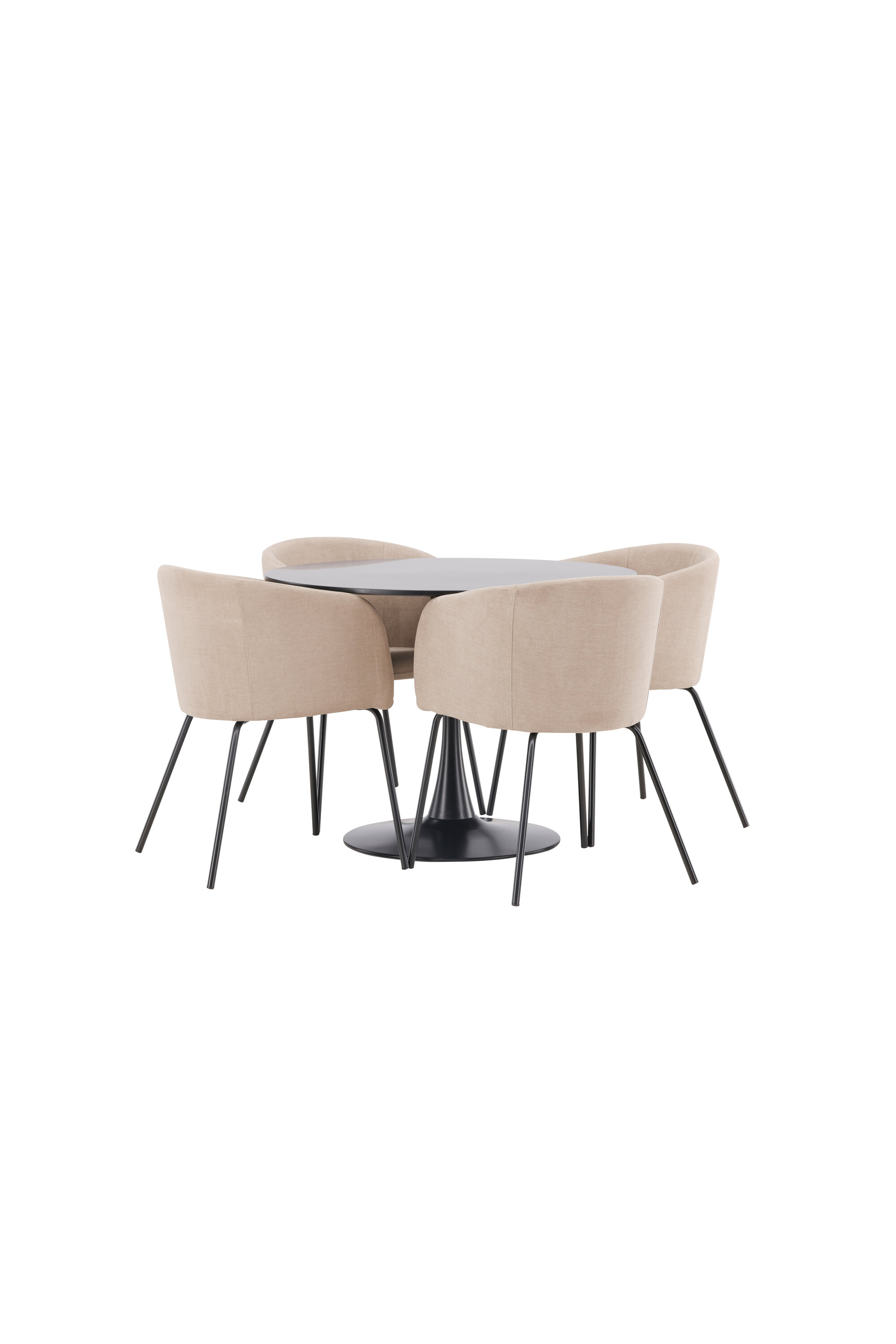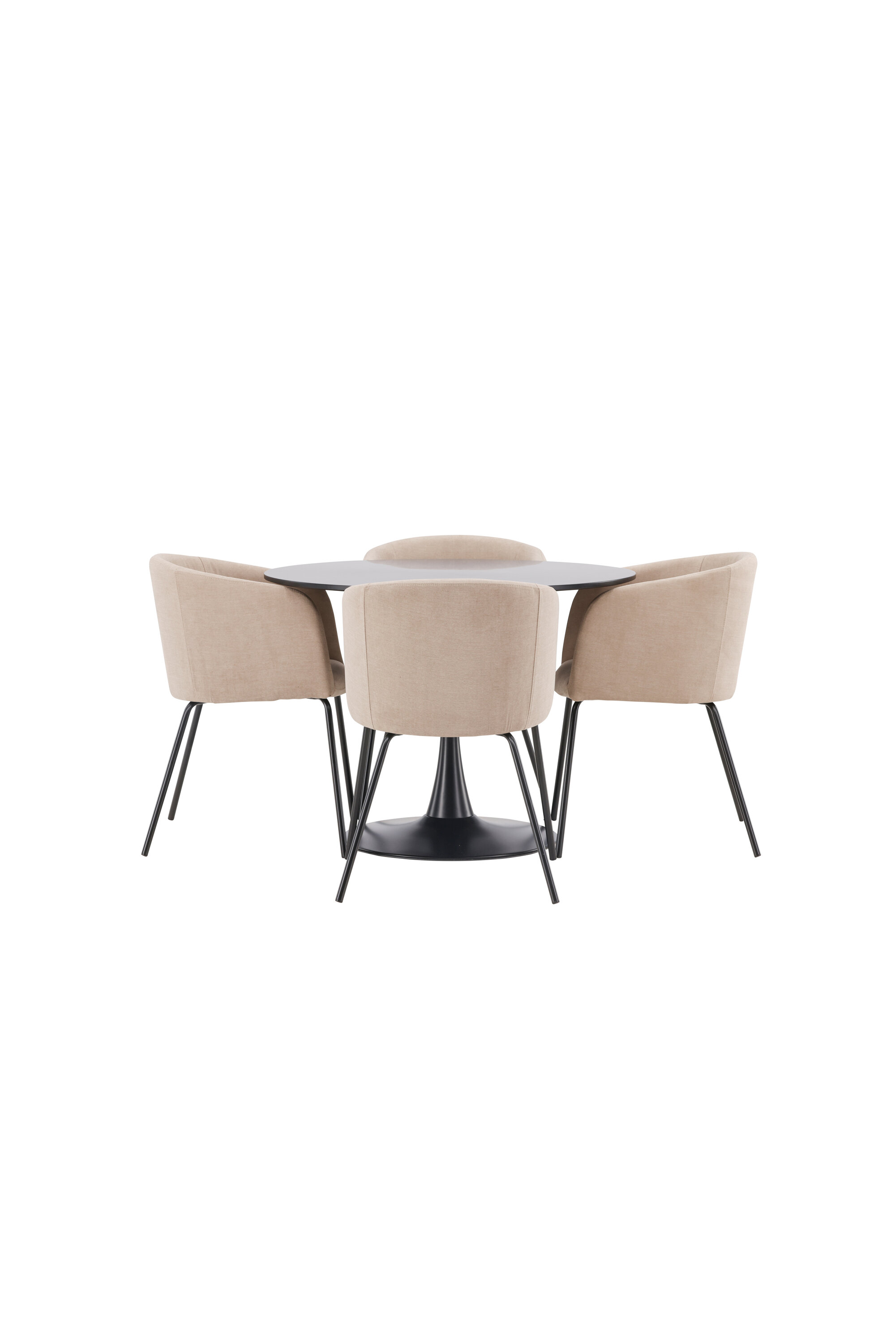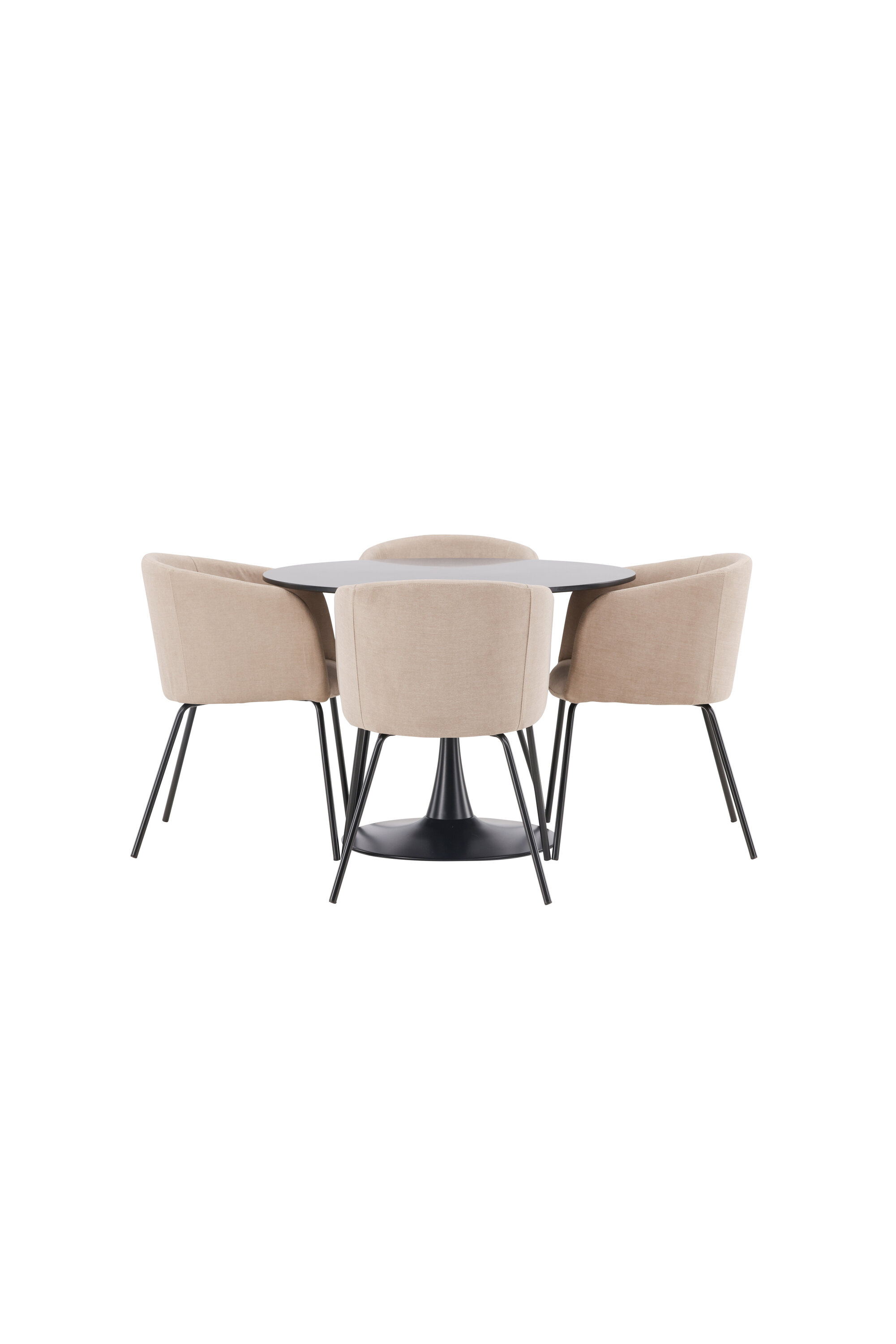 Söögigrupp, millest õhkub luksust! Glade söögilaud on stiilse skandinaavialiku disainiga, mille õhuke mustast terasest trompetijalg ja must MDF-ist lauaplaat. Siin koos meie mugavate söögitoolidega Berit. Toolil on täielikult polsterdatud disain, millel on sametkangast ja polüesterlinast kergelt ümardatud seljatugi ja iste ning kitsad mustast rauast toolijalad. Siit saate suurepärase söögigrupi oma kodu südamesse! Laua mõõdud: 100 cm.