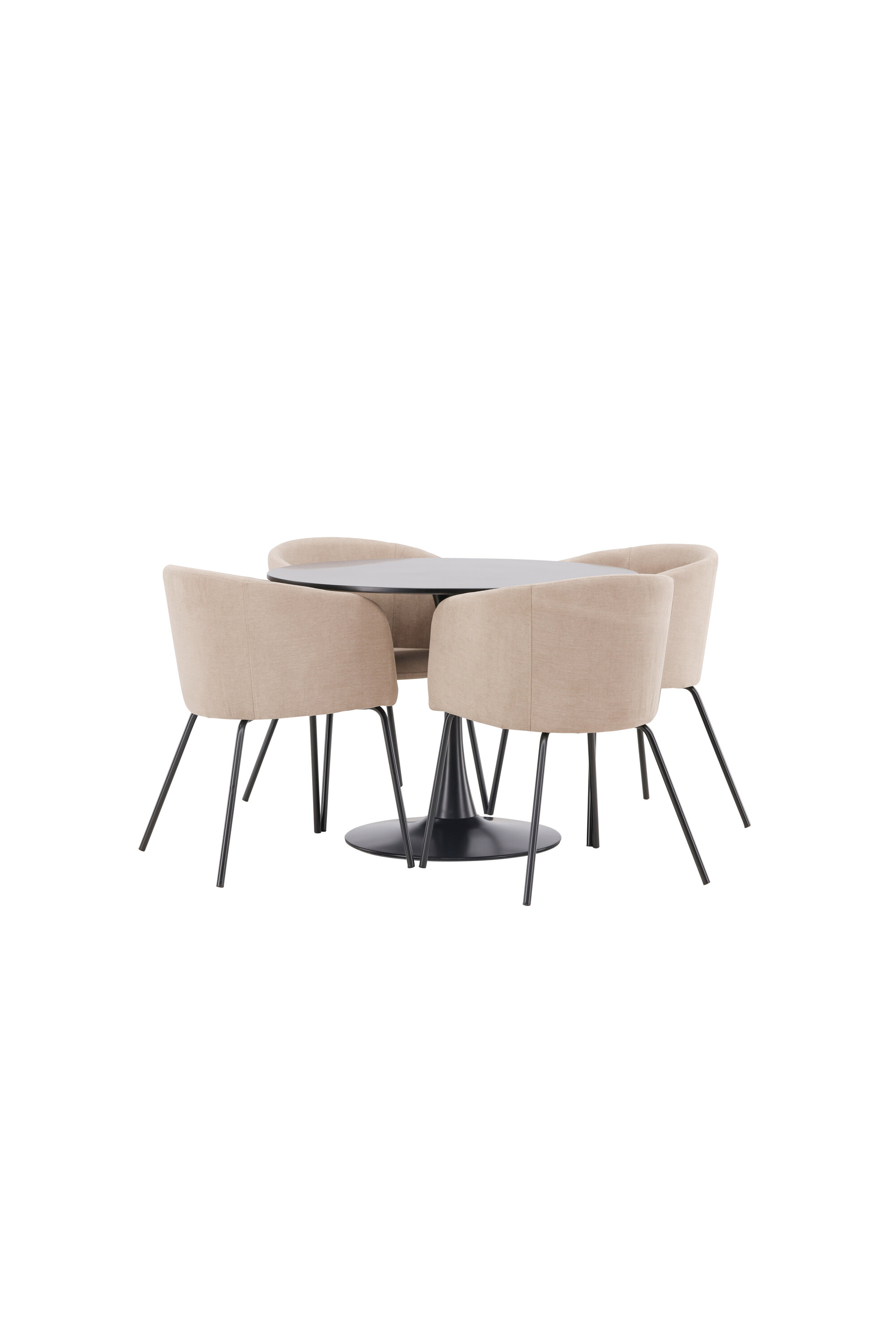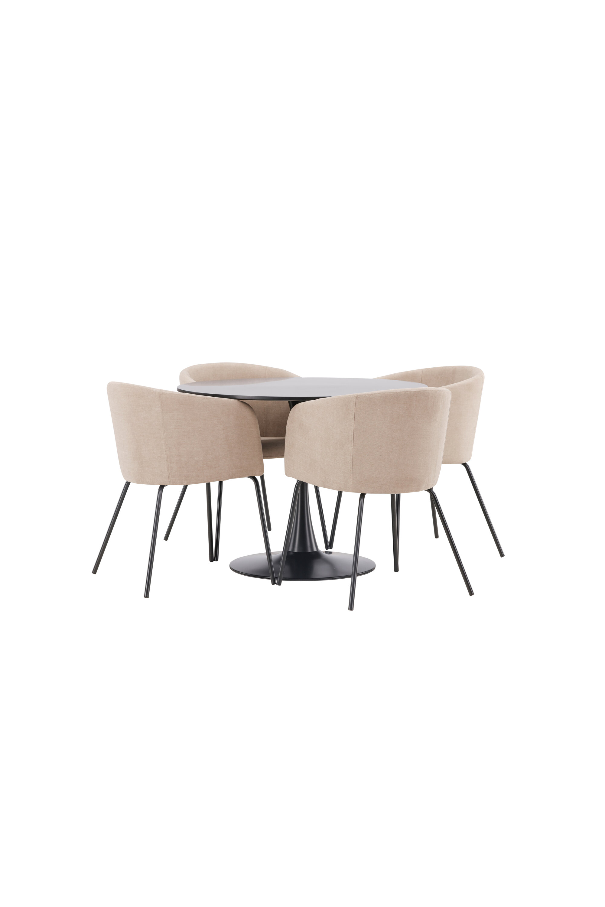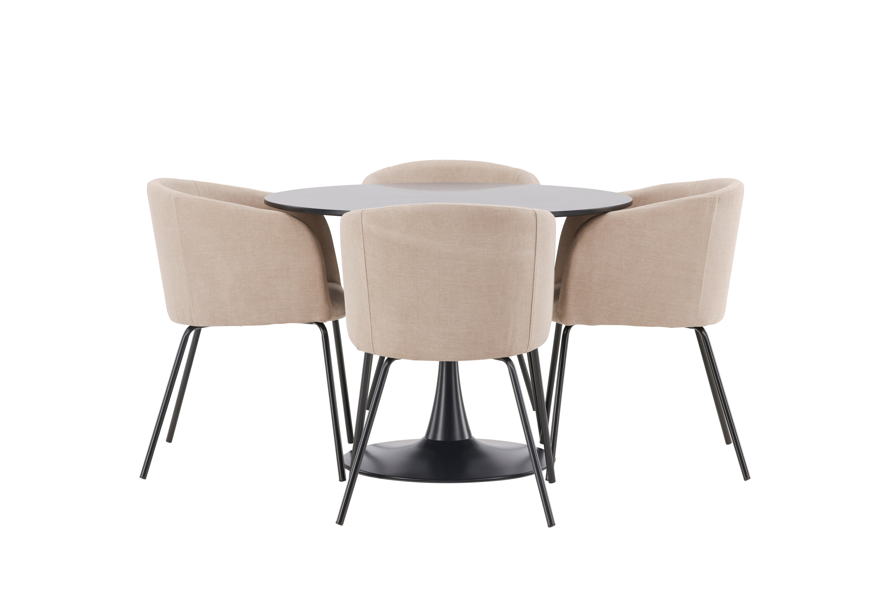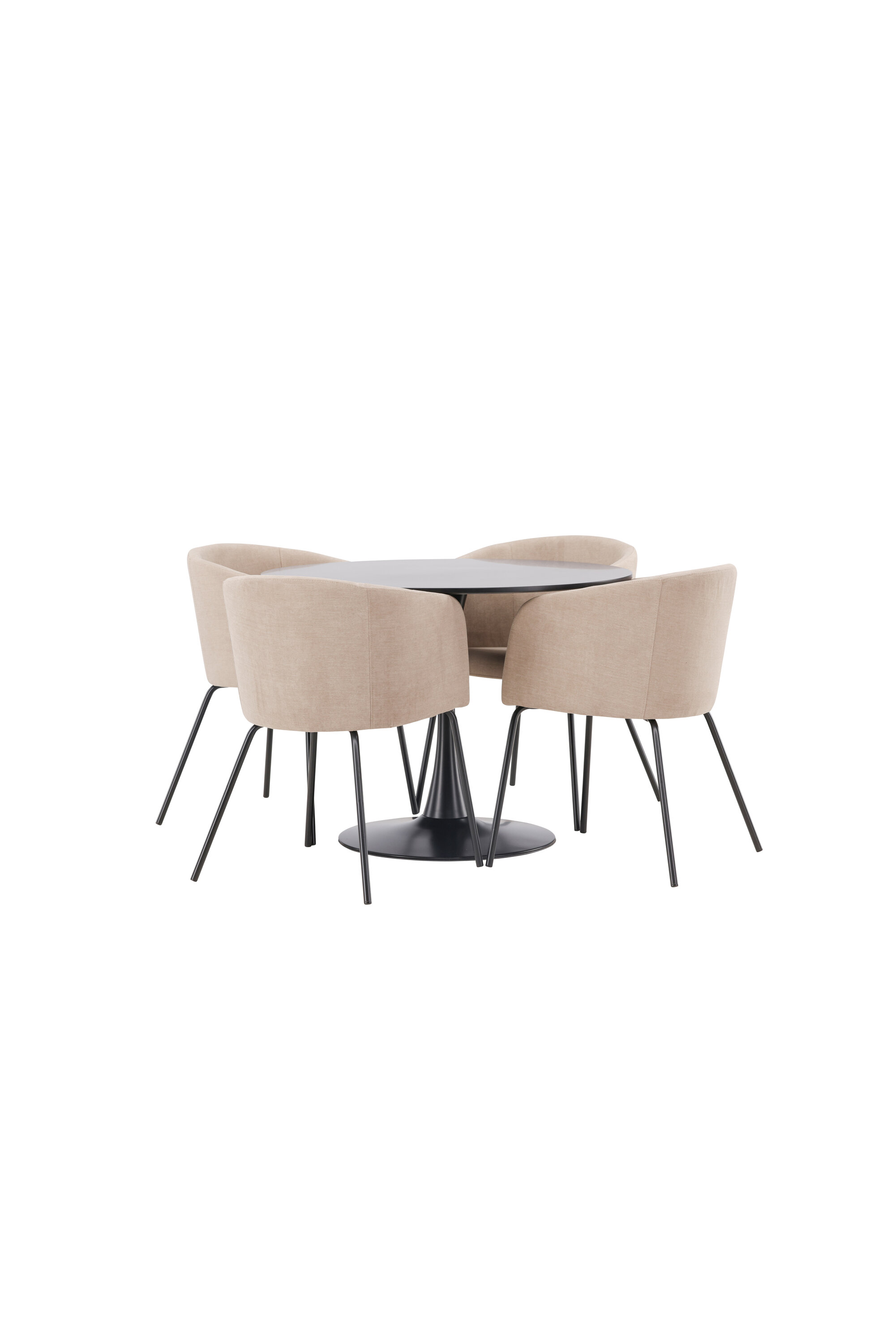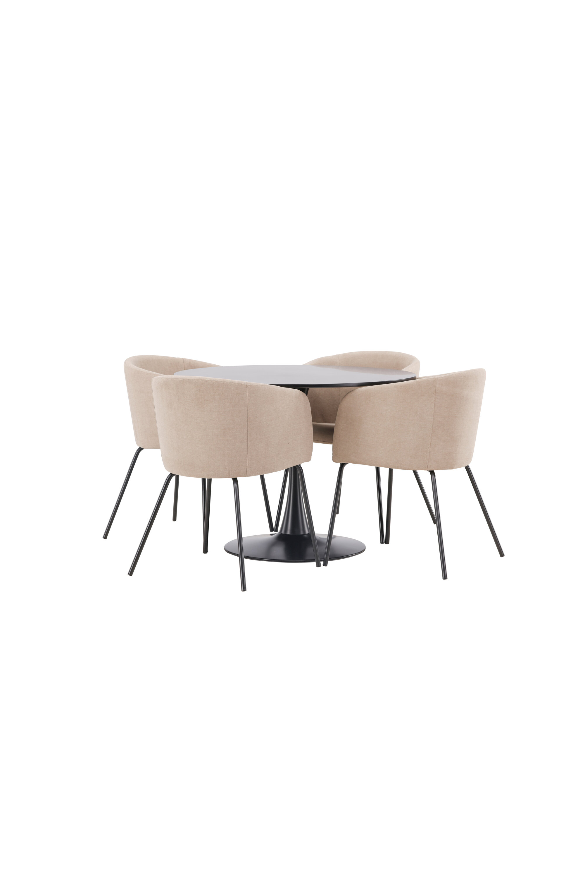 Söögigrupp, millest õhkub luksust! Glade söögilaud on stiilse skandinaavialiku disainiga, mille õhuke mustast terasest trompetijalg ja must MDF-ist lauaplaat. Siin koos meie mugavate söögitoolidega Berit. Toolil on täielikult polsterdatud disain, millel on sametkangast ja polüesterlinast kergelt ümardatud seljatugi ja iste ning kitsad mustast rauast toolijalad. Siit saate suurepärase söögigrupi oma kodu südamesse! Laua mõõdud: 100 cm.