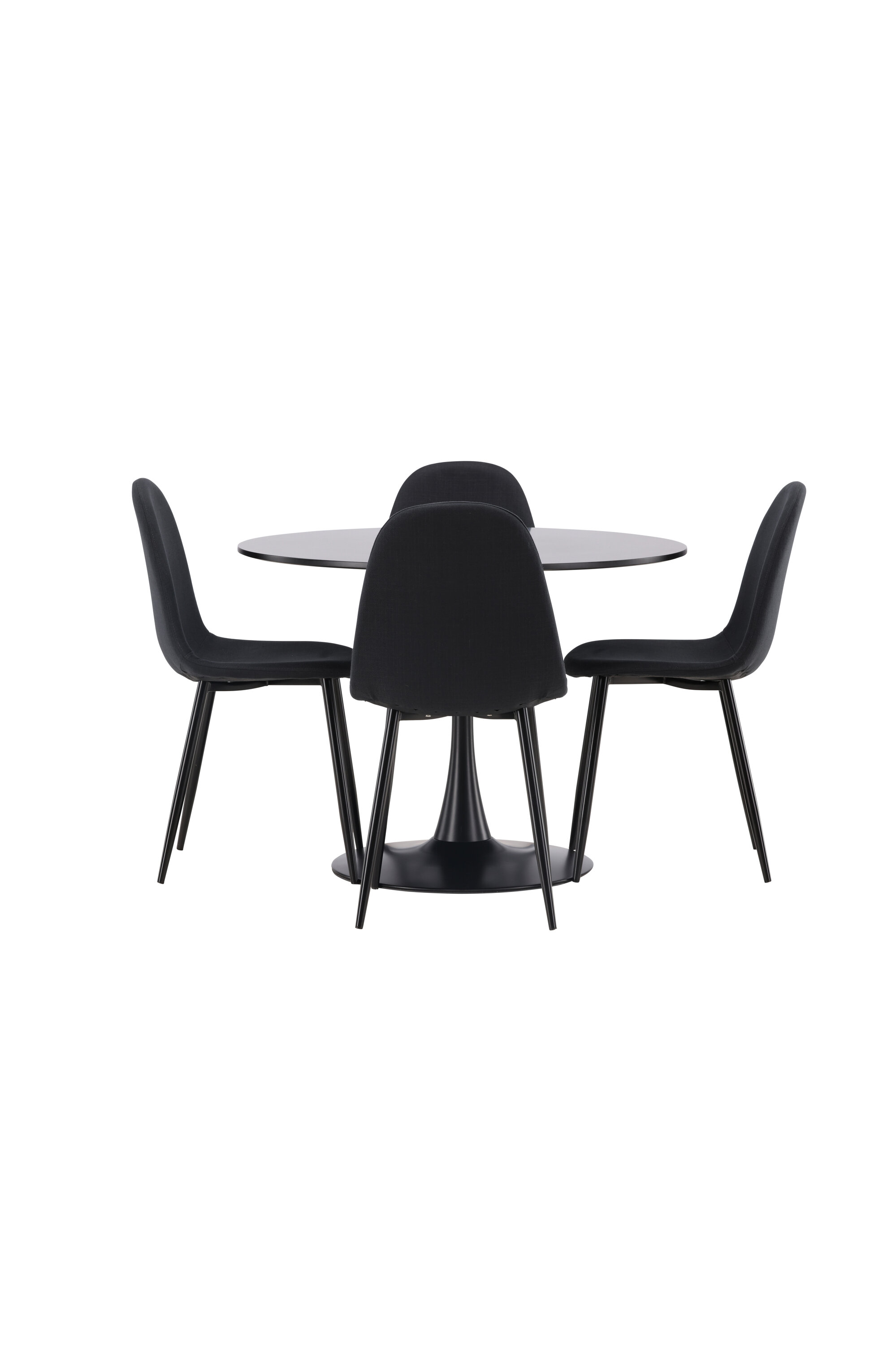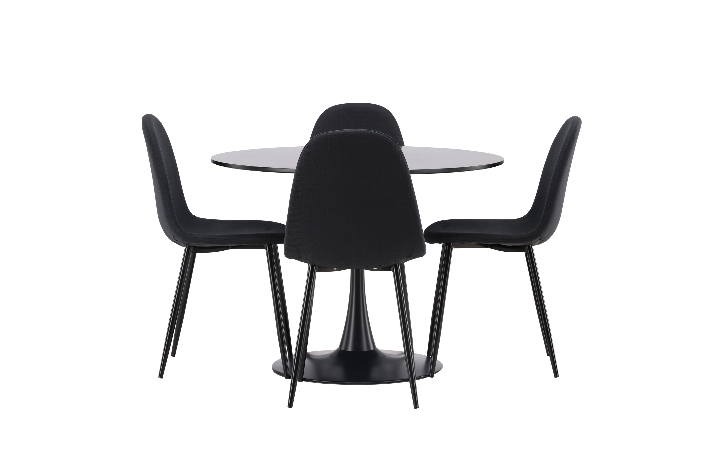 Söögilaud Glade on stiilse skandinaavialiku disainiga, mille sihvakas mustast terasest trompetijalg ja must MDF-ist lauaplaat. Siin on laud kombineeritud Polari sarja mustade söögitoolidega. Toolil on ümar disain ja klassikaline disain – nii praktiline kui ka ajatu. Seljatugi ja iste on polsterdatud musta polüesterkangaga ning jalad musta pulbervärvitud metalliga. Siit leiate sobiva tervikliku söögigrupi elutuppa või kööki! Laua mõõdud: 100 cm.