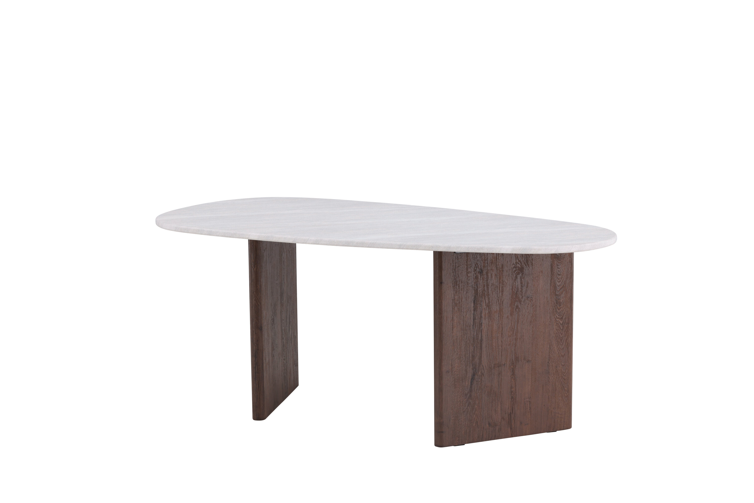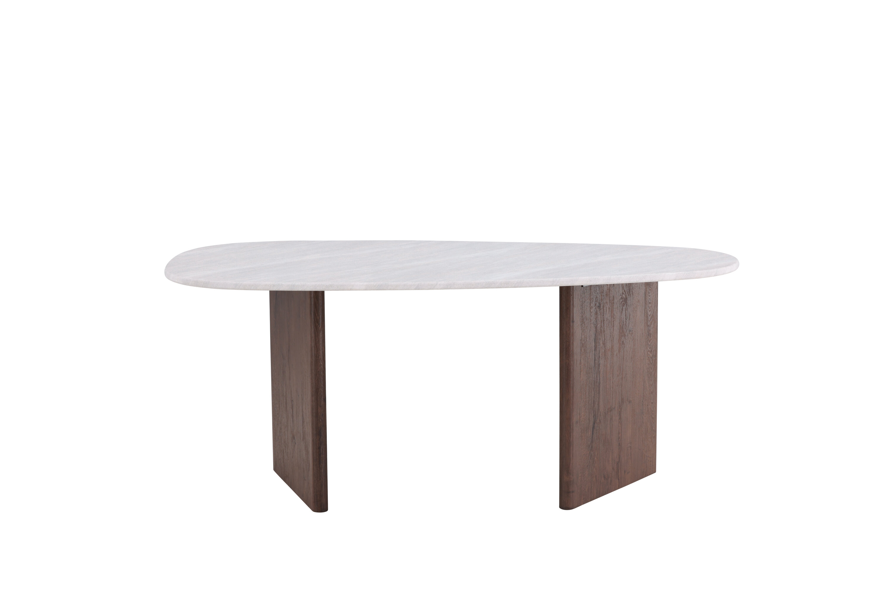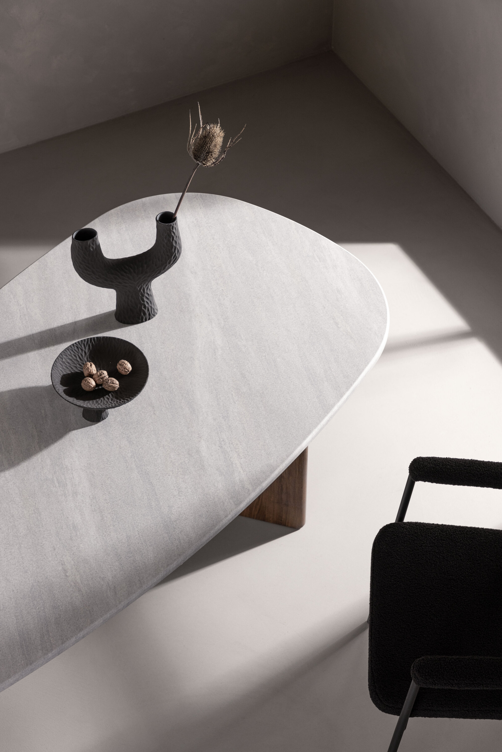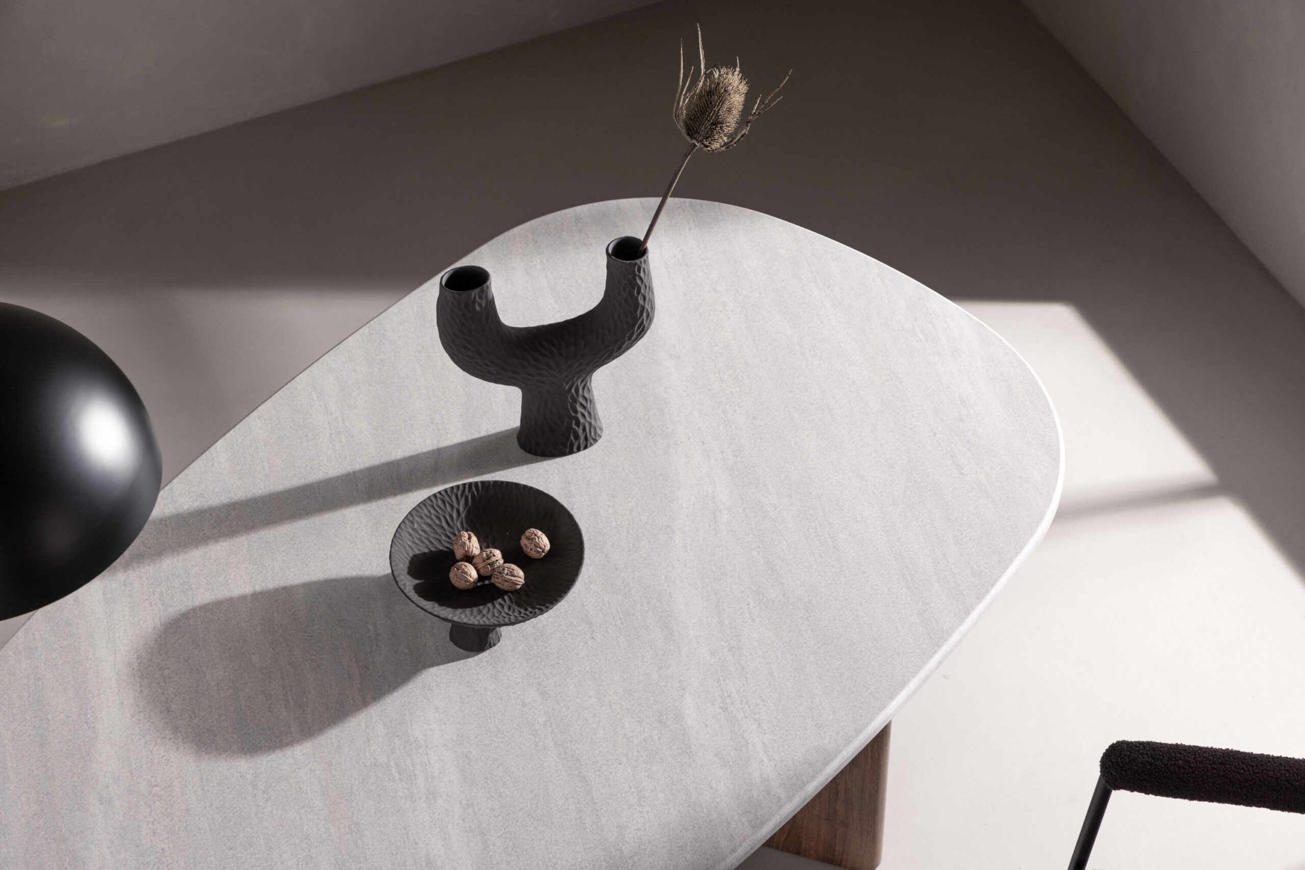 Unistuste laud GRÖNVIK loob teie koju kiiresti maitseka fookuspunkti! Skandinaavialiku disaini ja elegantse ülesehitusega lauast saab enamikus kodudes lemmik. Ebakorrapärane lauaplaat on valmistatud helehallist betooni välimusega MDF-ist ja seda toetavad kaks õhukest tumepruuni tooni puitpaneeli. Ühendage see paari stiilse söögitooliga ja teil on täielik söögigrupp kõigi ees ootavate veetlevate einete jaoks!