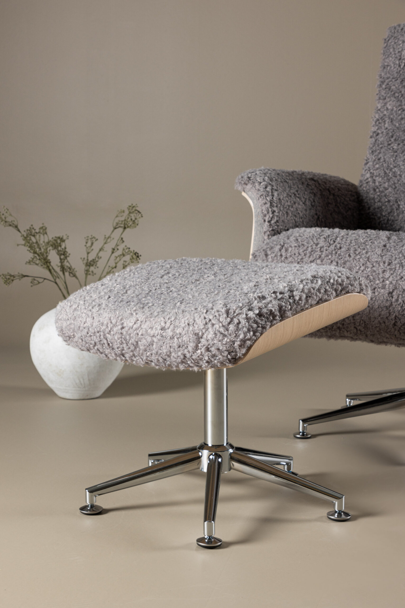 Hagön tugitool on teie koju ajatu investeering! See hoolika disaini ja läbimõeldud detailidega tugitool esindab põhjamaise disaini meistriteost. Pehme, karvase halli kangaga kaetud Hagön annab luksuse ja heaolutunde juba esimesest hetkest. Valge lubjavärvi puitraam loob õhulise ja kaasaegse esteetika, mis sulandub sujuvalt igasse interjööri. Elegantsed kroomitud jalad lisavad disainile peent sära. Mõnusalt ümarad ja lõõgastumiseks mõeldud käetoed ning kaasas olev jalatugi pakuvad väsinud jalgadele lisatuge ja mugavust. Lisaks on mugavuse maksimeerimiseks reguleeritav seljatugi. Ükskõik, kas soovite raamatut nautida või sõpradega suhelda, on Hagön selleks parim koht!