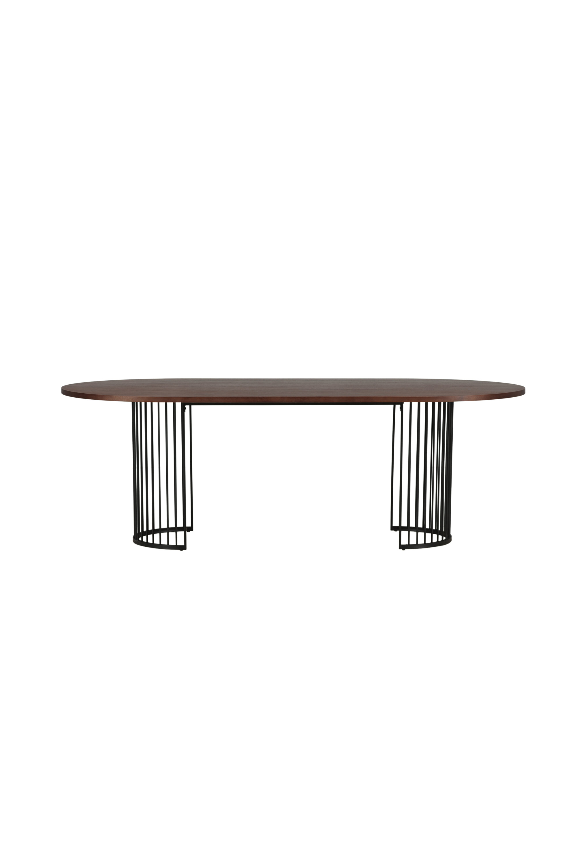 Loo Hamneskäri sarja pilkupüüdva söögilaua abil kutsuv ja stiilne pilgupüüdja kodu südames! Sellel tuulekollektsiooni elegantsel söögilaual on tumedast puidust ovaalne lauaplaat ja kitsast mustast teraskonstruktsioonist dekoratiivne veermik, mis on kujundatud kahe poolringi kujul. Siin ei pea te kompromisse tegema praktilise ja elegantse söögilaua vahel. Sobitage paari stiilse söögitooliga ja saate täiusliku toidugrupi kogu nädala toidukordadeks!
