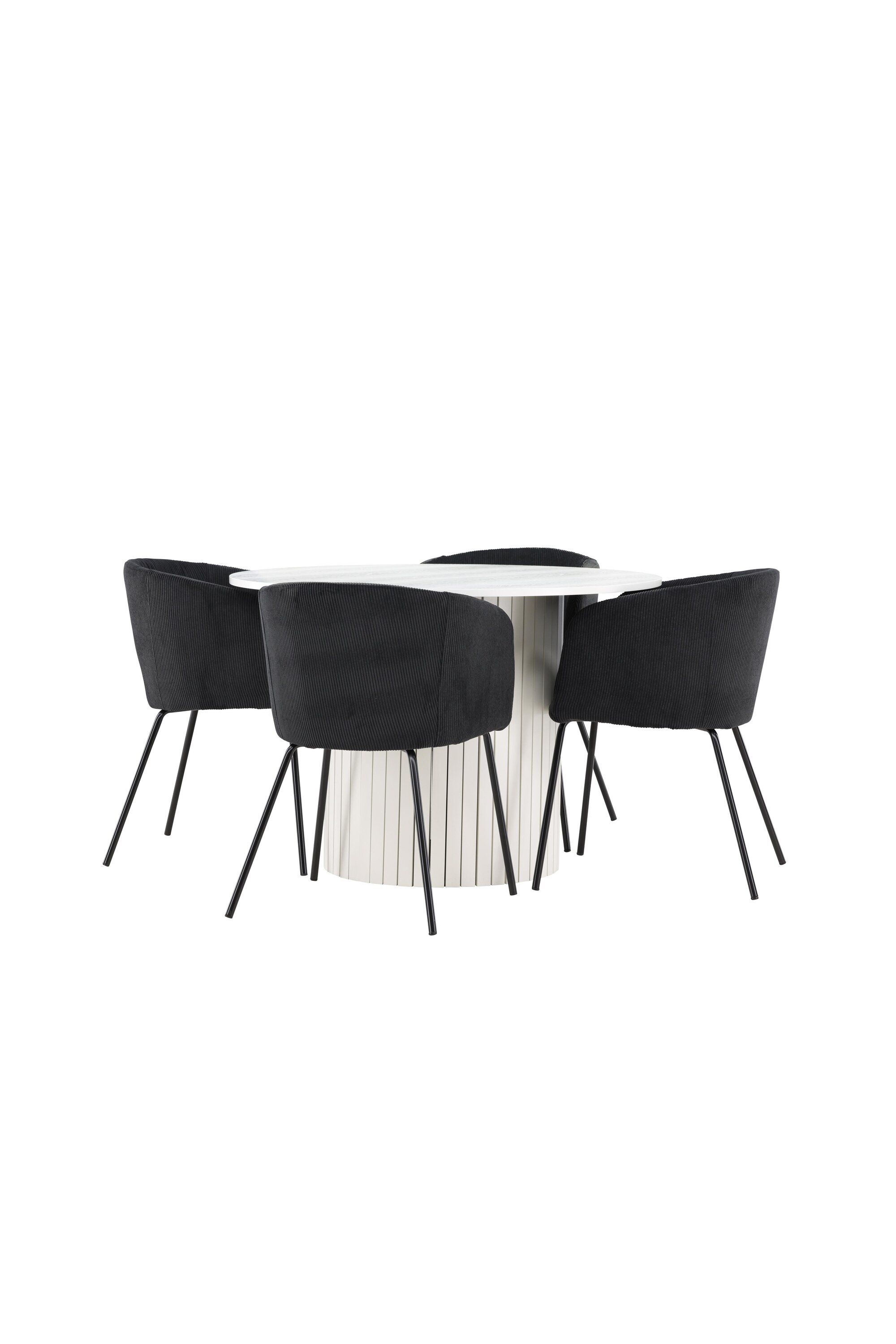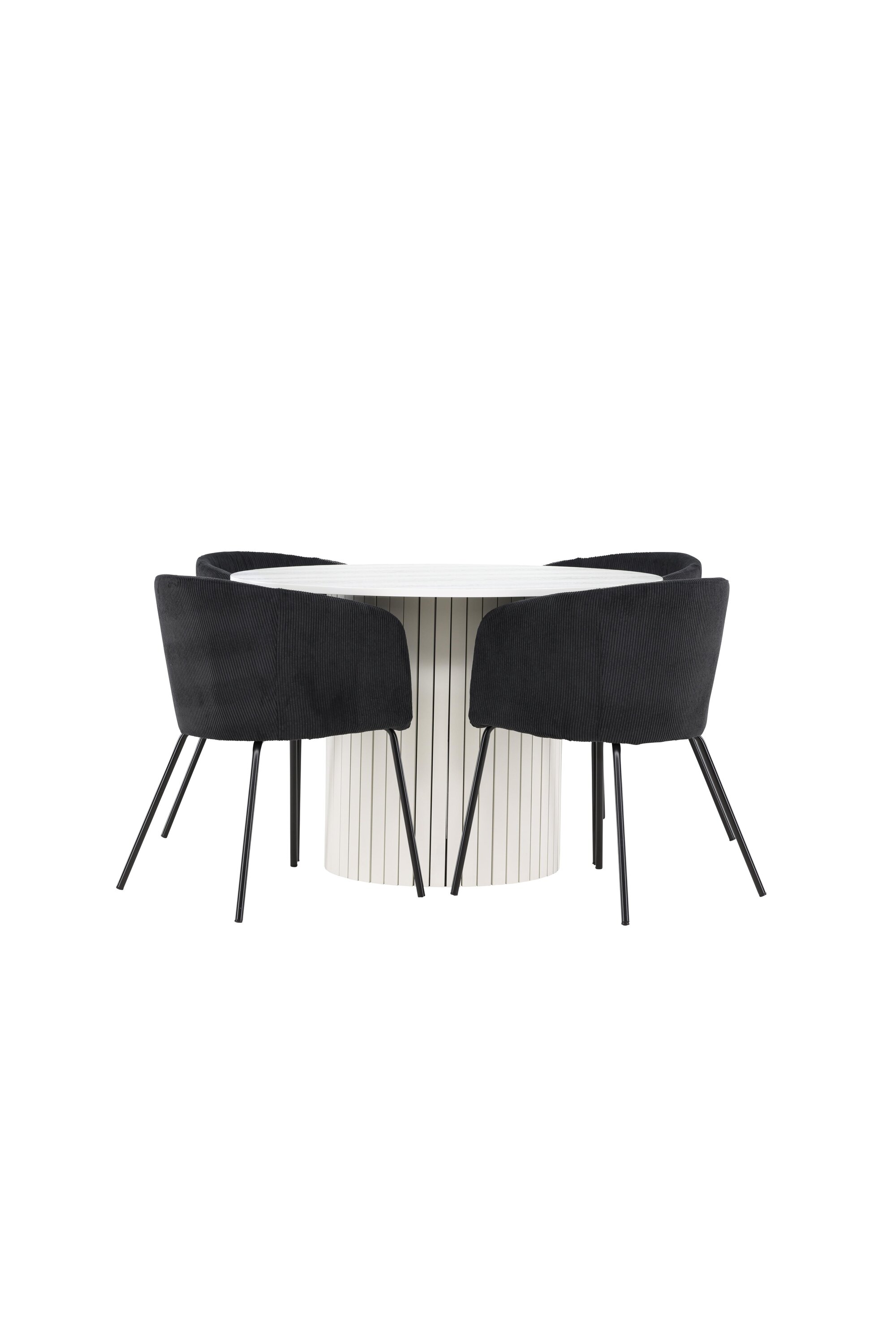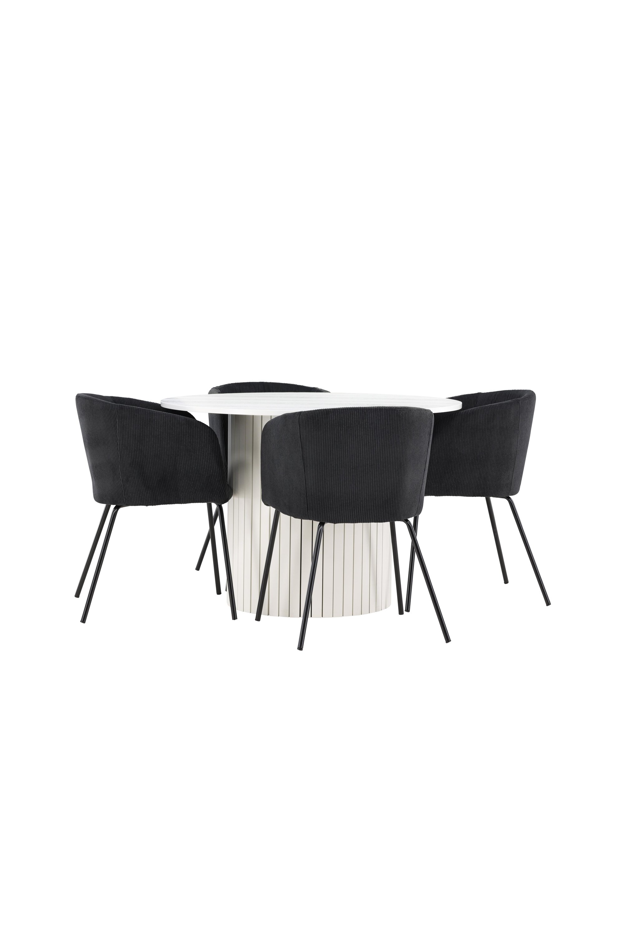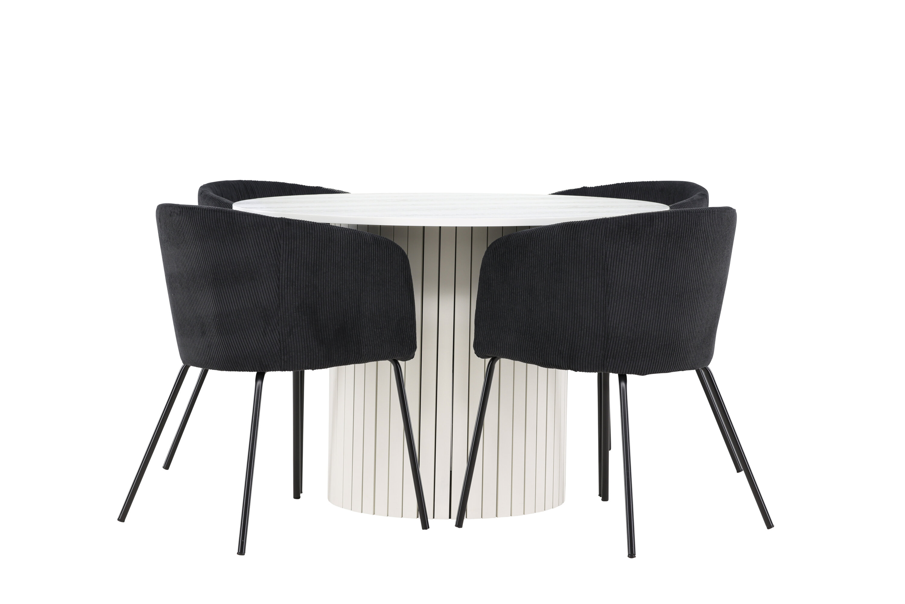 Looge stiilne ja kutsuv söögituba meie elegantse söögikomplektiga, mis ühendab endas kaasaegse Häroni laua mugavate Berit toolidega. See söögikomplekt sobib suurepäraselt nii igapäevaseks õhtusöögiks kui ka pidulikuks sündmuseks, andes teie söögitoale rafineeritud ja kaasaegse tunde. MDF-st valmistatud Häroni laud on puhta valge värviga, mis lisab teie söögituppa kerge ja värske atmosfääri. 110 cm läbimõõduga laud pakub rohkelt ruumi söögiks ja vestlusteks, ümar kuju loob aga harmoonilise ja tasakaalustatud keskkonna. Laua tugev konstruktsioon tagab pikaajalise kasutamise ja stabiilsuse. Neli Beriti tooli täiendavad lauda suurepäraselt oma elegantsete musta velvetist kaetud istmetega. Need toolid pakuvad nii mugavust kui ka stiili, muutes need ideaalseks pikaks ja nauditavaks õhtusöögiks pere ja sõpradega. Nende kaasaegne disain koos kõrgete seljatugede ja pehmete istmetega annab teie söögitoale rafineeritud ja kaasaegse ilme. See söögikomplekt on täiuslik segu esteetikast ja funktsionaalsusest, mistõttu on see suurepärane valik neile, kes otsivad elegantset ja mugavat söögituba. Täiustage oma söögituba Häroni laua ja Berit toolide kombinatsiooniga ning looge koht, kus jagatakse mälestusi ja rõõmu.
