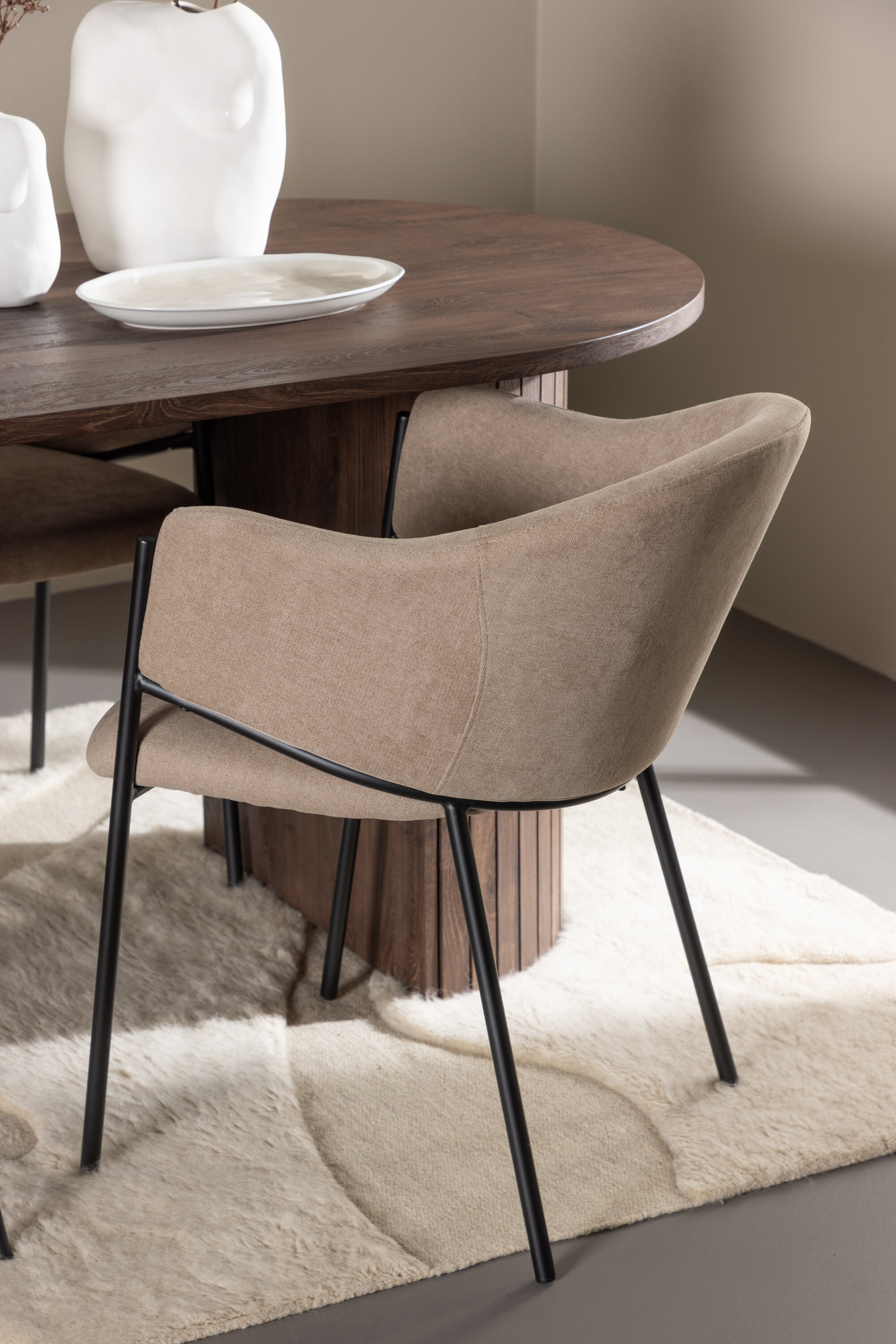 Tutvuge Evelina söögitooli ja Häröni söögilauaga – ideaalne kombinatsioon soojaks ja kutsuvaks einestamiskogemuseks. Praktilistes 2-pakkides müüdav Evelina söögitool on polsterdatud pehme beeži polüesterlinaga, mis annab teie söögitoale elegantse ja maalähedase tunde. Tugev konstruktsioon teeb Evelinast usaldusväärse kaaslase pikkade ja nauditavate söögikordade ajal. Selle neutraalne värv ja klassikaline disain sobivad ideaalselt iga kodu sisekujundusega, luues sooja ja külalislahke õhkkonna. Häröni söögilaud, mille mõõtmed on 200×90 cm, on ideaalne koht, kus koguneda nii pere kui ka sõbrad mõnusaks õhtusöögiks ja pikkadeks vestlusteks. Laud on elegantses mokavärvis, mis annab teie toale maalähedase ja neutraalse tunde. Lauaplaat on valmistatud MDF-st ja seda toetavad tugevad terasest jalad, mis tagavad stabiilsuse kõikide söögikordade ja koosviibimiste ajal. Looge selle söögikomplektiga sõpruse ja koosolemise atmosfäär, kus igast söögikorrast saab eriline hetk, mida mäletada. Olgu see siis igapäevasteks söögikordadeks või pidulikeks sündmusteks, Evelina söögitool ja Härön söögilaud on teie kodu süda, kus tugevdatakse suhteid ja jagatakse rõõmu.