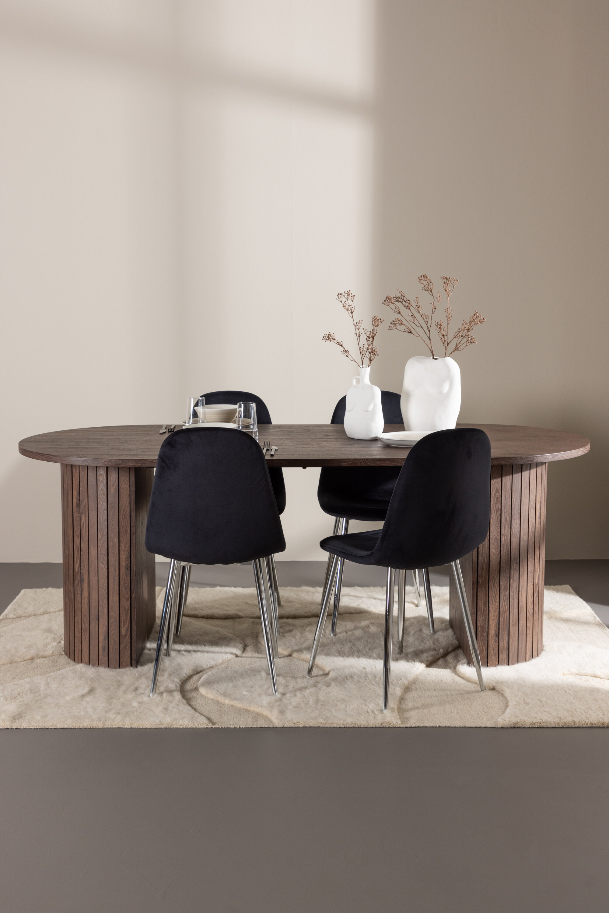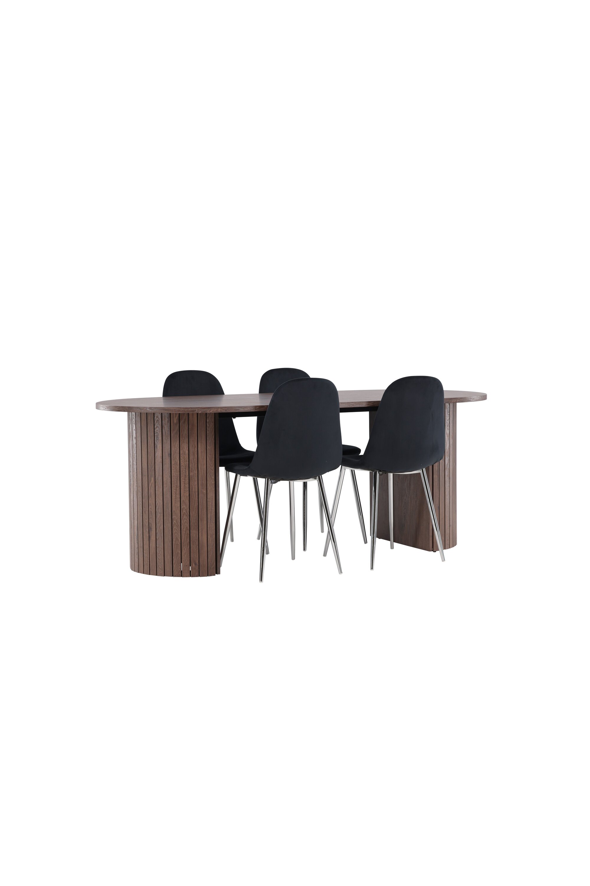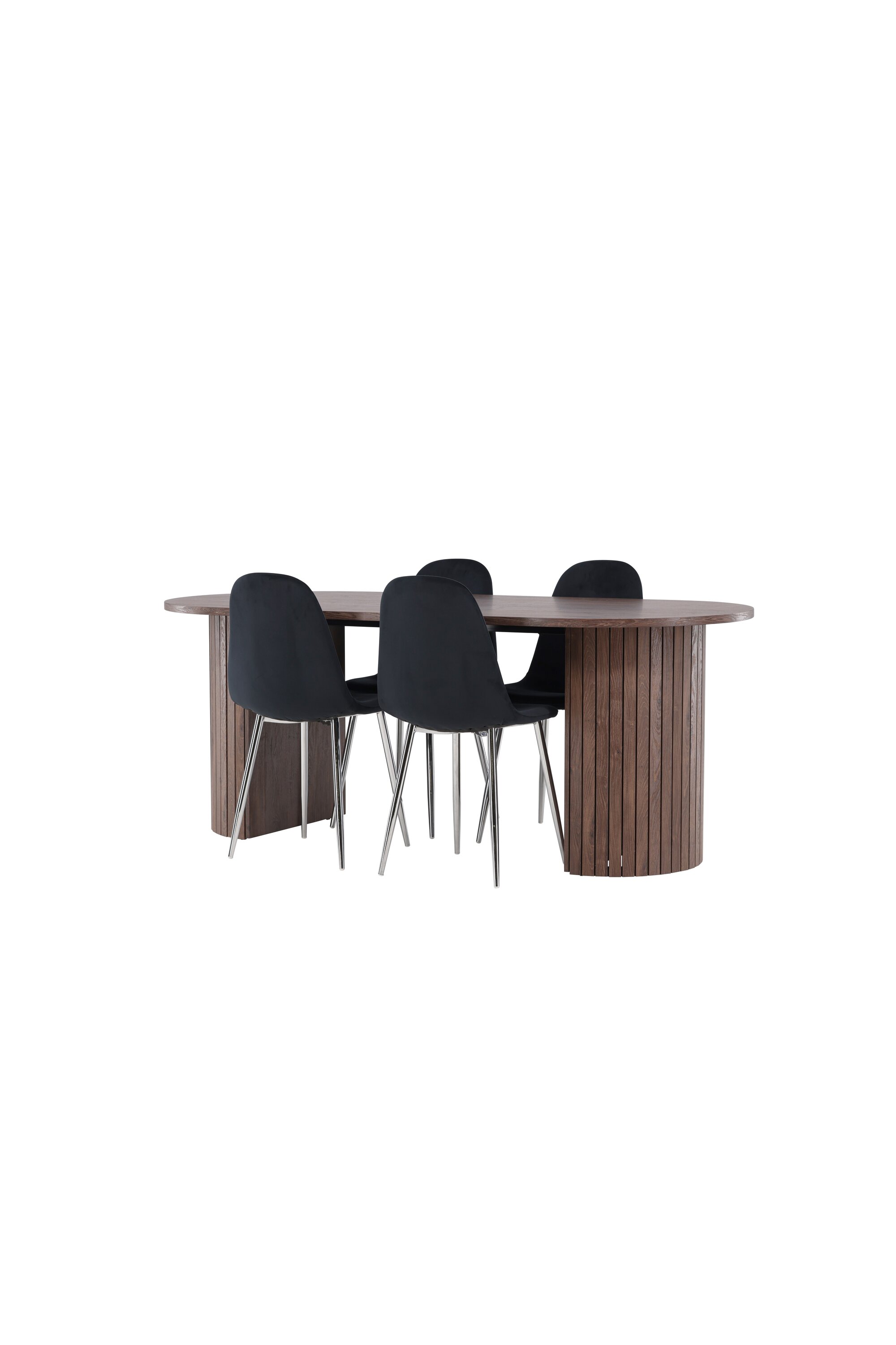 Avastage täiuslik söögikomplekt Polari söögitoolide ja Häröni söögilauaga – luksuse, mugavuse ja elegantsi kombinatsioon teie koju. Polari söögitoolidel on täielikult polsterdatud disain, kroomitud metallist jalad, veidi ümar seljatugi ja pehme pehme polsterdusega iste. Siin ei pea te mugavuse ja disaini vahel järeleandmisi tegema. Need toolid sobivad ideaalselt kokku mõne meie stiilse söögilauaga, et luua terviklik söögikomplekt kodu südamesse. Tere tulemast Häröni söögilaua äärde – kus sünnivad kogukonna õitsengud ja mälestused. Suurte mõõtmetega 200×90 cm on see laud ideaalne koht pere ja sõprade kogunemiseks meeldivateks õhtusöökideks ja pikkadeks vestlusteks. Häröni söögilaud on elegantses mokavärvis, mis annab teie ruumile maalähedase ja neutraalse tunde. Lauaplaat on valmistatud MDF-st ja seda toetavad tugevad terasest jalad, mis tagavad stabiilsuse kõikide söögikordade ja koosviibimiste ajal. Looge selle söögikomplektiga sõpruse ja koosolemise atmosfäär, kus igast söögikorrast saab eriline hetk, mida mäletada. Olgu igapäevaseks söögiks või pidulikuks sündmuseks, Polari söögitoolid ja Häröni söögilaud on teie kodu süda, kus tugevdatakse suhteid ja jagatakse rõõmu.