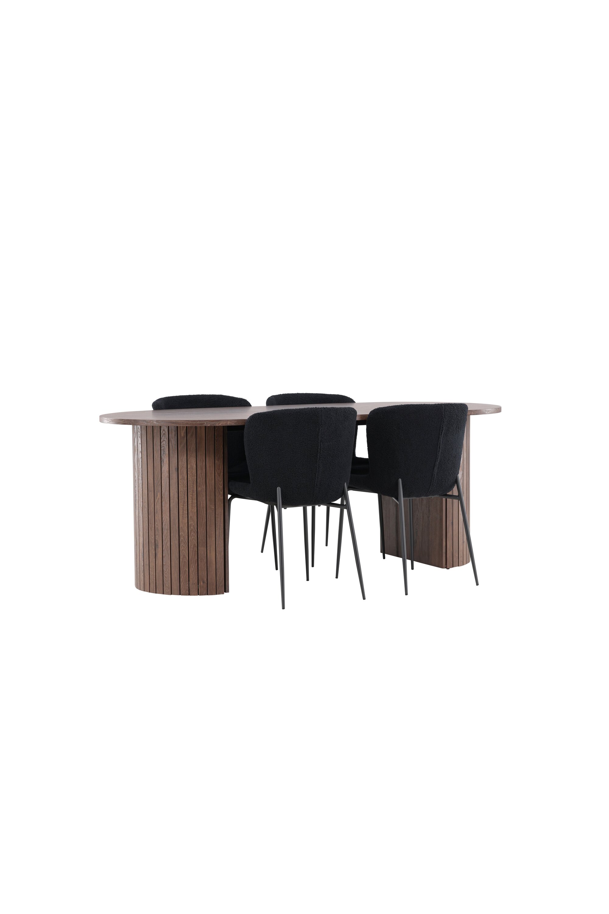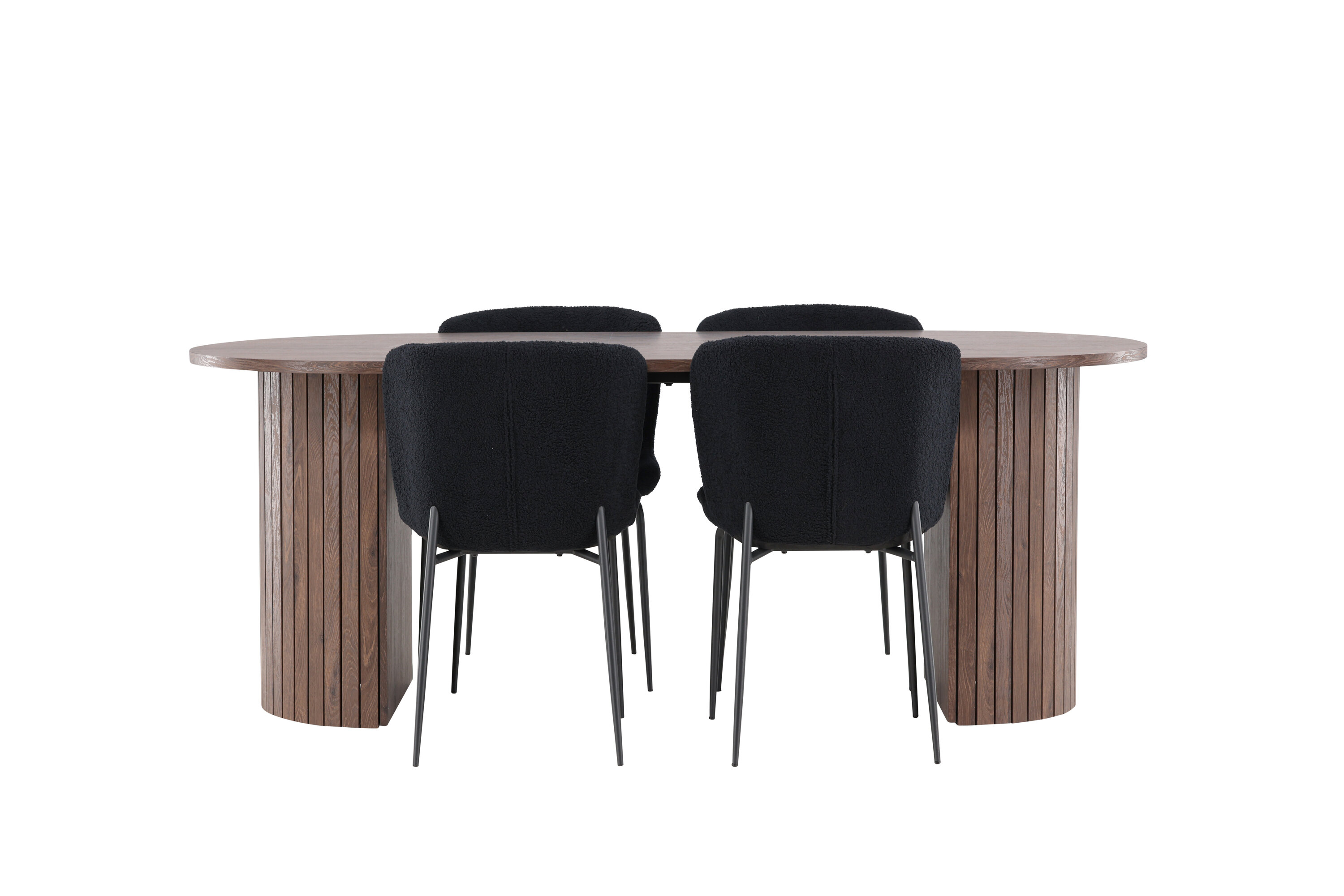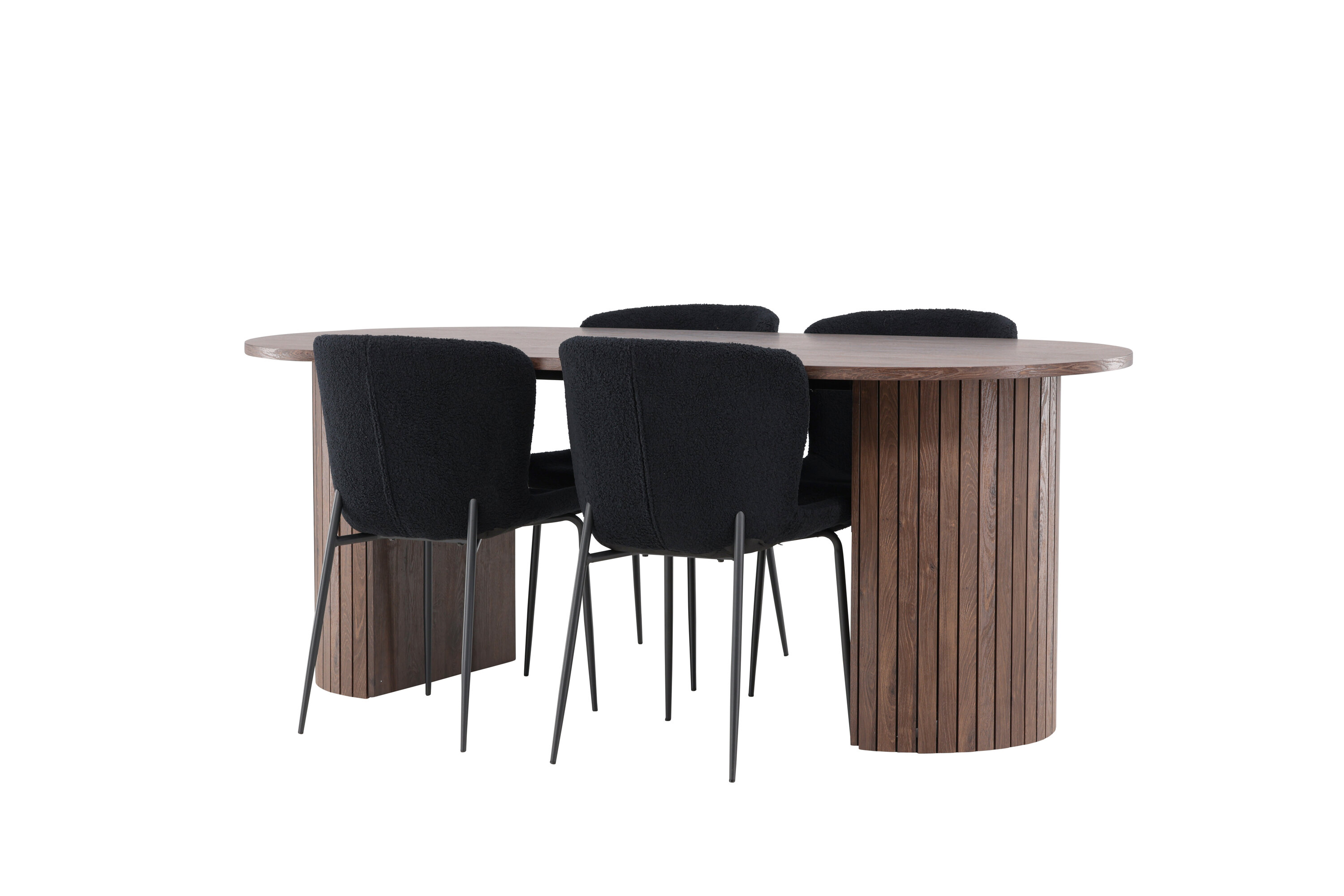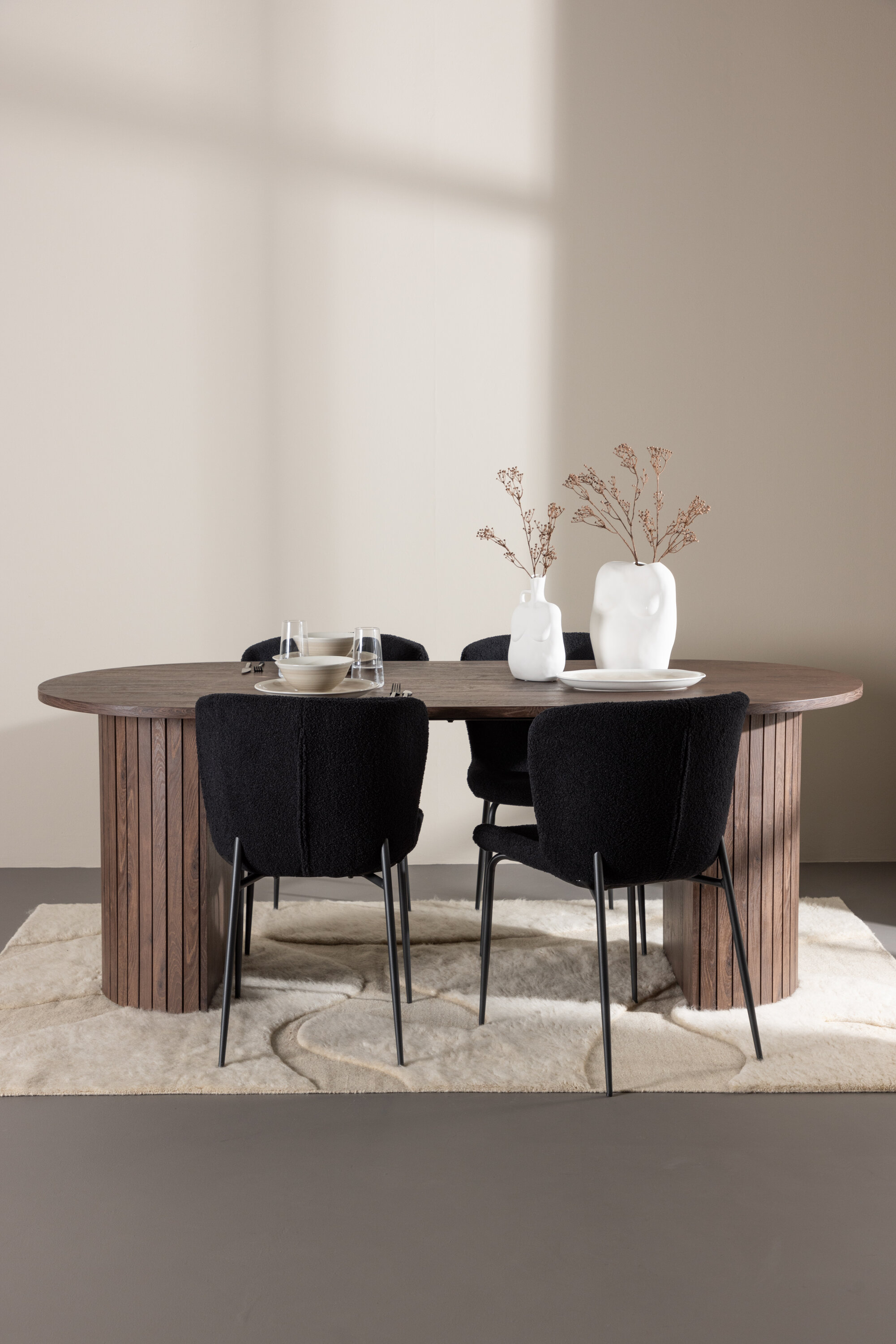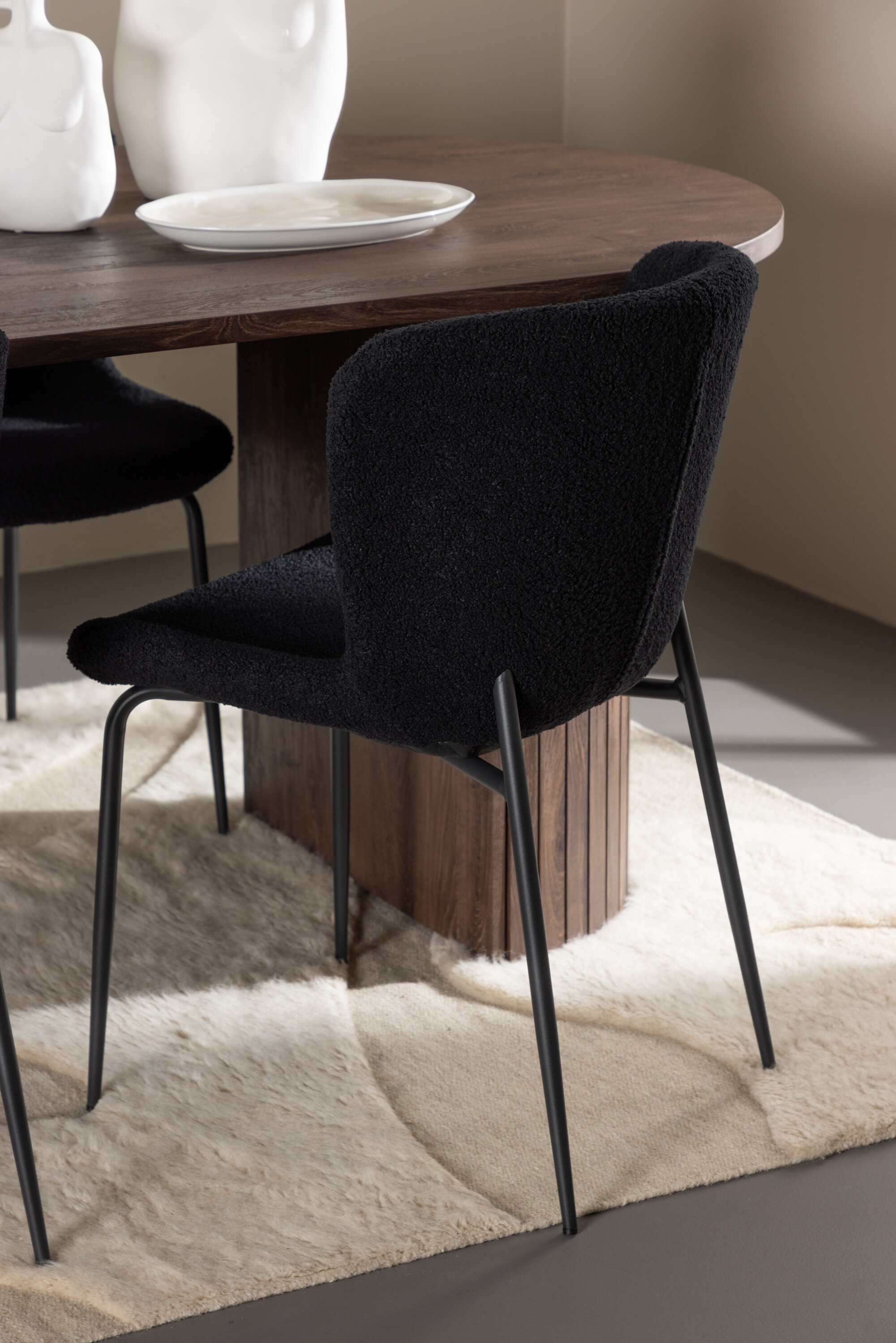 Avastage ideaalne söögikomplekt Modesto söögitooli ja Häröni söögilauaga – elegantsi, modernsuse ja funktsionaalsuse kombinatsioon teie koju. Modesto söögitoolil on pehme teddy materjaliga kaetud iste ja terasest jalad, mis pakuvad nii mugavust kui stiili. Elegantse musta istmega sobivad ideaalselt kokku mustad jalad, andes toolile ajatu ja stiilse disaini. Modesto sobib oma lihtsa ja modernse esteetikaga suurepäraselt erinevatesse interjööristiilidesse ja jätab teie koju püsiva mulje. Modesto söögitooliga saate oma söögitoale elegantsi ja stiili värskendada – see on suurepärane valik nii igapäevaseks õhtusöögiks kui ka pidulikuks sündmuseks. Komplektis Häröni söögilaud, kus õitseb koosolemine ja sünnivad mälestused. Suurte mõõtmetega 200×90 cm laud pakub palju ruumi pere ja sõprade kogumiseks, et veeta õhtusööke ja pikki vestlusi. Häröni söögilaud on elegantses mokavärvis, mis annab teie ruumile maalähedase ja neutraalse tunde. Lauaplaat on valmistatud MDF-st ja seda toetavad tugevad terasest jalad, mis tagavad stabiilsuse kõikide söögikordade ja koosviibimiste ajal. Loo Häröni söögilauaga sõpruse ja koosolemise atmosfäär, kus igast toidukorrast saab eriline hetk, mida meenutada. Olenemata sellest, kas tegemist on igapäevaste einete või pidulike sündmustega, sellest söögikomplektist saab teie kodu süda, kus tugevdatakse suhteid ja jagatakse rõõmu.