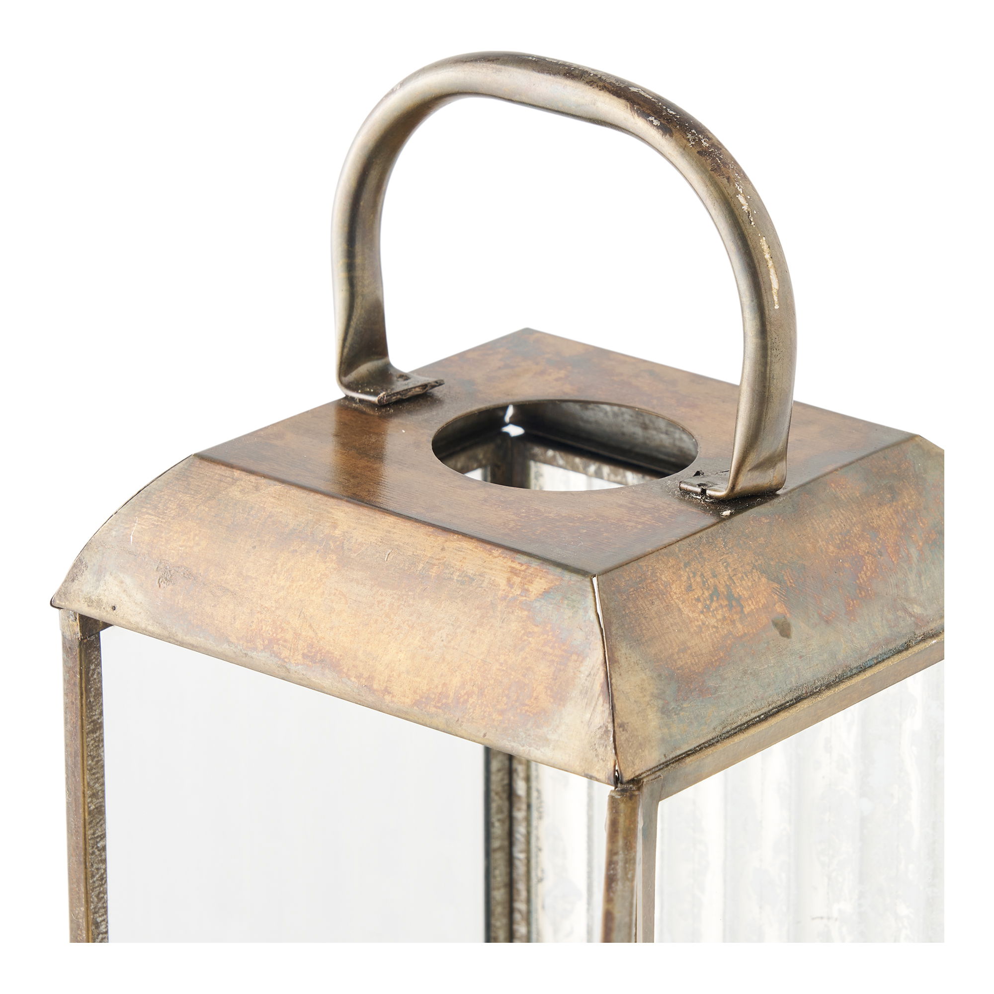 Herslevi latern, klaas/metall, antiikmessingist imitatsioon, 12x12x49 cm