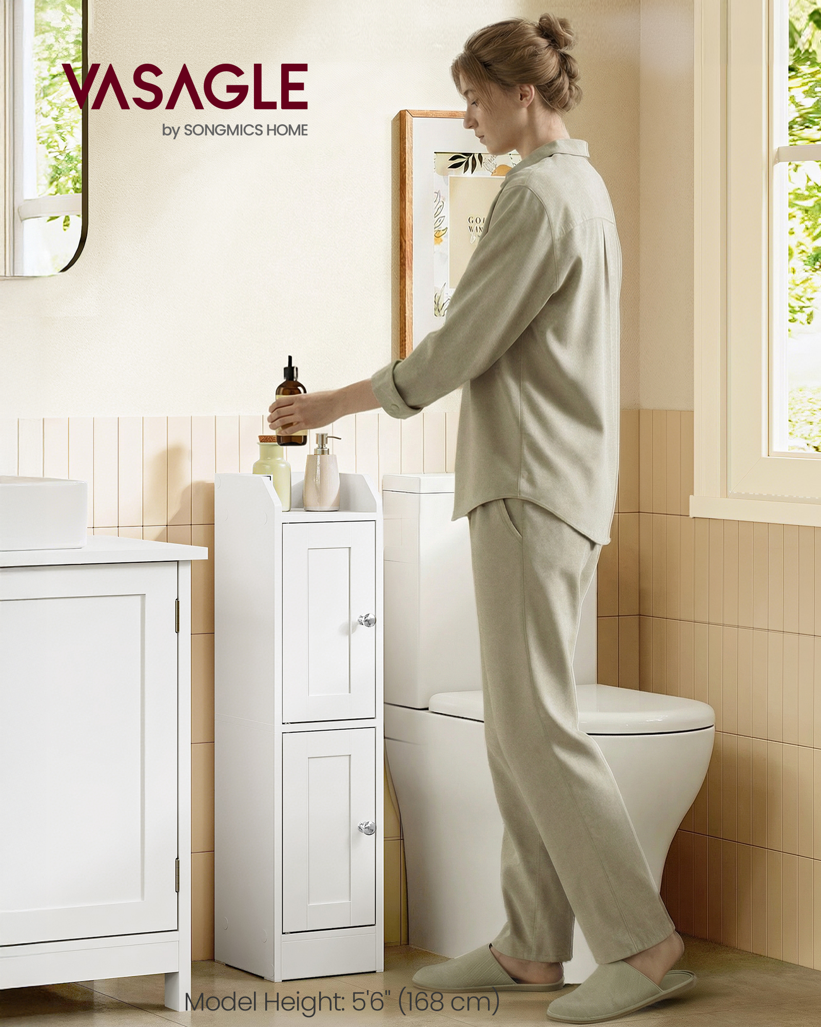 Spetsifikatsioonid: – Värvus: Pilvevalge – Materjal: Puitlaastplaat, MDF (keskmise tihedusega puitkiudplaat) – Toote mõõdud: 7,9″S x 7,1″L x 31,5″K (20 x 18 x 80 cm) – Toote kaal: 11,2 naela (5,1 kg) – Maksimaalne staatiline kandevõime riiuli kohta: 11 naela (5 kg) – Maksimaalne staatiline kogukandevõime: 55 naela (25 kg) Pakisisu: – 1 x õhuke hoiukapp – 1 x tarvikute komplekt – 1 x ümberkukkumisvastane komplekt – 1 x juhend VASAGLE Märkused: – Ohutuse tagamiseks kinnitage vannitoa hoiukapp komplekti kuuluva ümberkukkumisvastase komplektiga seinale.