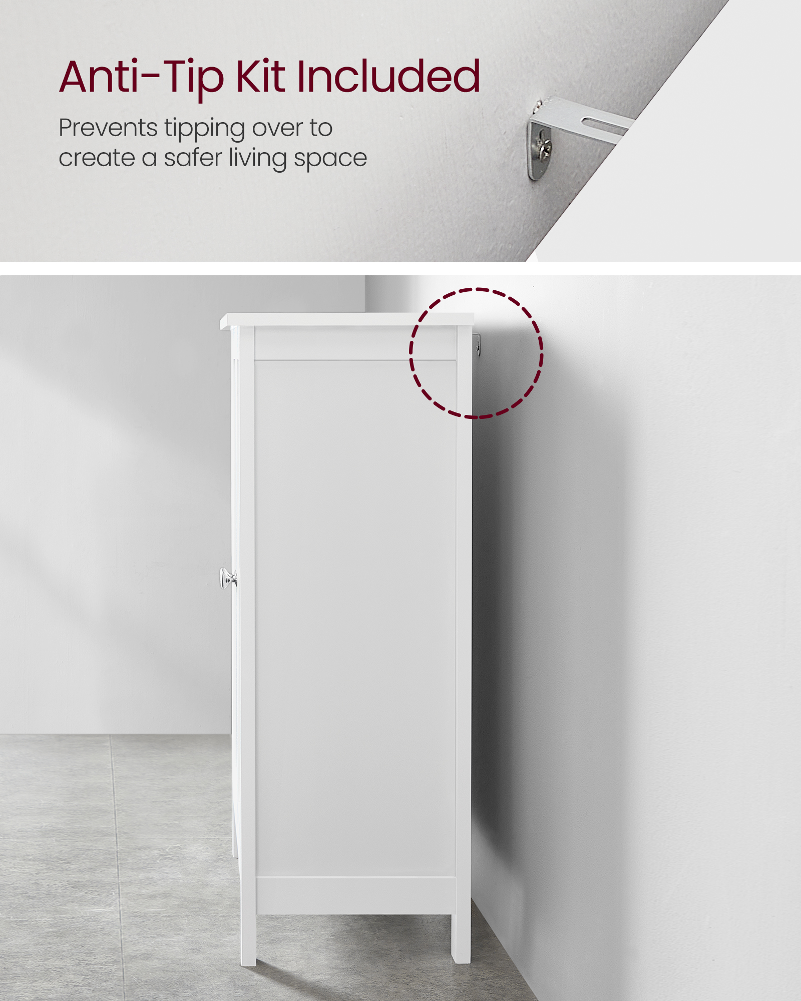 Spetsifikatsioonid: – Värvus: Valge – Materjal: MDF (keskmise tihedusega puitkiudplaat) – Toote mõõdud: 60 x 30 x 80 cm (P x L x K) – Toote kaal: 13 kg Pakisisu: – 1 x vannitoakapp – 1 x ümberkukkumisvastane komplekt – 1 x tarvikute komplekt – 1 x juhend (EN, DE, FR, ES, IT)