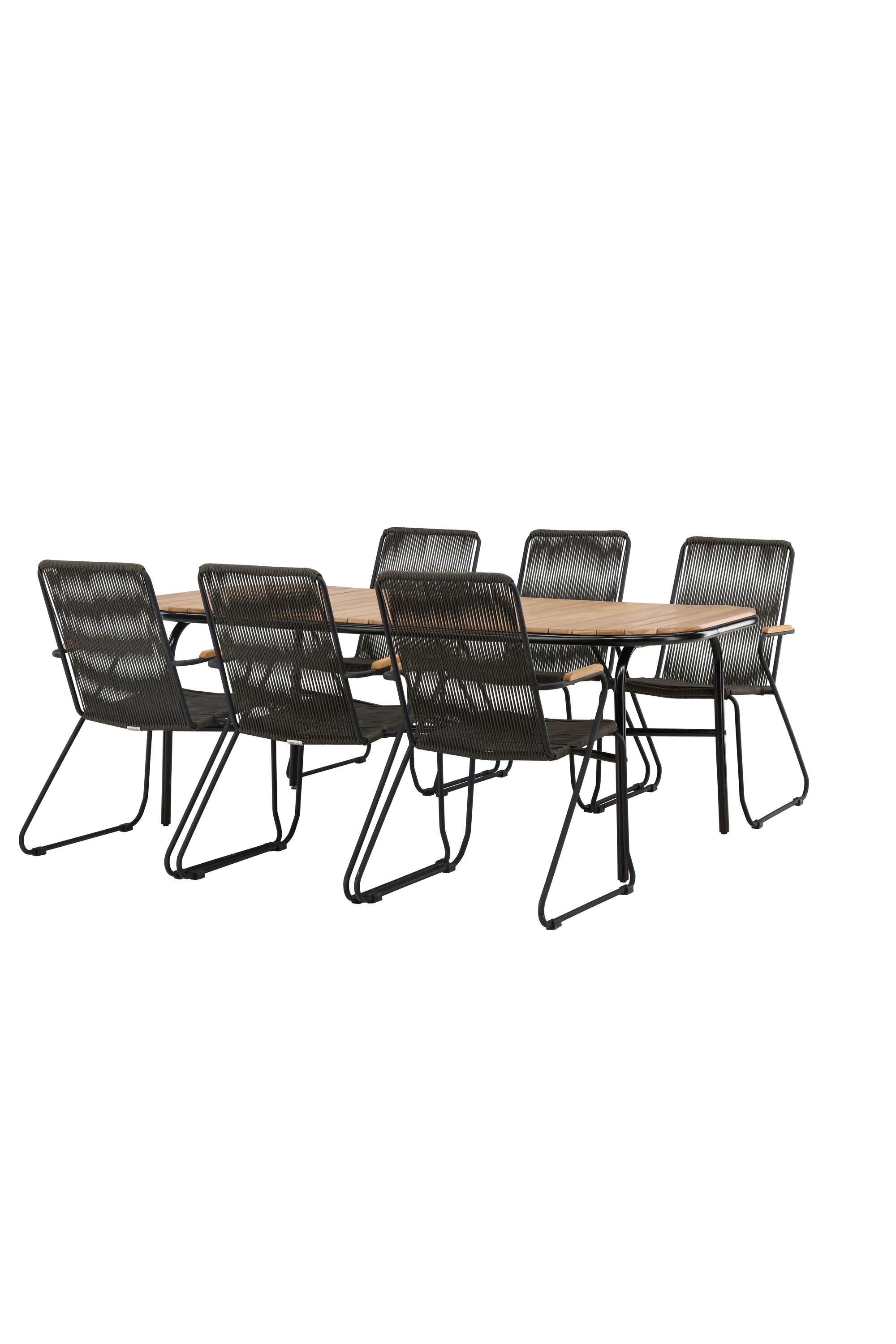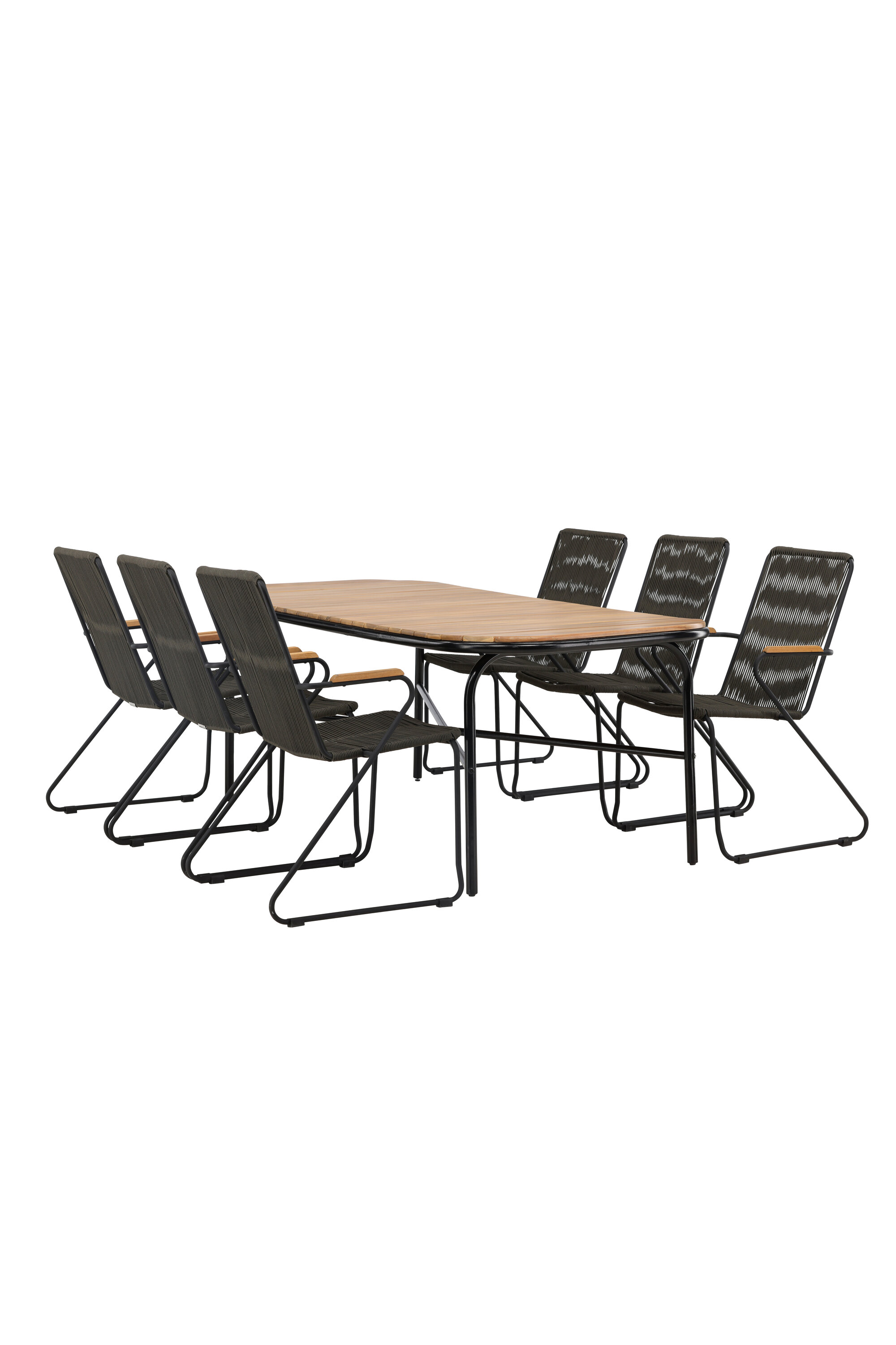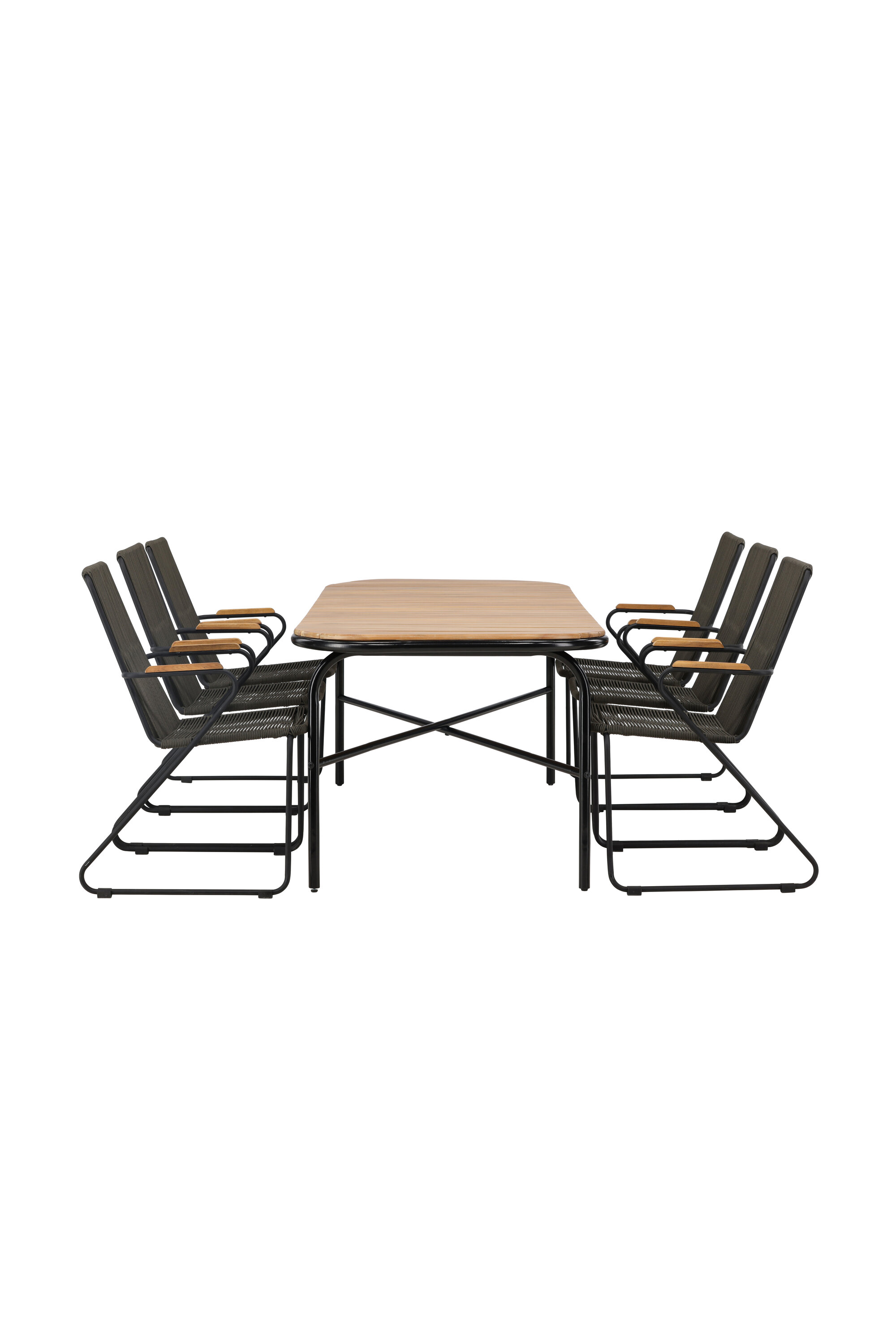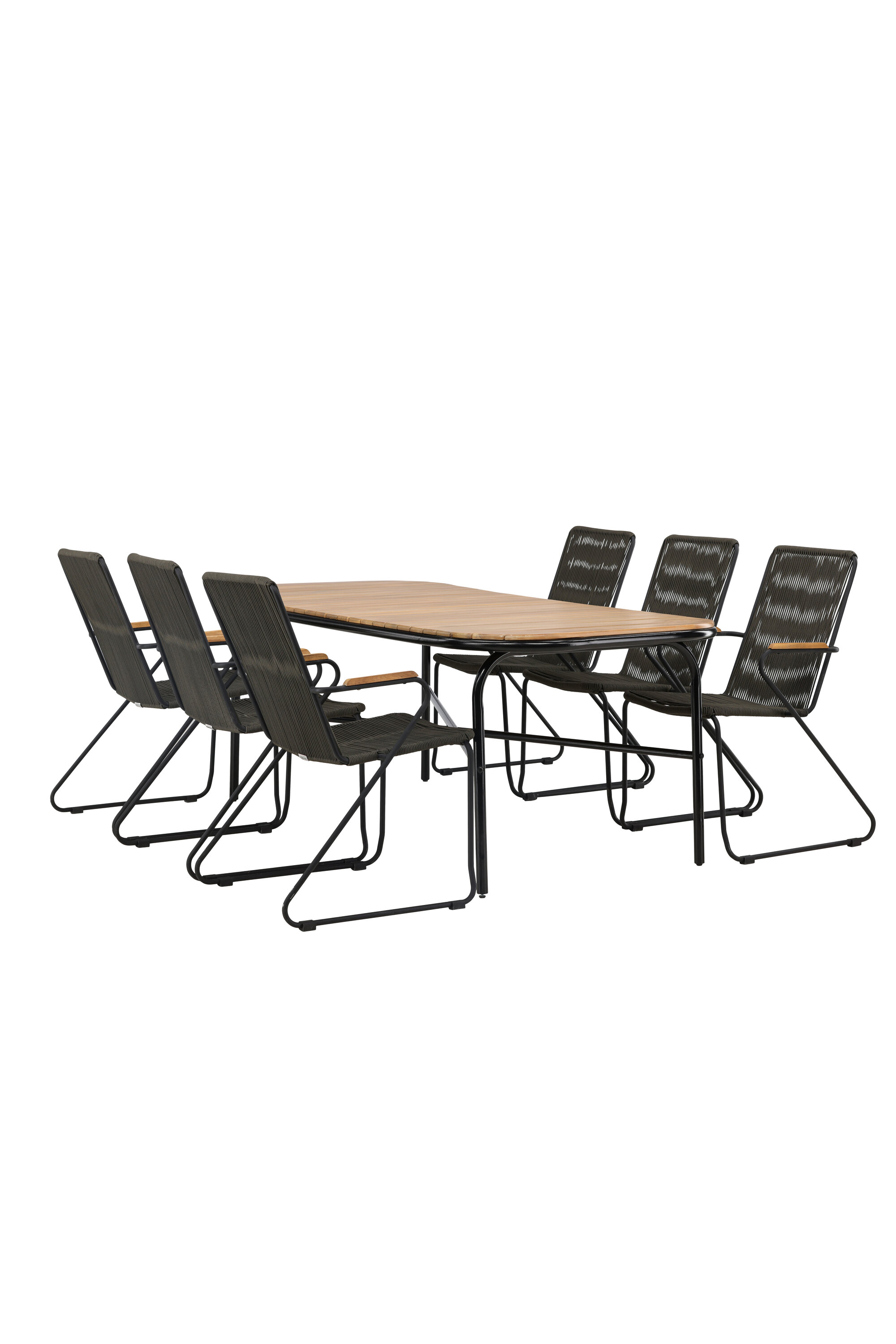 Stiilne, nutikas ja vastupidav – kõigi õigete funktsioonidega söögigrupp! Populaarsel Holmbecki söögilaual on elegantse akaatsiapuust ristkülikukujuline ümarate servadega lauaplaat ja minimalistlik mustast terasest põhi. Siin maitsekas kombinatsioonis Bois sarja hallide söögitoolidega. Toolil on mugav disain tiikpuust käetugede, musta terasraami ja tumehalli nööriistmega. Istuge mugavalt ja kutsuge lähedased õue maitsvatele einetele! Laua mõõdud: 200x90x75cm.