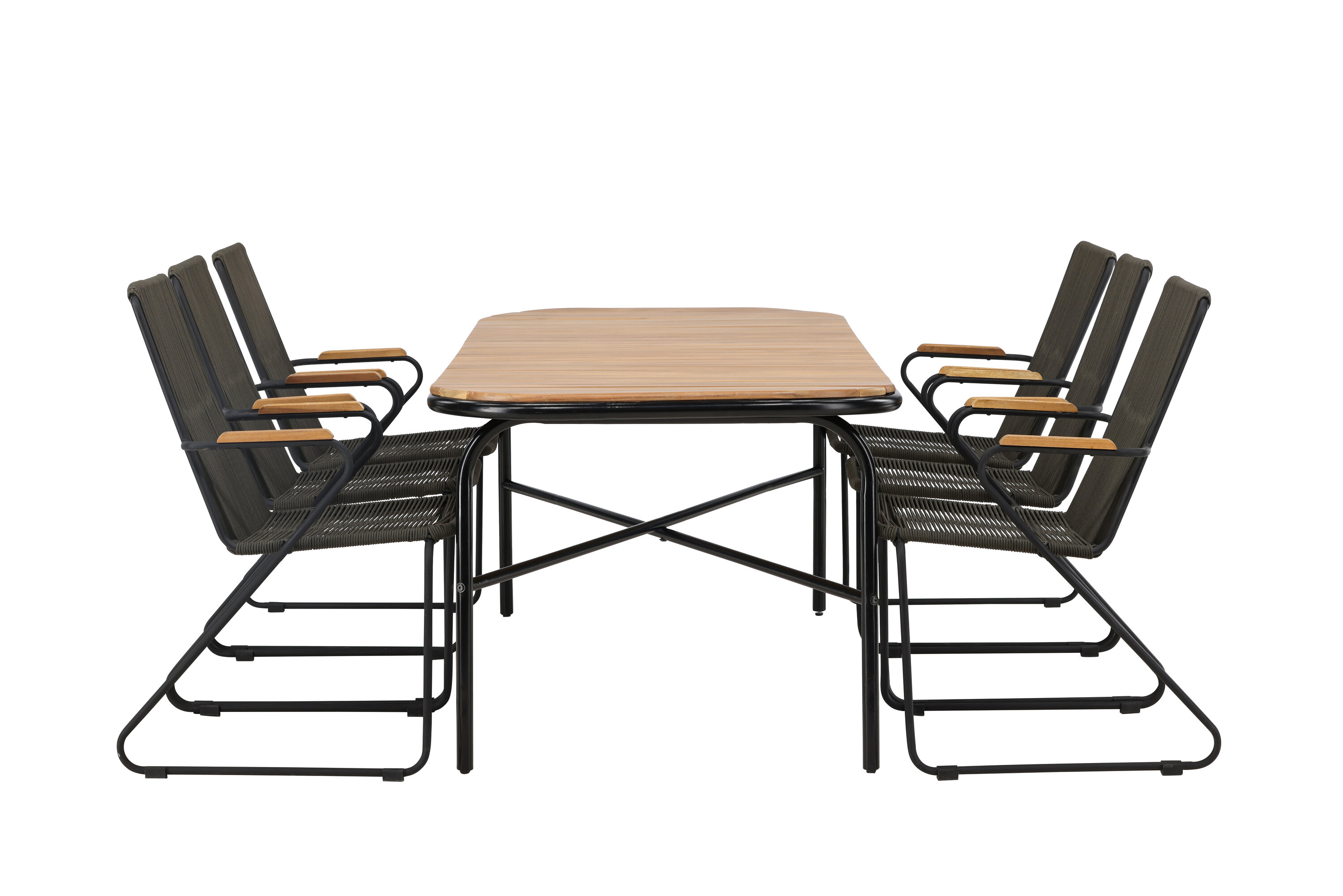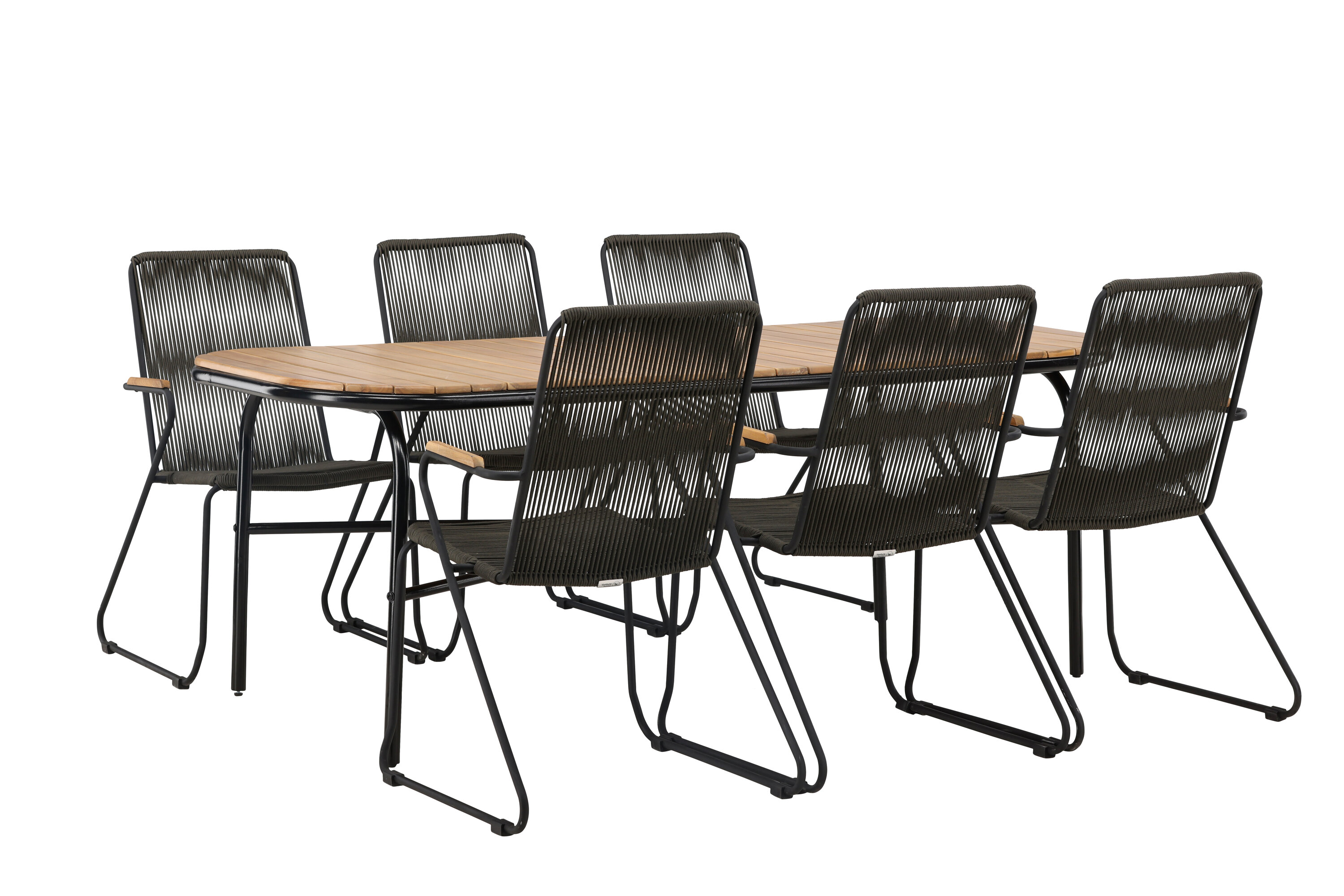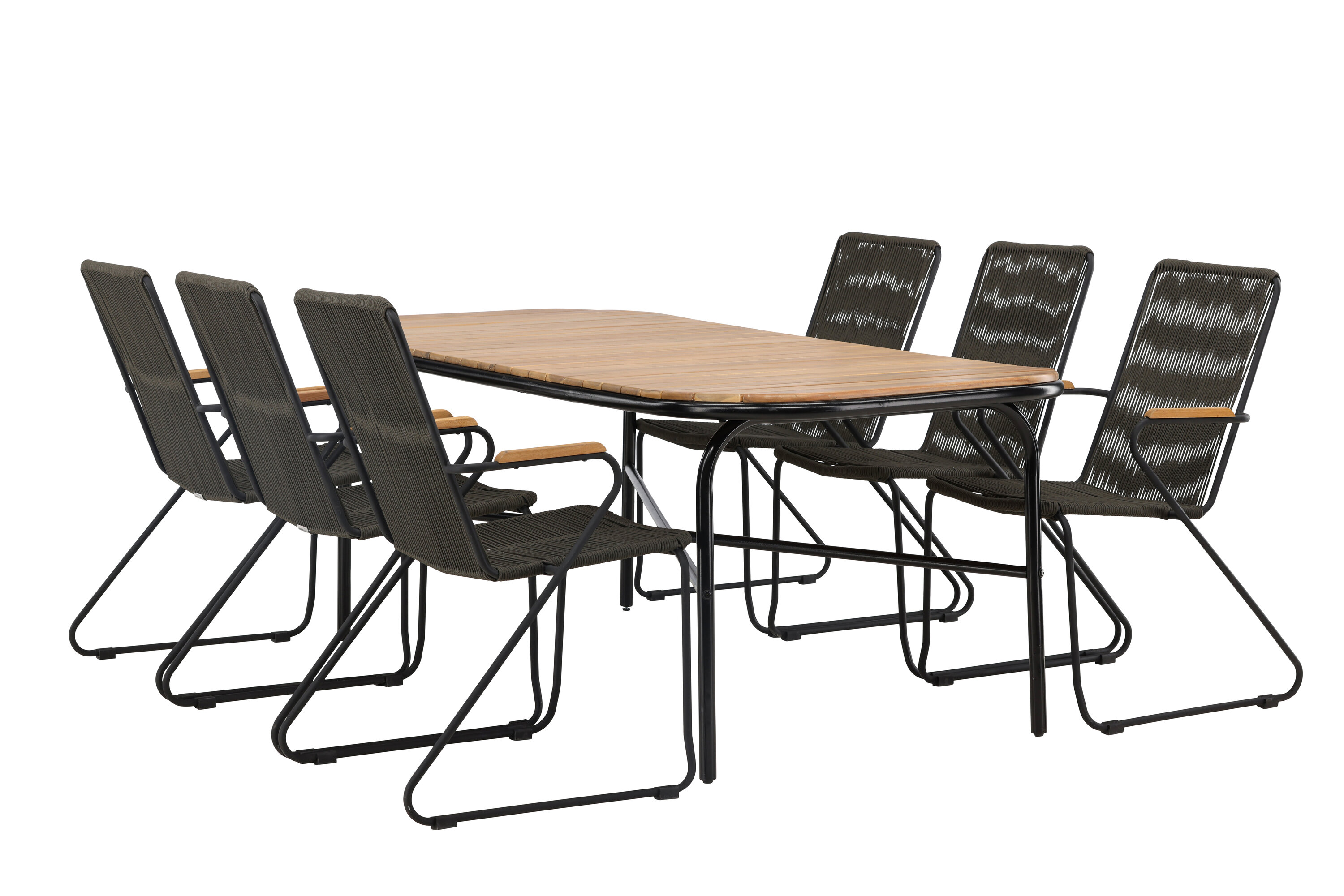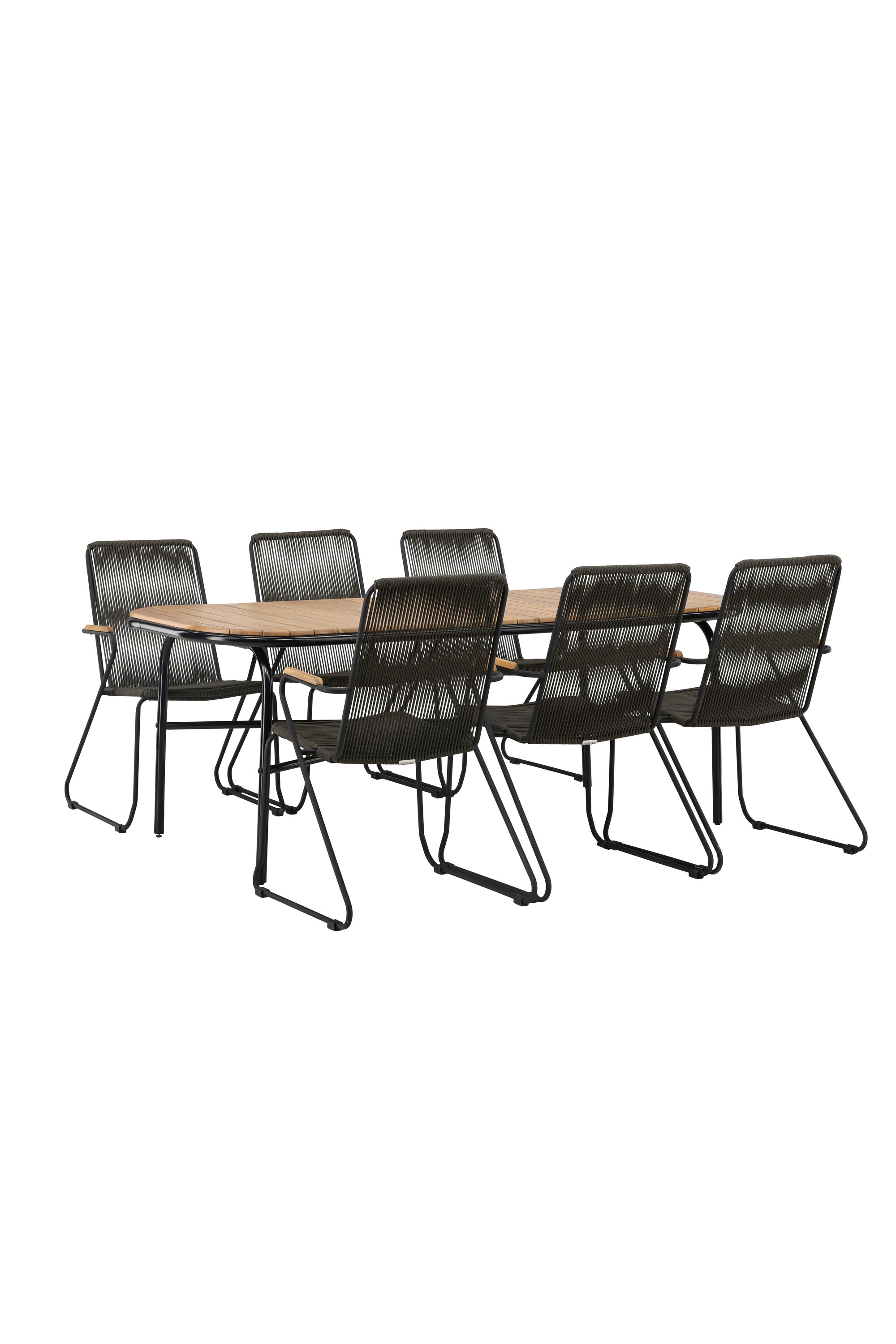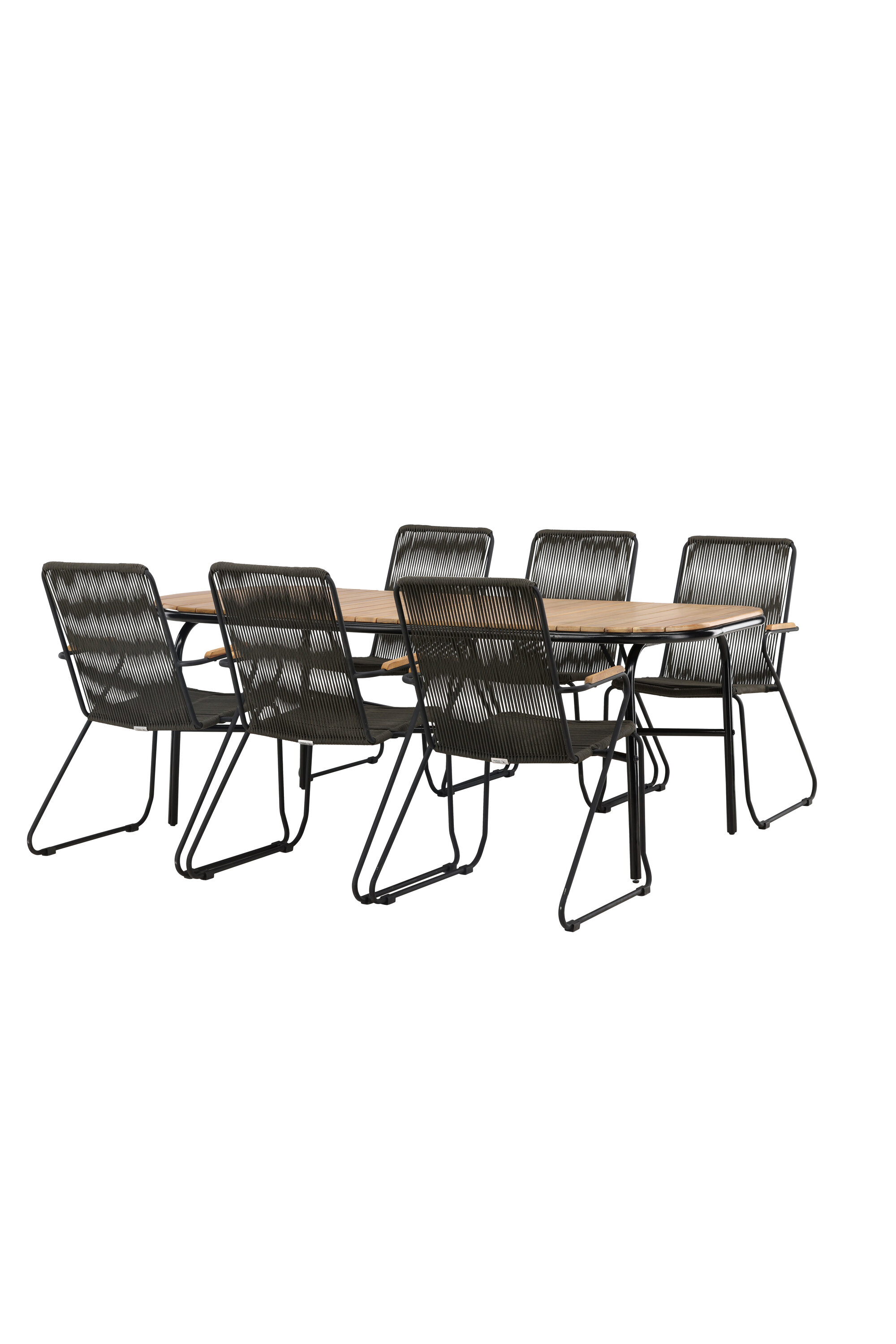 Stiilne, nutikas ja vastupidav – kõigi õigete funktsioonidega söögigrupp! Populaarsel Holmbecki söögilaual on elegantse akaatsiapuust ristkülikukujuline ümarate servadega lauaplaat ja minimalistlik mustast terasest põhi. Siin maitsekas kombinatsioonis Bois sarja hallide söögitoolidega. Toolil on mugav disain tiikpuust käetugede, musta terasraami ja tumehalli nööriistmega. Istuge mugavalt ja kutsuge lähedased õue maitsvatele einetele! Laua mõõdud: 200x90x75cm.