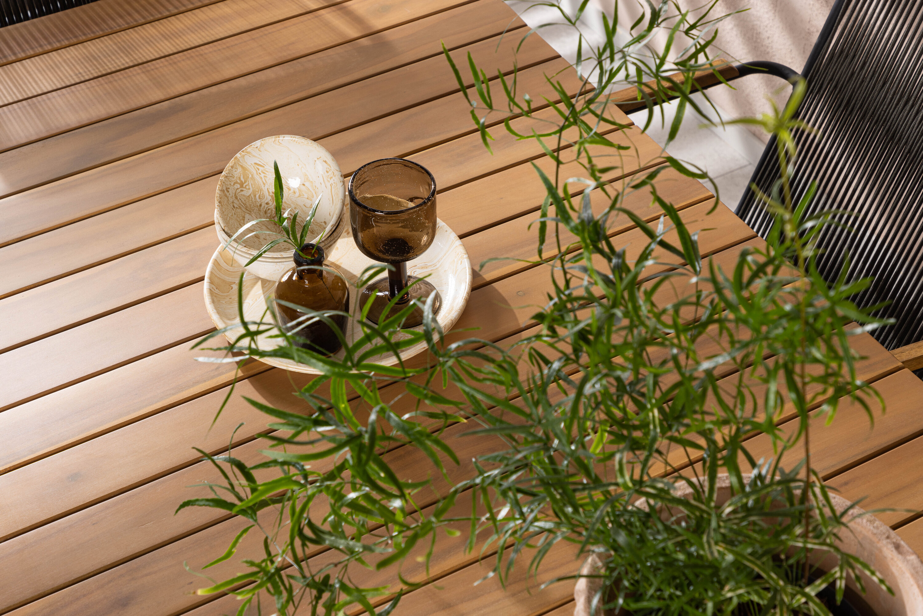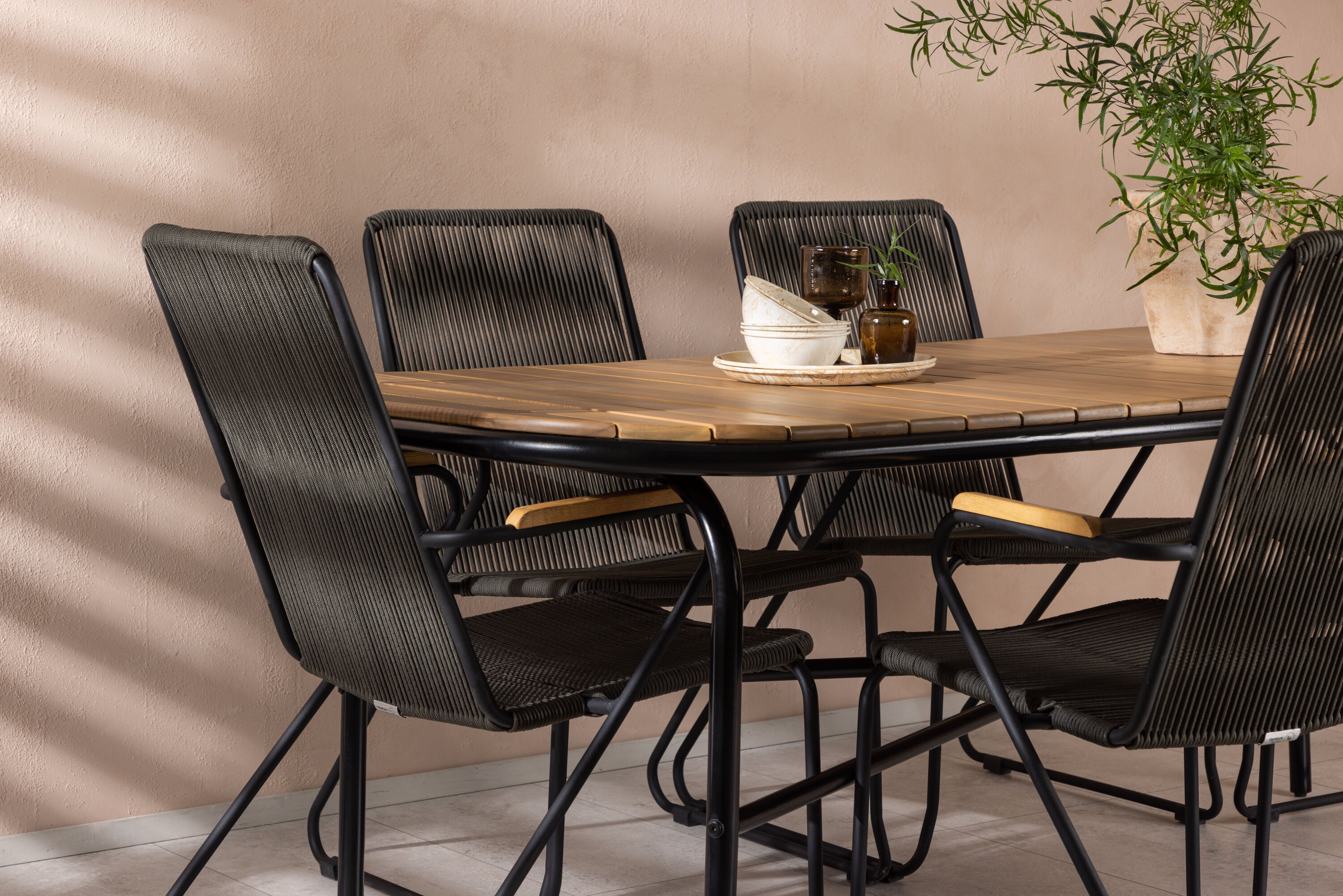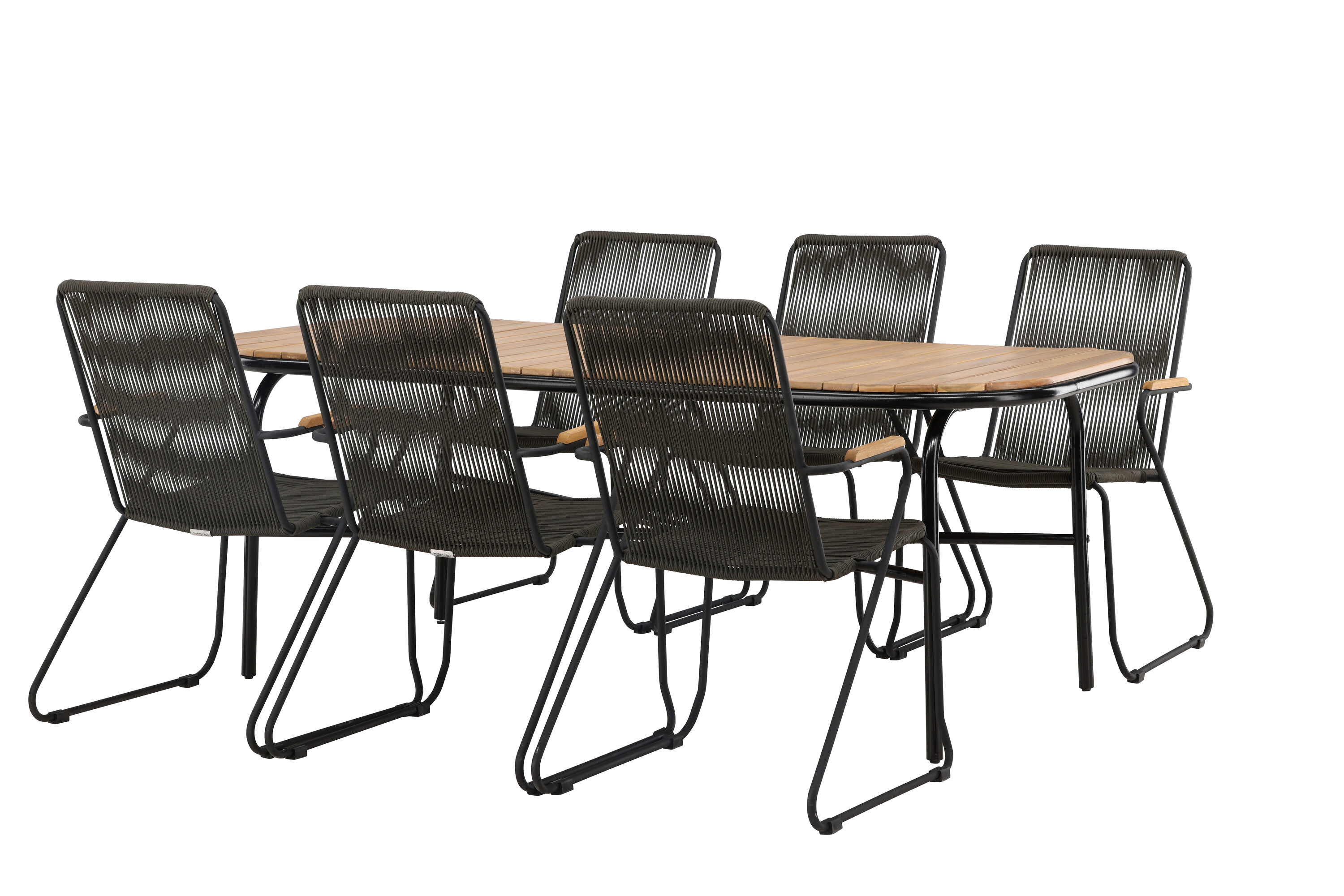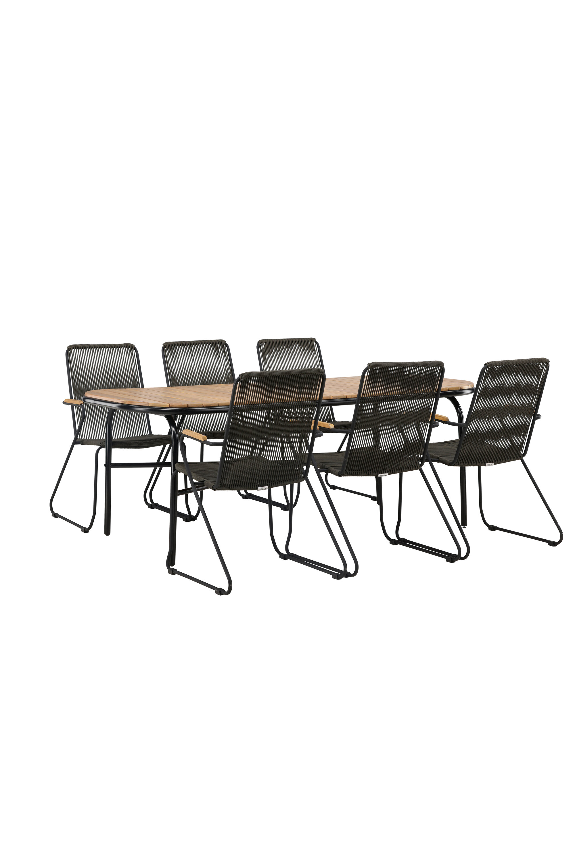 Stiilne, nutikas ja vastupidav – kõigi õigete funktsioonidega söögigrupp! Populaarsel Holmbecki söögilaual on elegantse akaatsiapuust ristkülikukujuline ümarate servadega lauaplaat ja minimalistlik mustast terasest põhi. Siin maitsekas kombinatsioonis Bois sarja hallide söögitoolidega. Toolil on mugav disain tiikpuust käetugede, musta terasraami ja tumehalli nööriistmega. Istuge mugavalt ja kutsuge lähedased õue maitsvatele einetele! Laua mõõdud: 200x90x75cm.