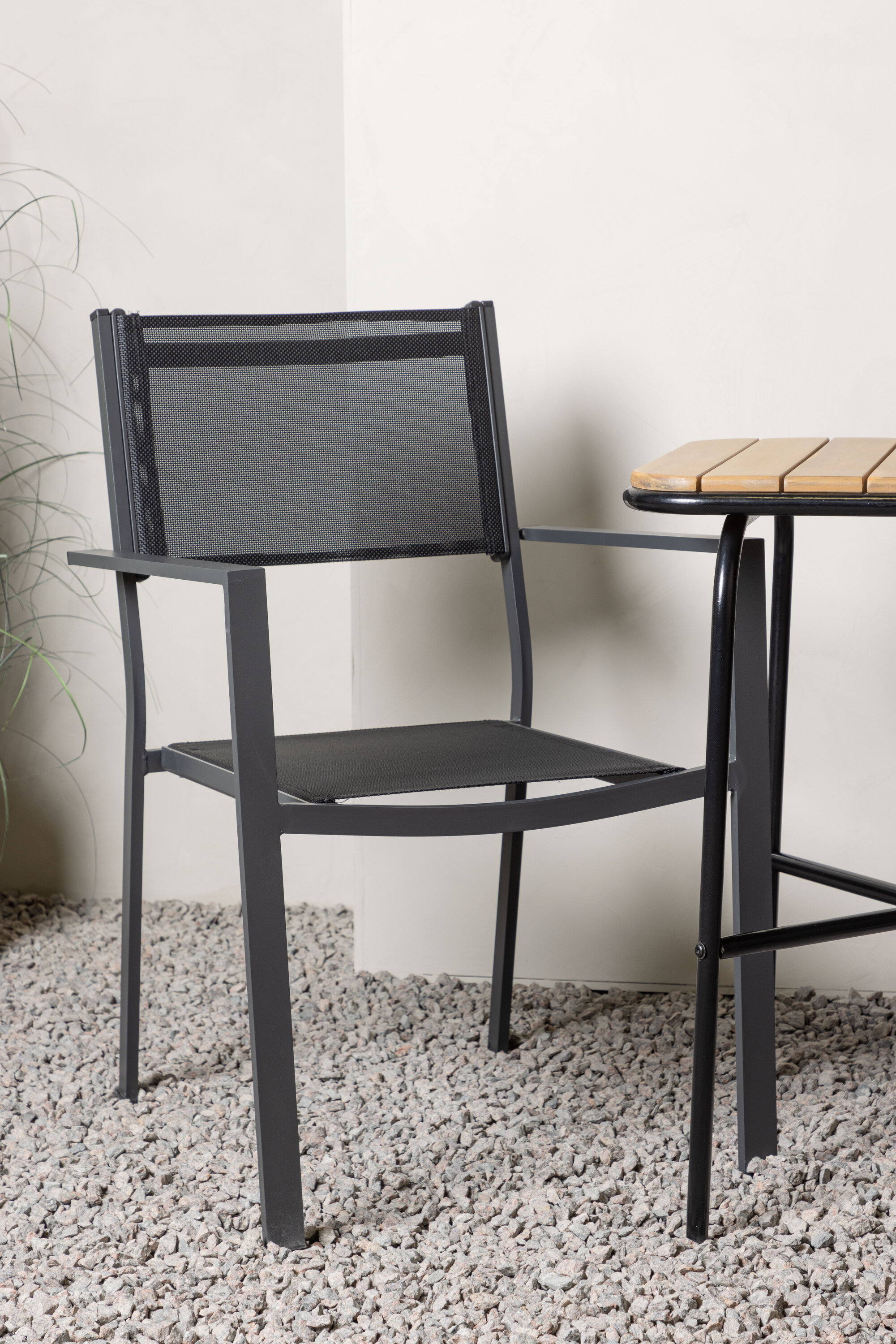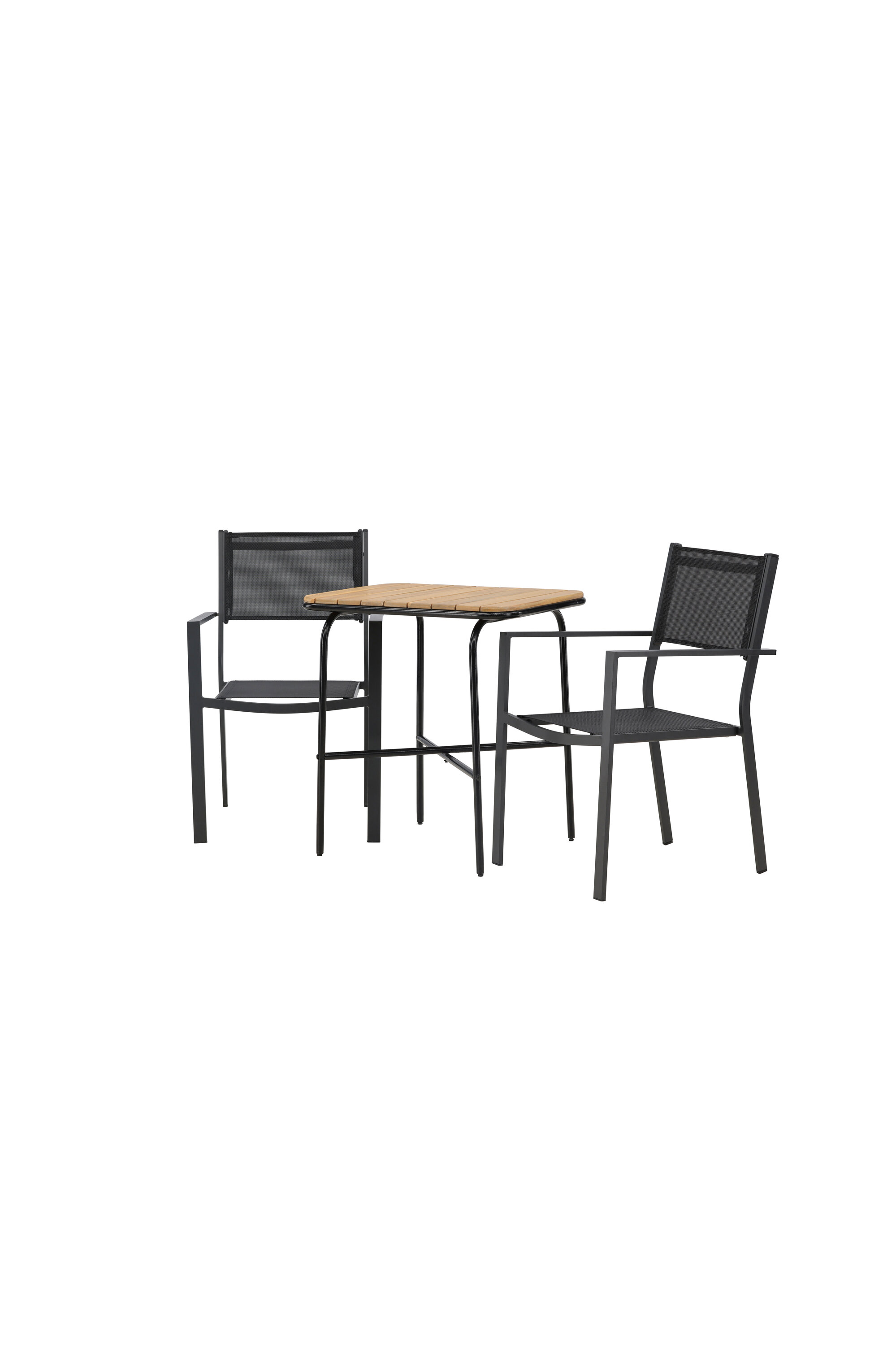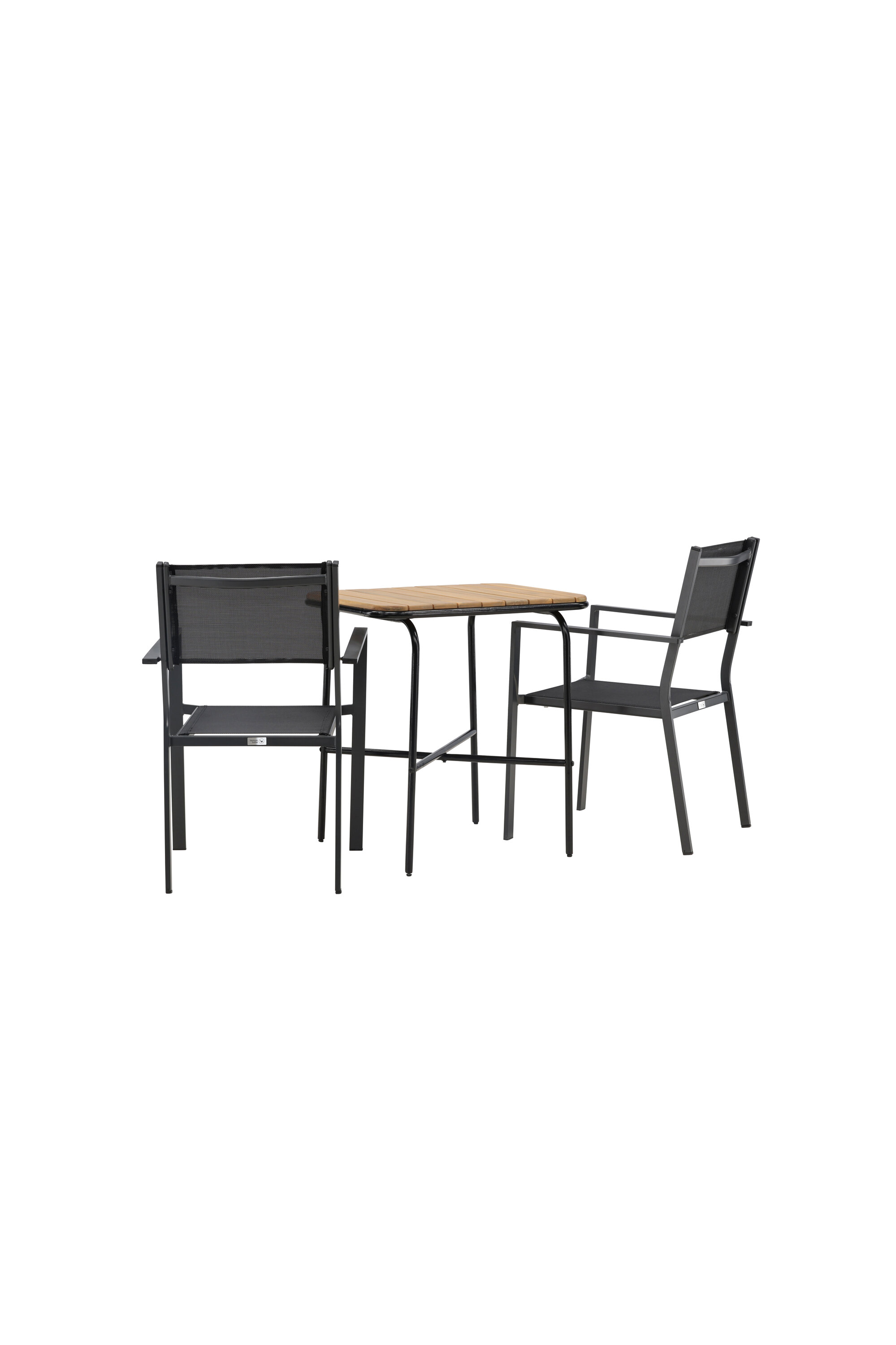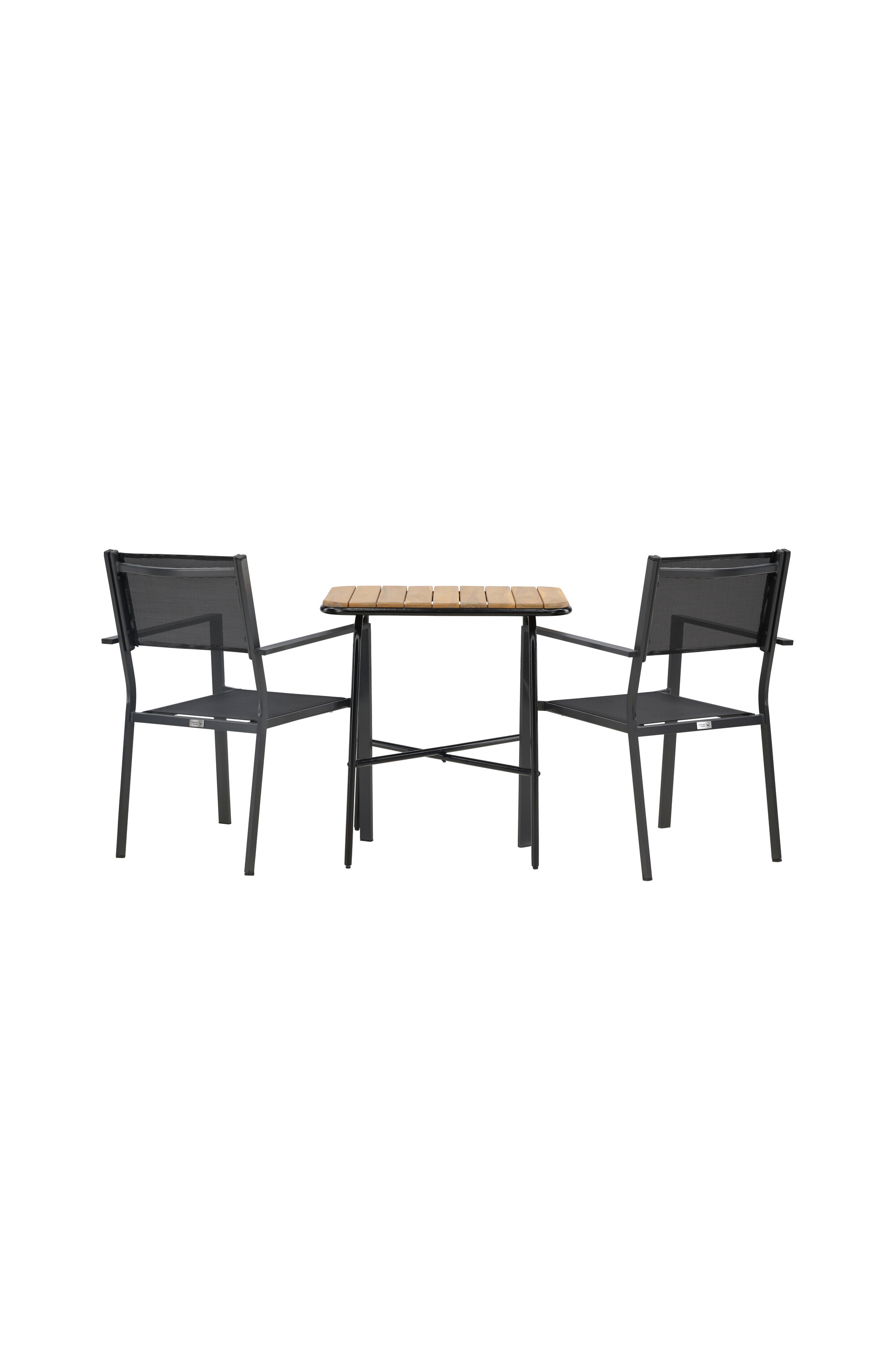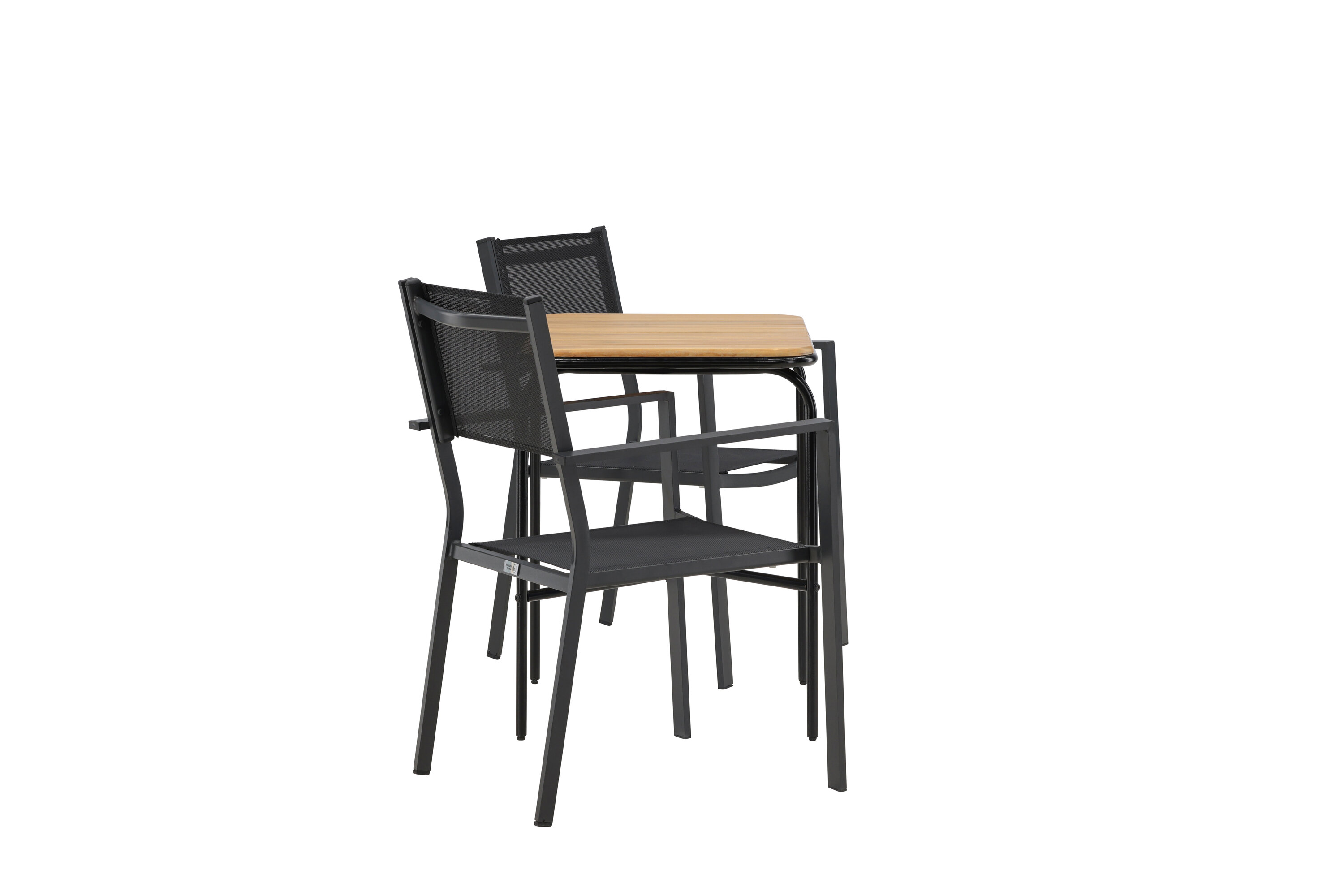 Pilkupüüdev kohvikuseltskond selle suve kohvipausideks! Meie stiilsel kohvikulaual Holmbeck on moodne ribiline akaatsiast lauaplaat ja minimalistlik mustast terasest põhi. Siin on stiilne kombinatsioon 2 musta Copacabana söögitooliga. Toolil on sirge põhjamaise disainiga must alumiinium ja iste tekstiilist. See grupp sobib suurepäraselt väikesele rõdule või terrassi päikesepoolsesse nurka! Laua mõõdud: 74x70x55cm.