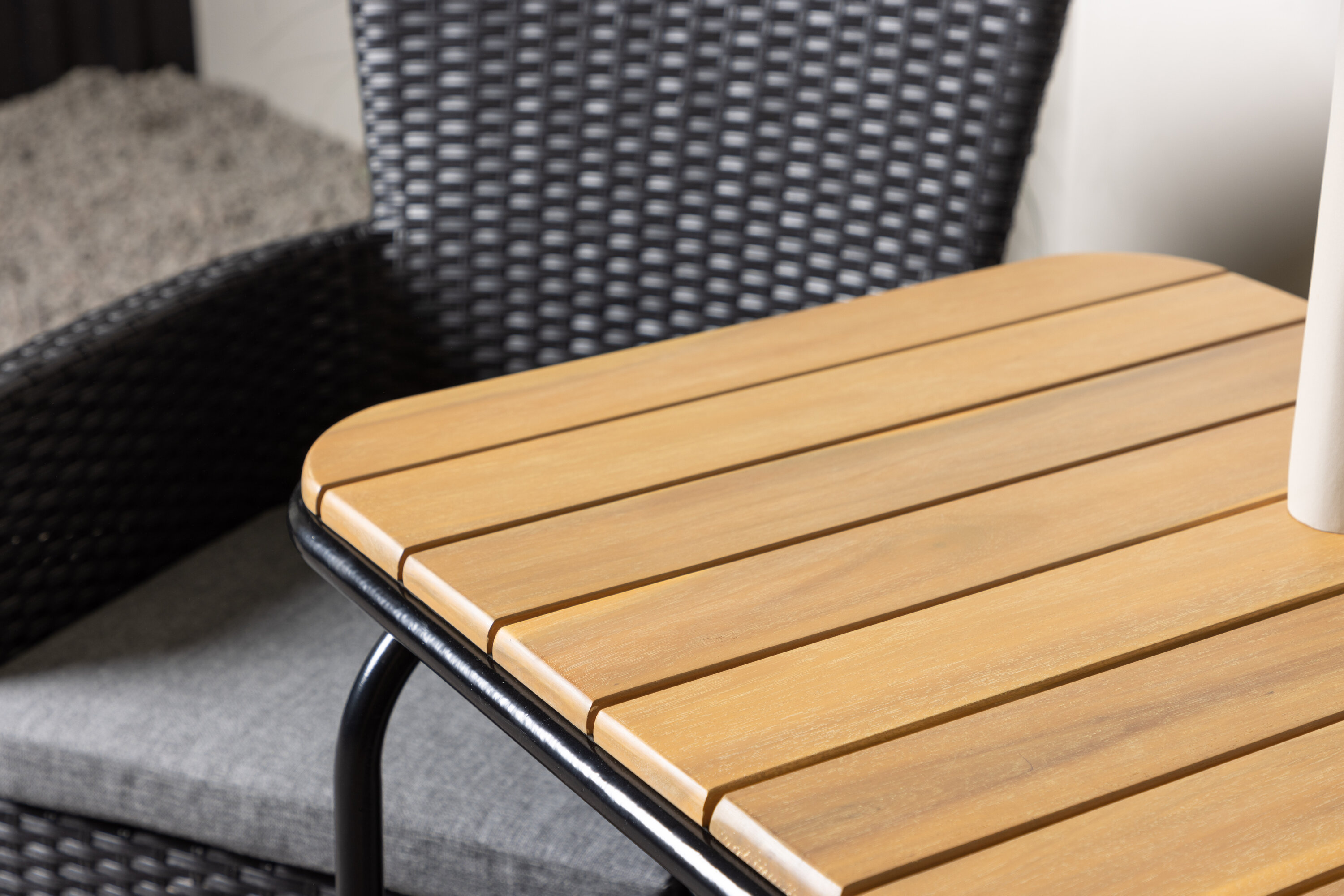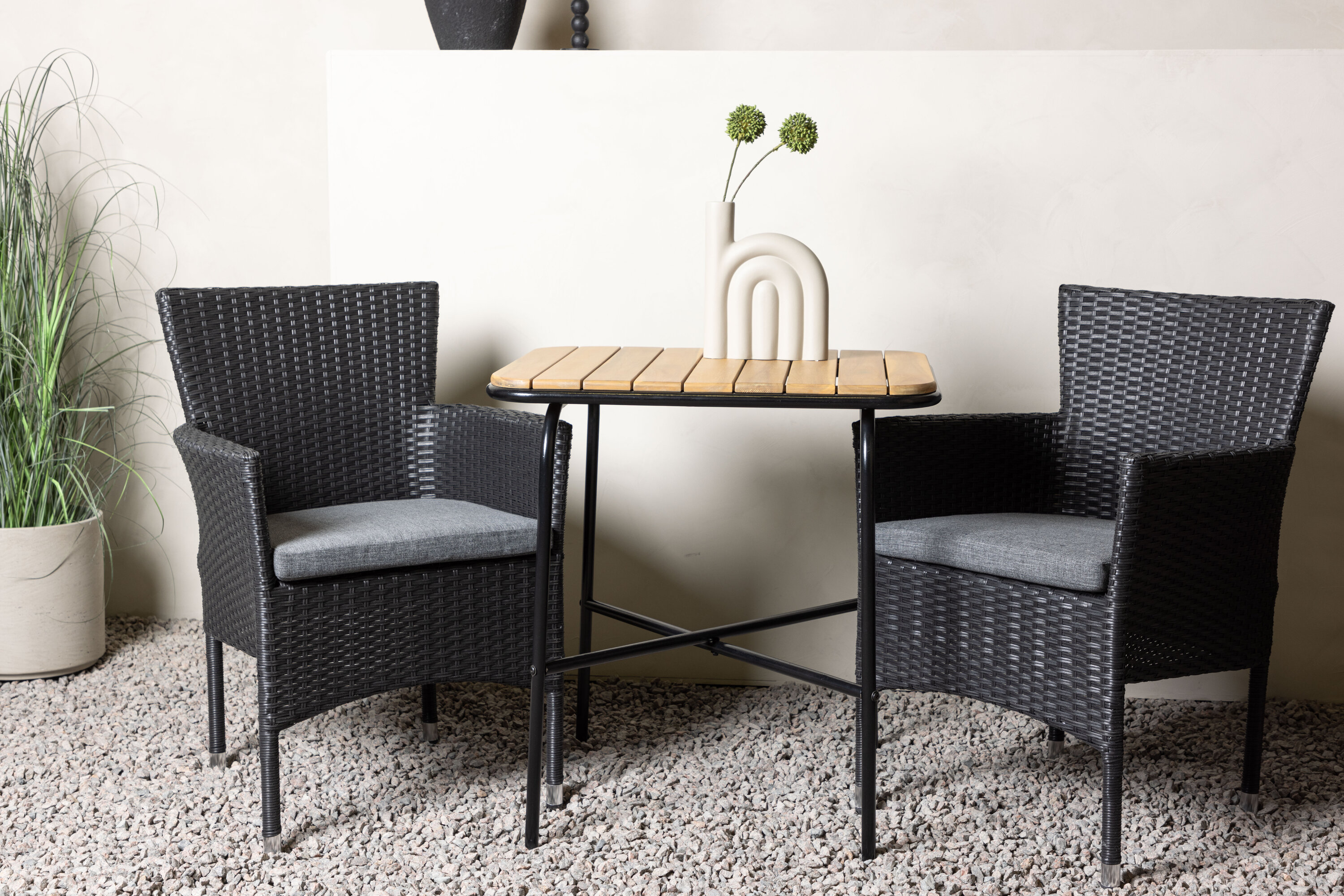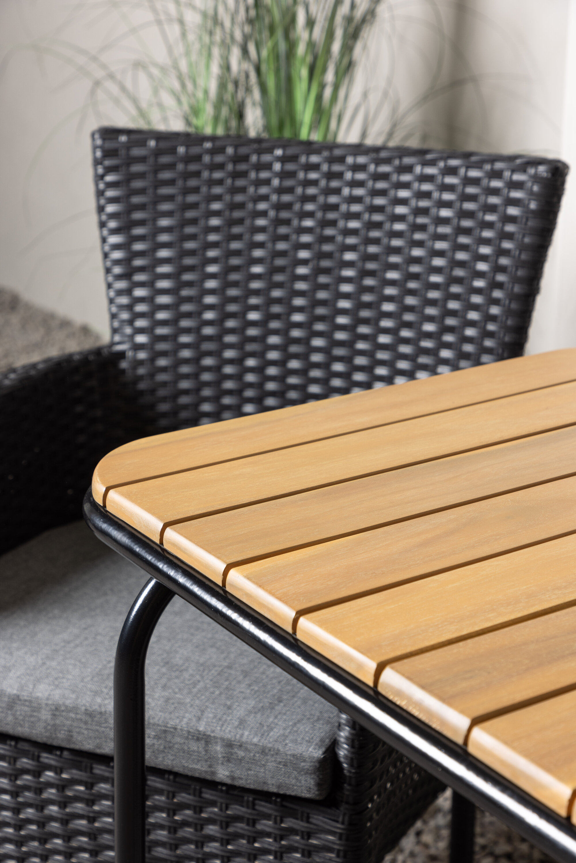 Mugav ja klassikaline disain ei saa kunagi valesti minna! Meie stiilsel kohvikulaual Holmbeck on moodne ribiline akaatsiast lauaplaat ja minimalistlik mustast terasest põhi. Siin koos meie fantastiliste Malina seeria söögitoolidega. Toolil on alumiiniumraam ja see on kaetud põimitud musta kunstrotangiga. Õues pärastlõunaseks kohviks sisse seadmine peaks olema hea tunne! Laua mõõdud: 74x70x55cm.