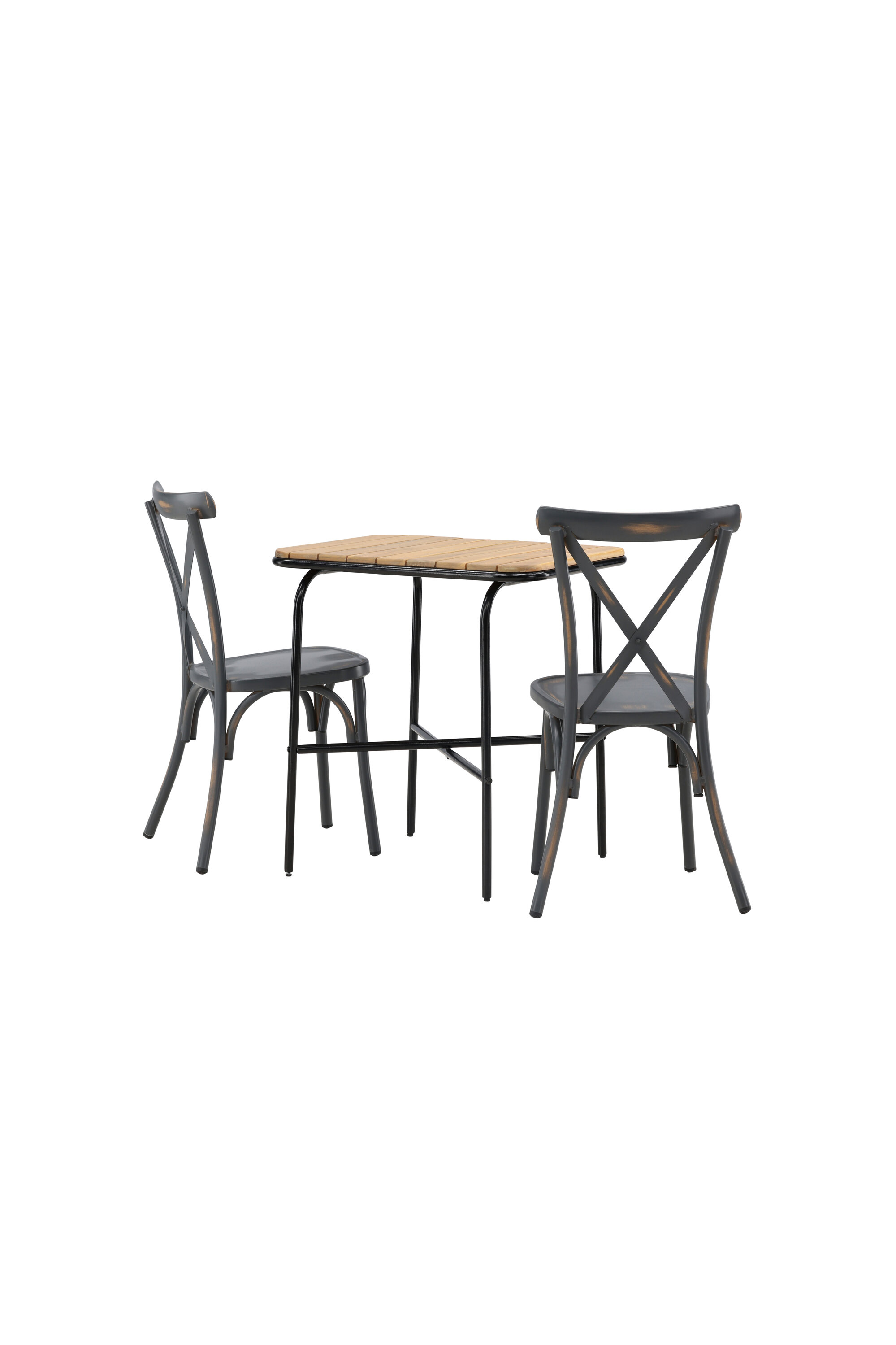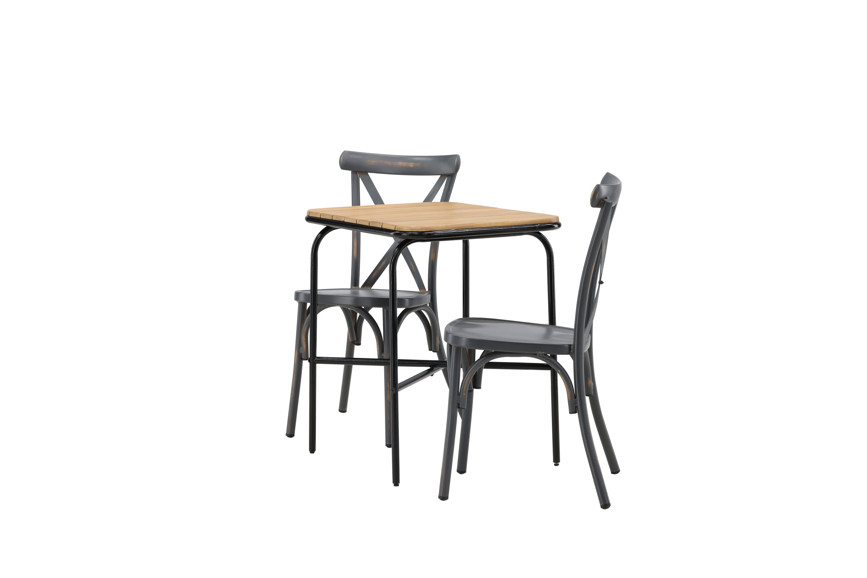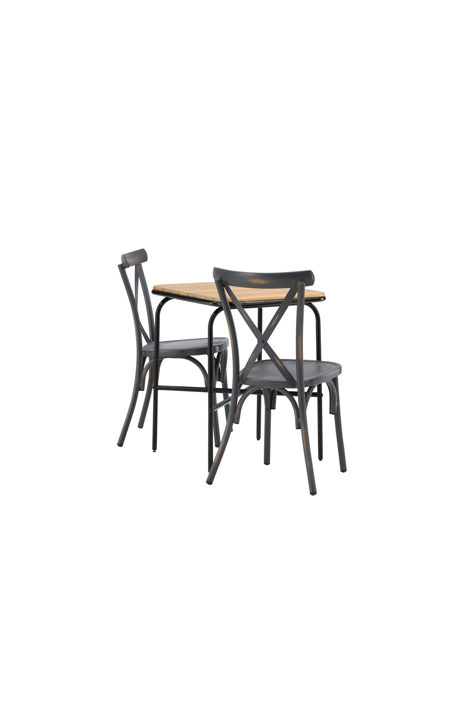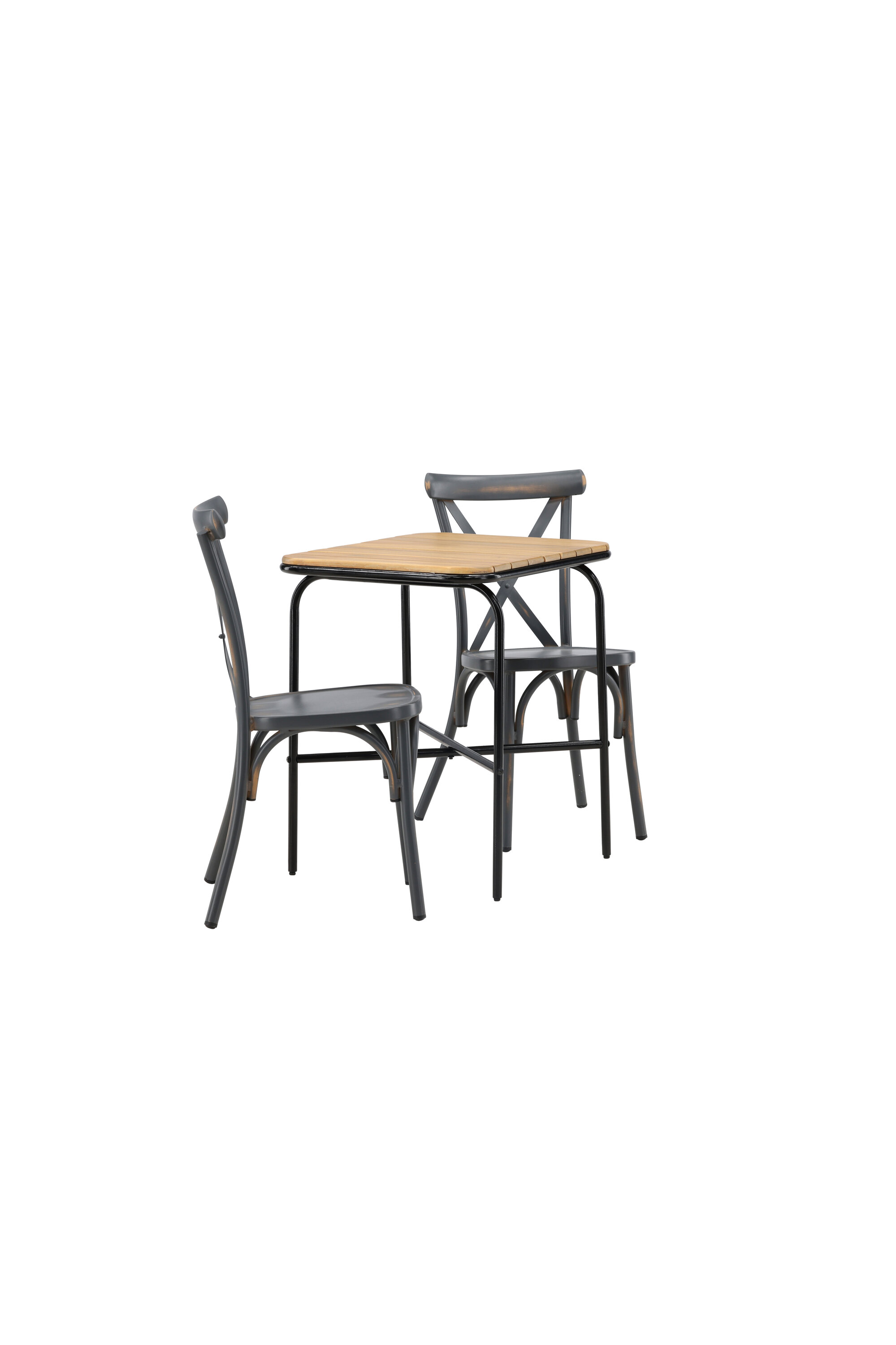 Läbimõeldud kujundusega kohvikugrupp! Meie stiilsel kohvikulaual Holmbeck on moodne ribiline akaatsiast lauaplaat ja minimalistlik mustast terasest põhi. Siin koos 2 musta söögitooli sarjast Tablas. Tool on tööstusliku stiiliga ja valmistatud vastupidavast alumiiniumist tahmmustas värvitoonis. Siin saad nautida vaikseid hetki ja mõnusaid kohvipause õues! Laua mõõdud: 74x70x55cm.