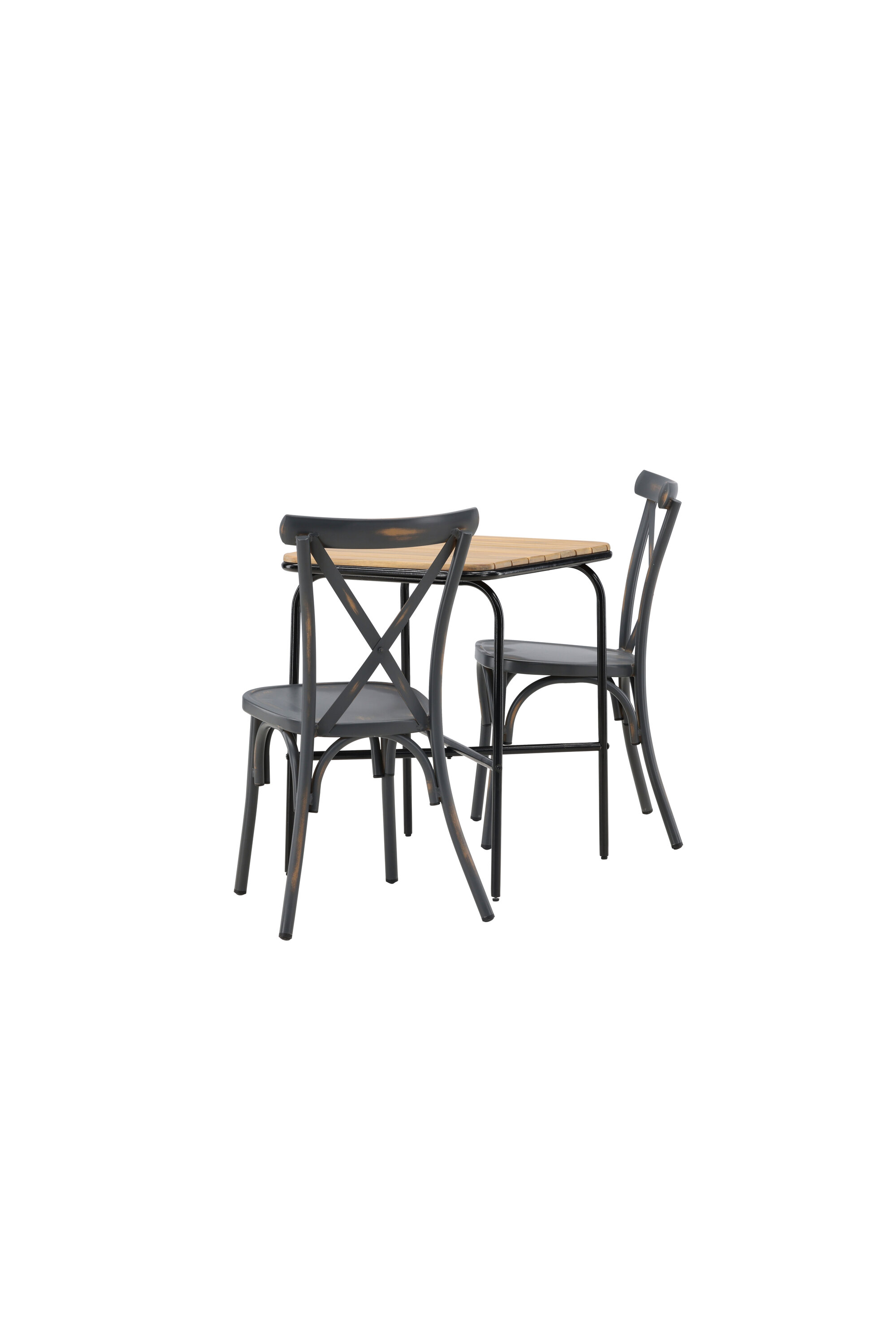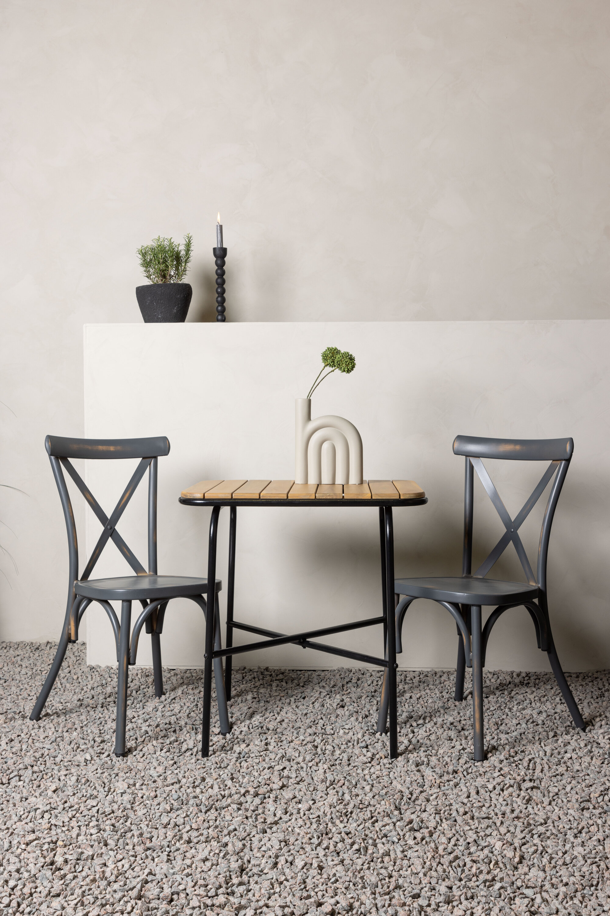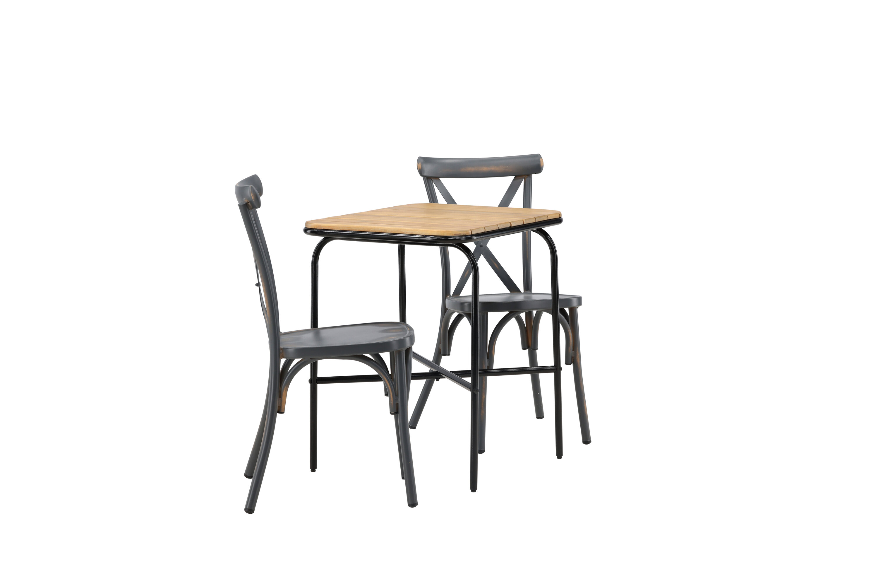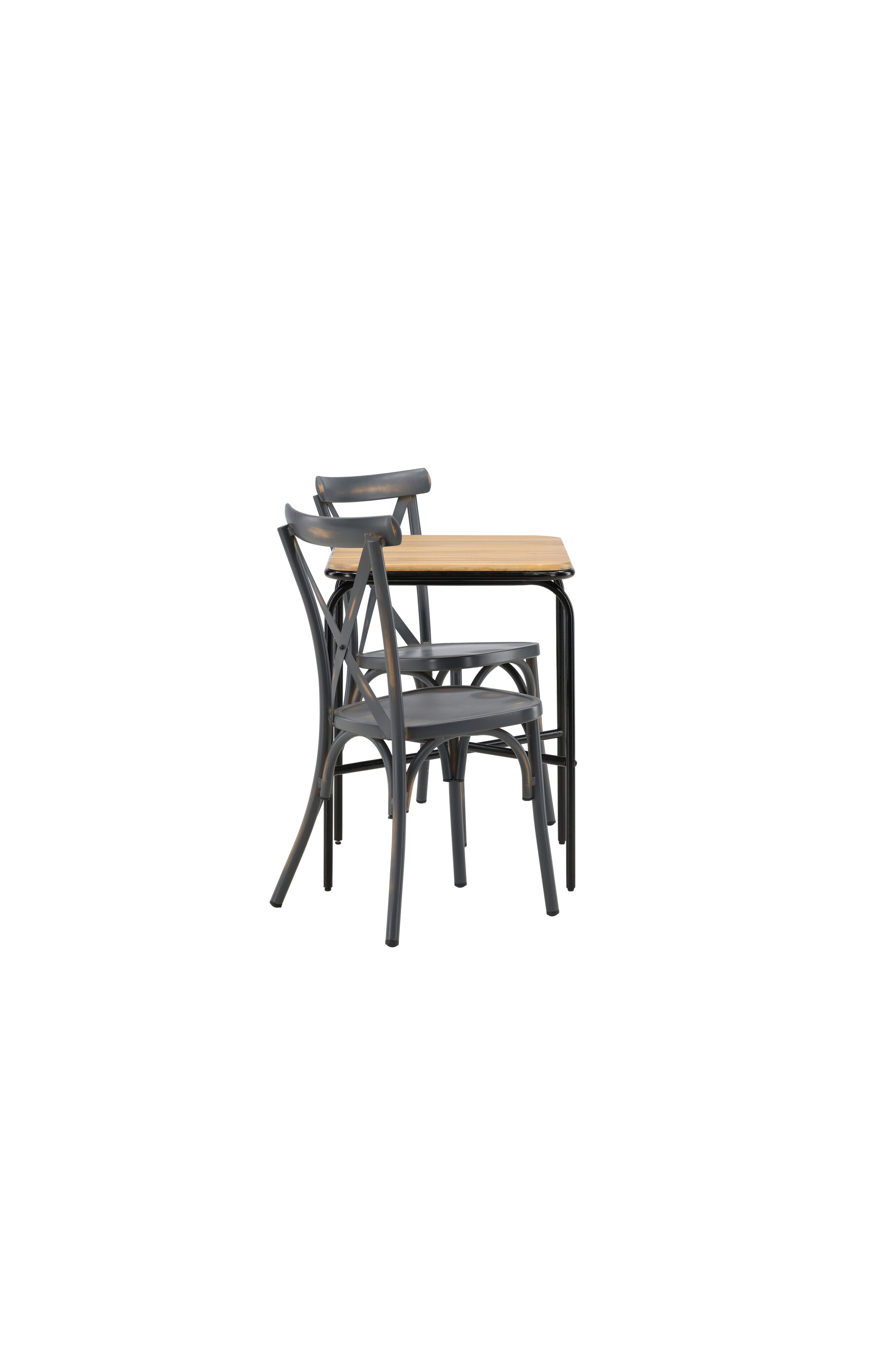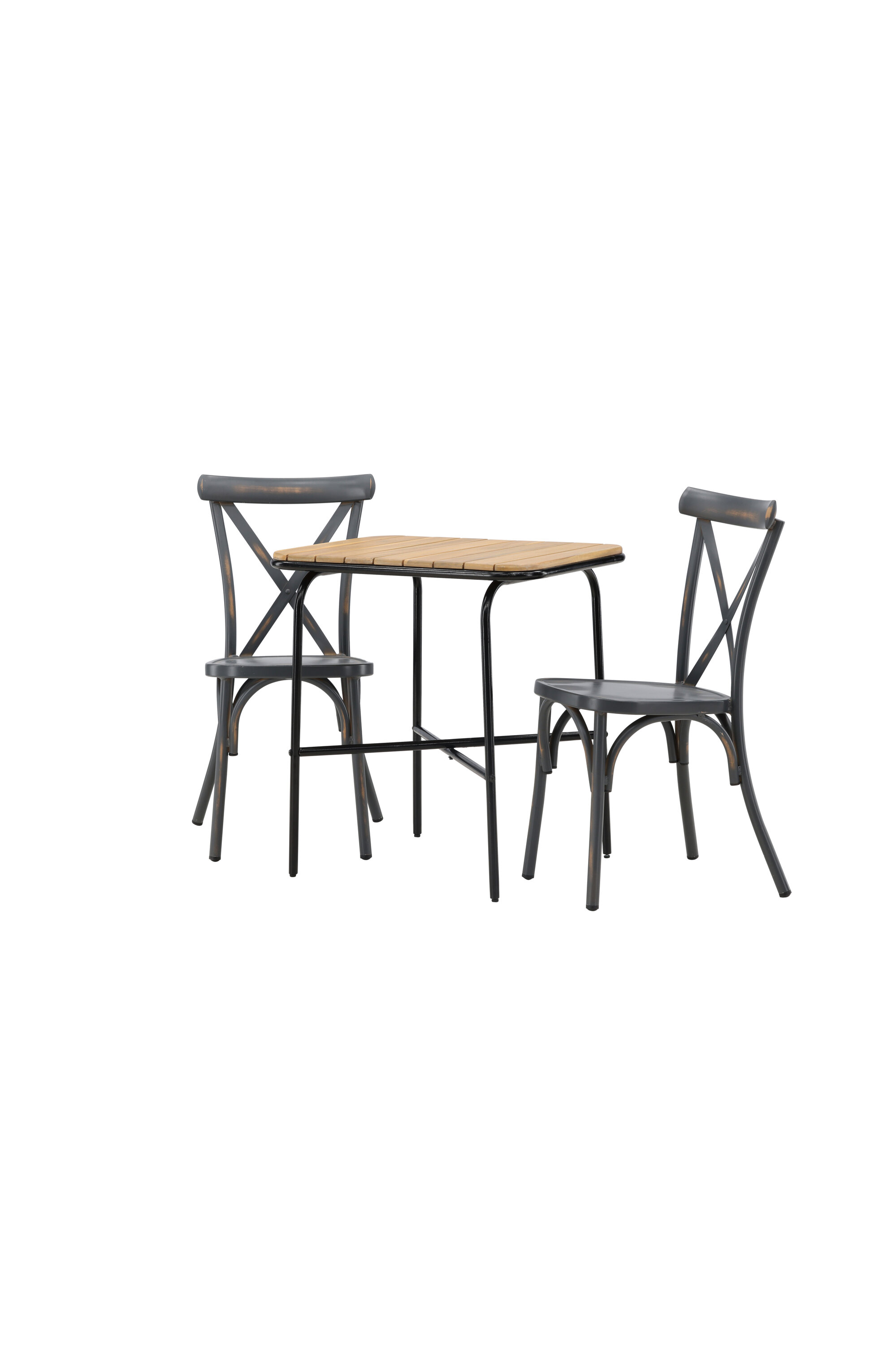 Läbimõeldud kujundusega kohvikugrupp! Meie stiilsel kohvikulaual Holmbeck on moodne ribiline akaatsiast lauaplaat ja minimalistlik mustast terasest põhi. Siin koos 2 musta söögitooli sarjast Tablas. Tool on tööstusliku stiiliga ja valmistatud vastupidavast alumiiniumist tahmmustas värvitoonis. Siin saad nautida vaikseid hetki ja mõnusaid kohvipause õues! Laua mõõdud: 74x70x55cm.