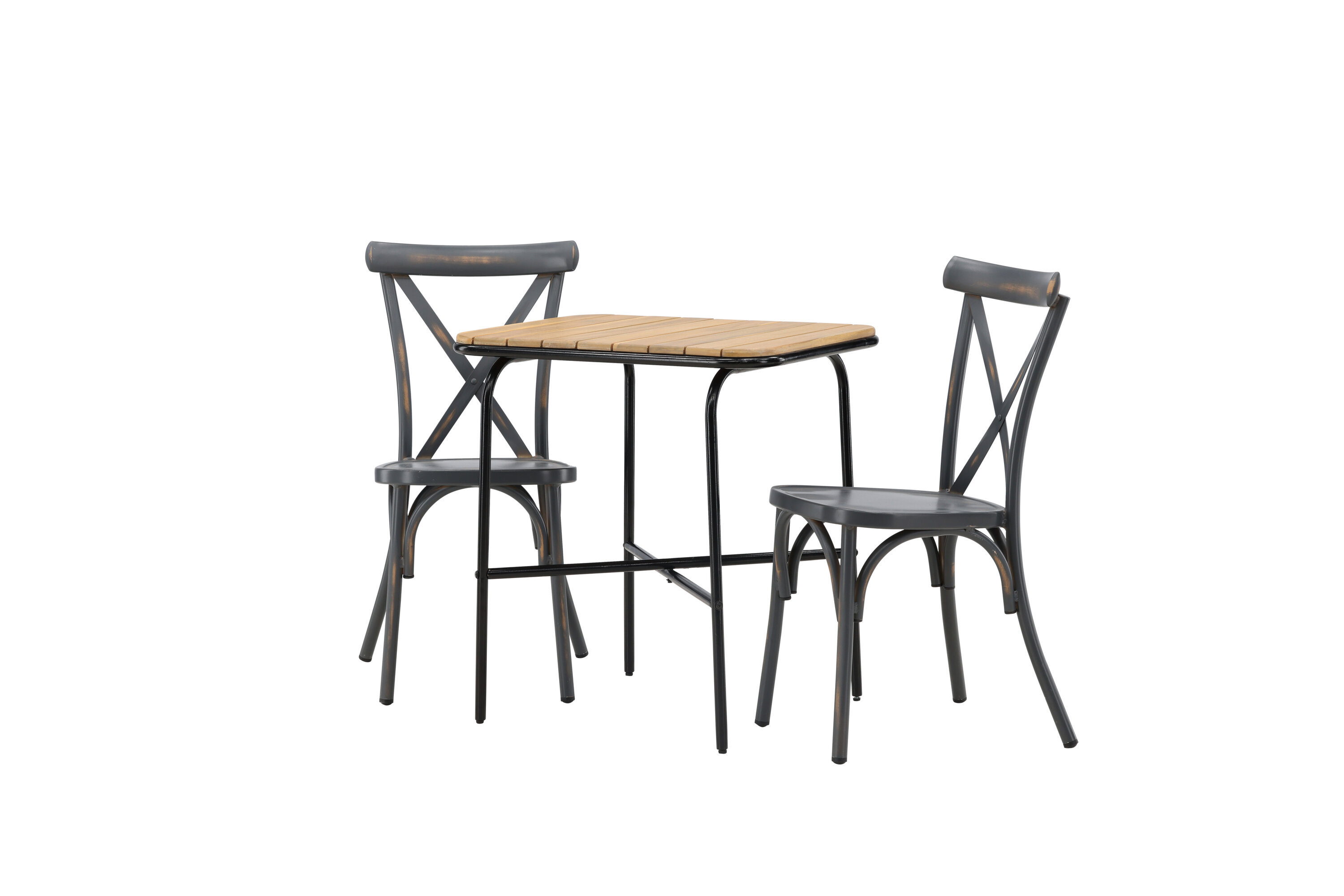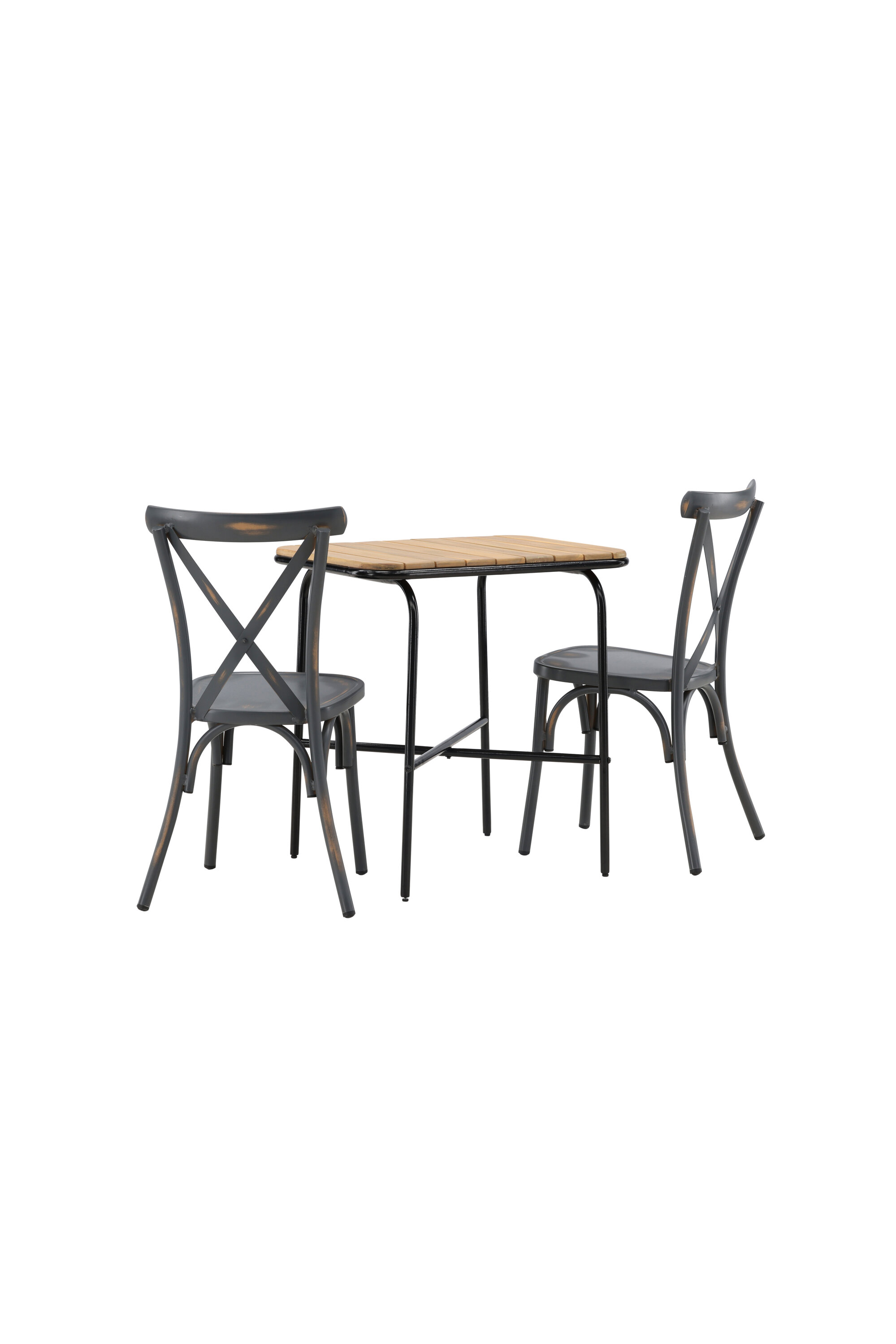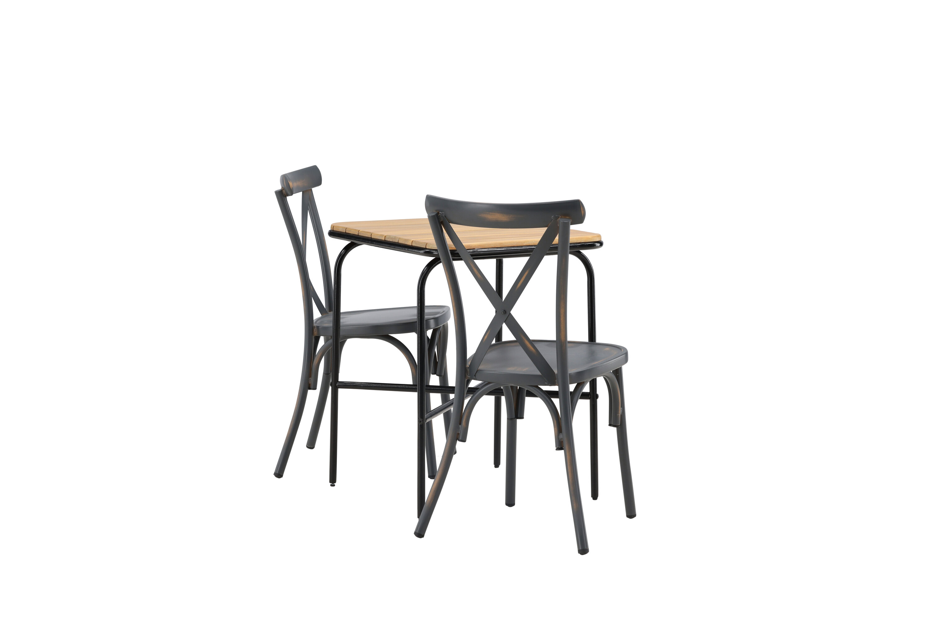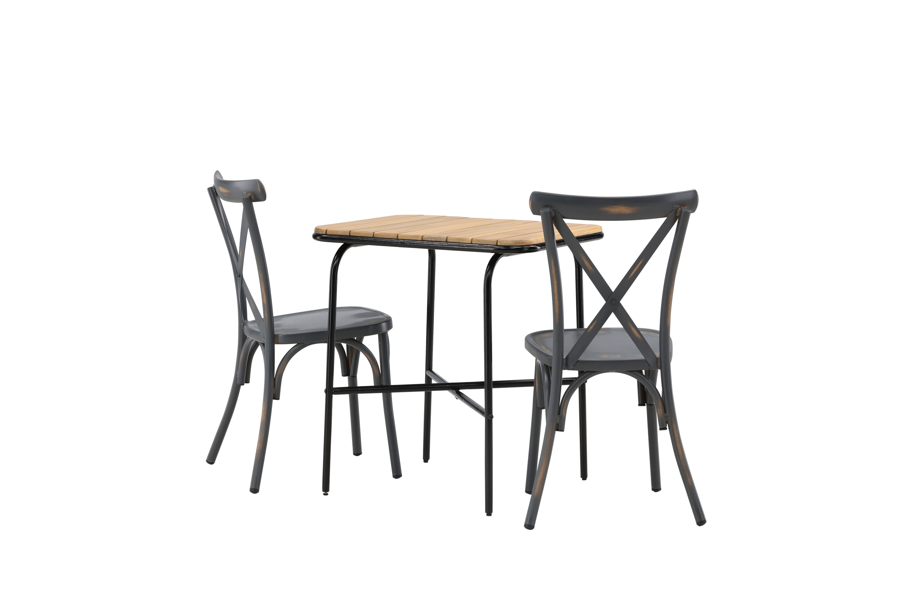 Läbimõeldud kujundusega kohvikugrupp! Meie stiilsel kohvikulaual Holmbeck on moodne ribiline akaatsiast lauaplaat ja minimalistlik mustast terasest põhi. Siin koos 2 musta söögitooli sarjast Tablas. Tool on tööstusliku stiiliga ja valmistatud vastupidavast alumiiniumist tahmmustas värvitoonis. Siin saad nautida vaikseid hetki ja mõnusaid kohvipause õues! Laua mõõdud: 74x70x55cm.