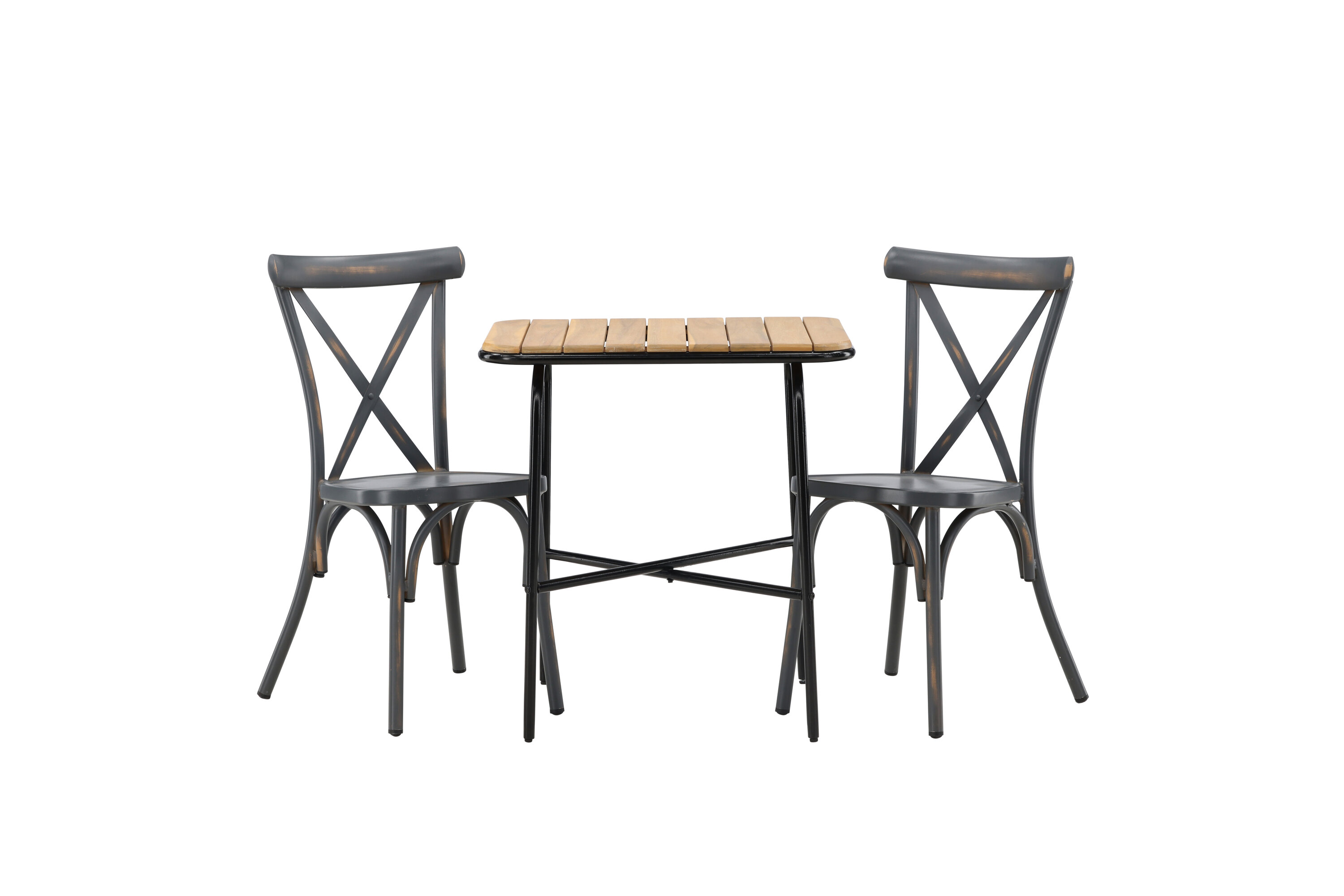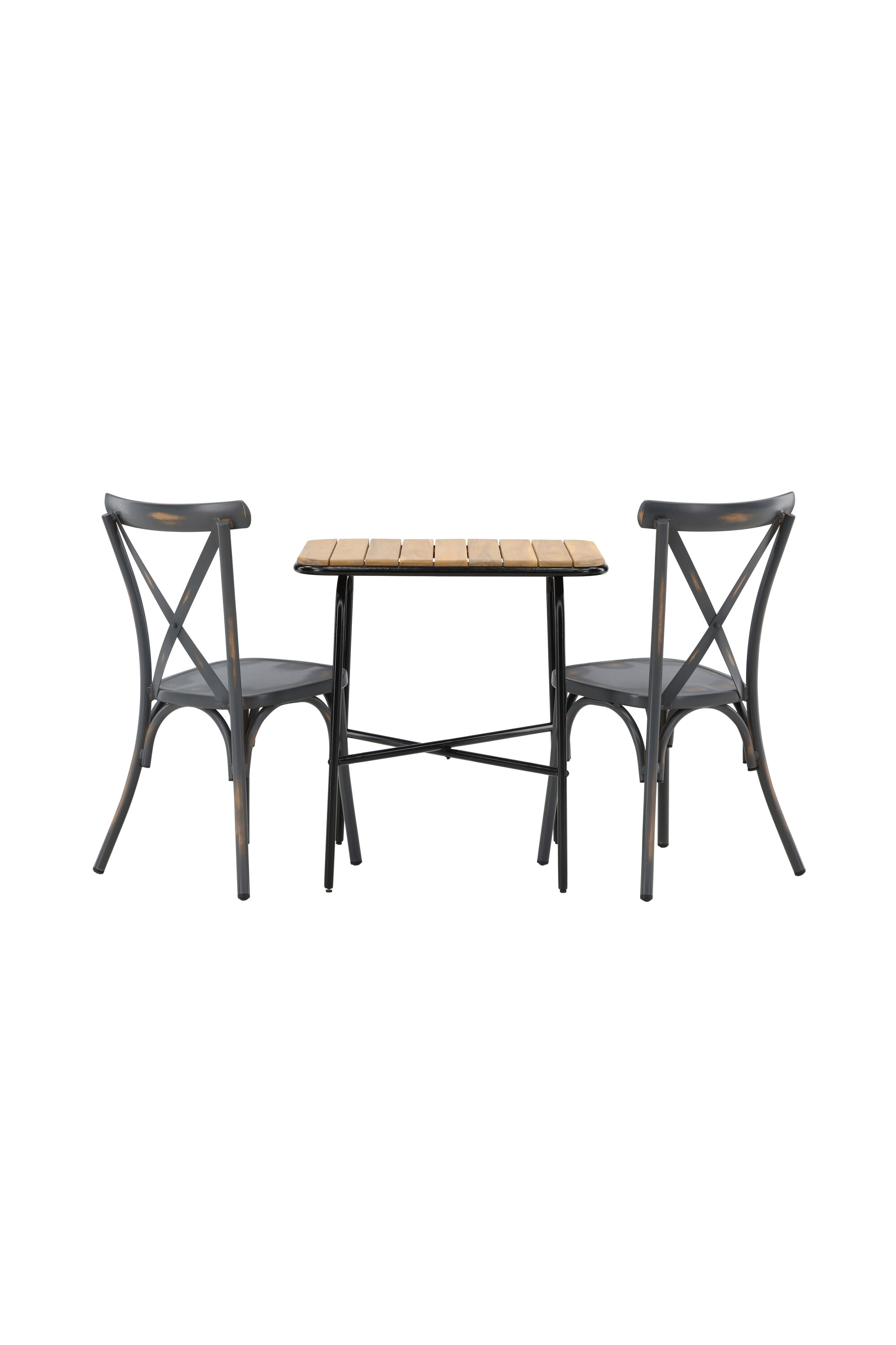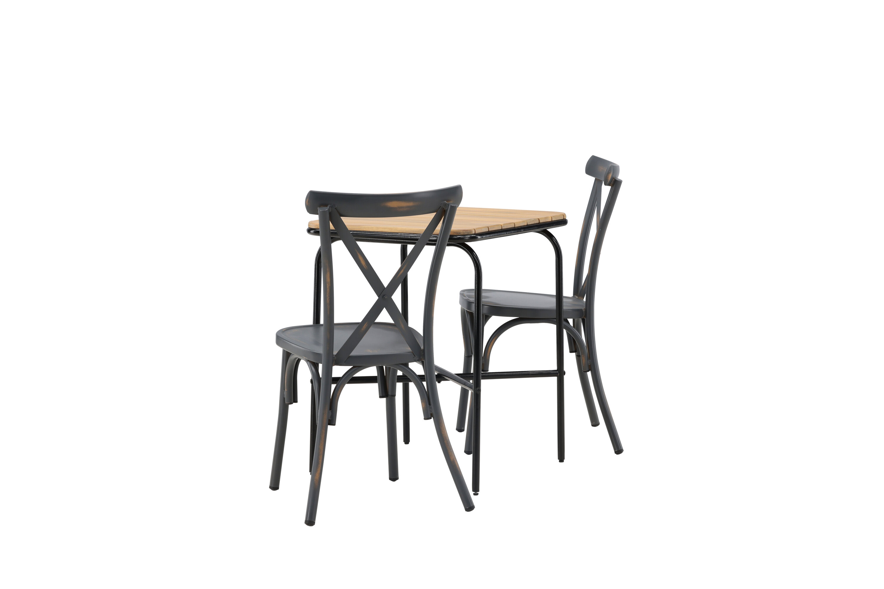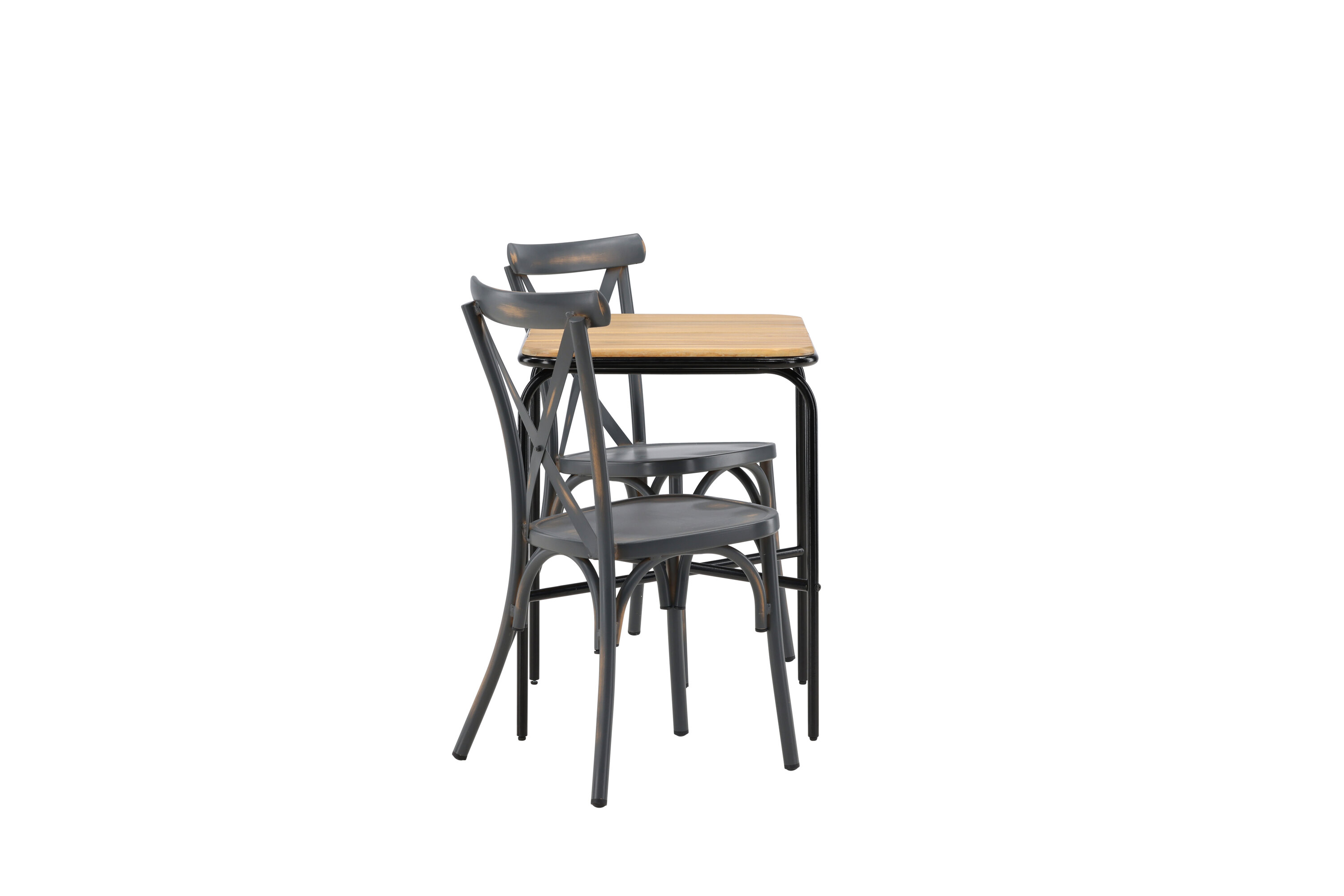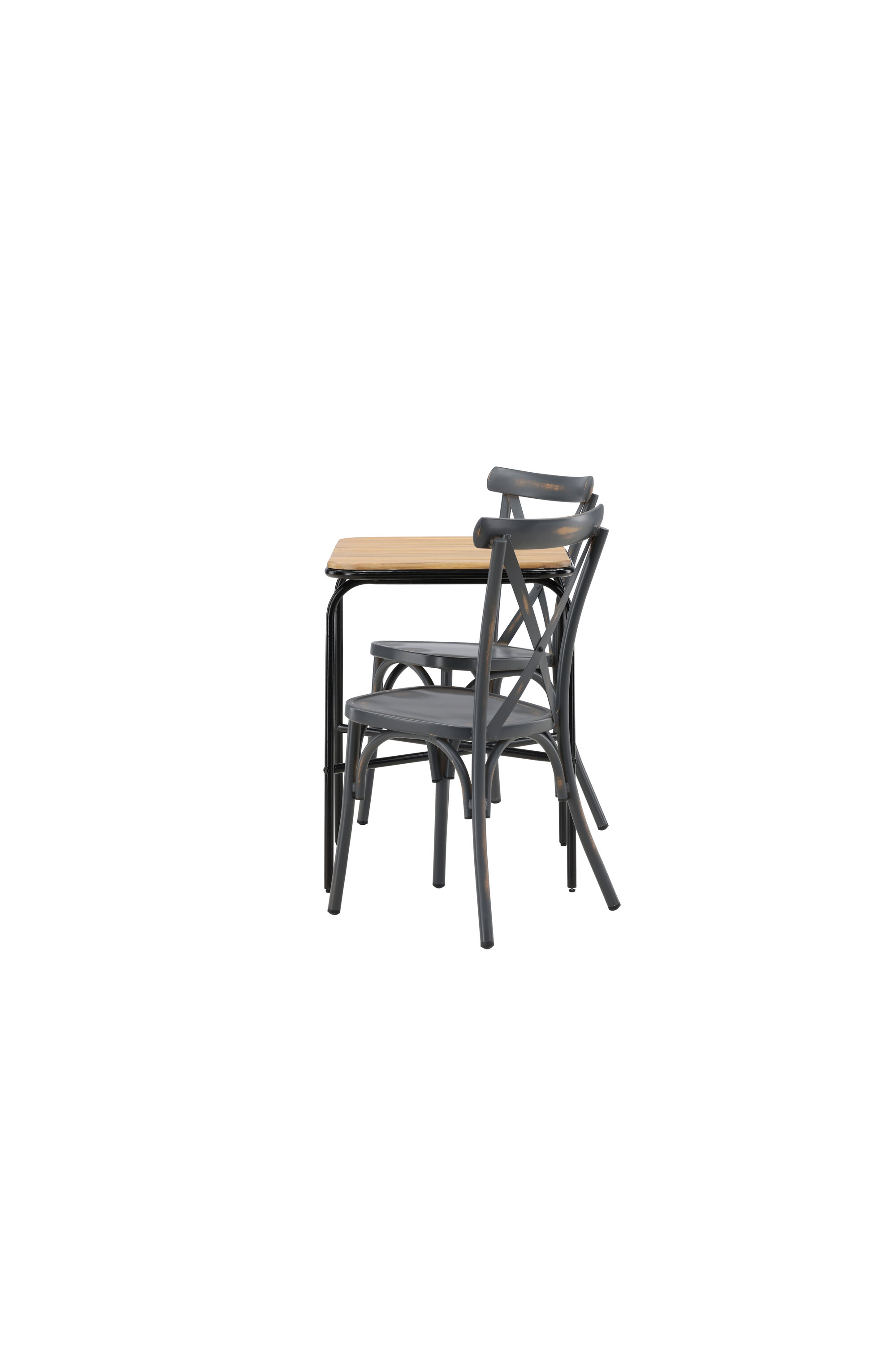 Läbimõeldud kujundusega kohvikugrupp! Meie stiilsel kohvikulaual Holmbeck on moodne ribiline akaatsiast lauaplaat ja minimalistlik mustast terasest põhi. Siin koos 2 musta söögitooli sarjast Tablas. Tool on tööstusliku stiiliga ja valmistatud vastupidavast alumiiniumist tahmmustas värvitoonis. Siin saad nautida vaikseid hetki ja mõnusaid kohvipause õues! Laua mõõdud: 74x70x55cm.