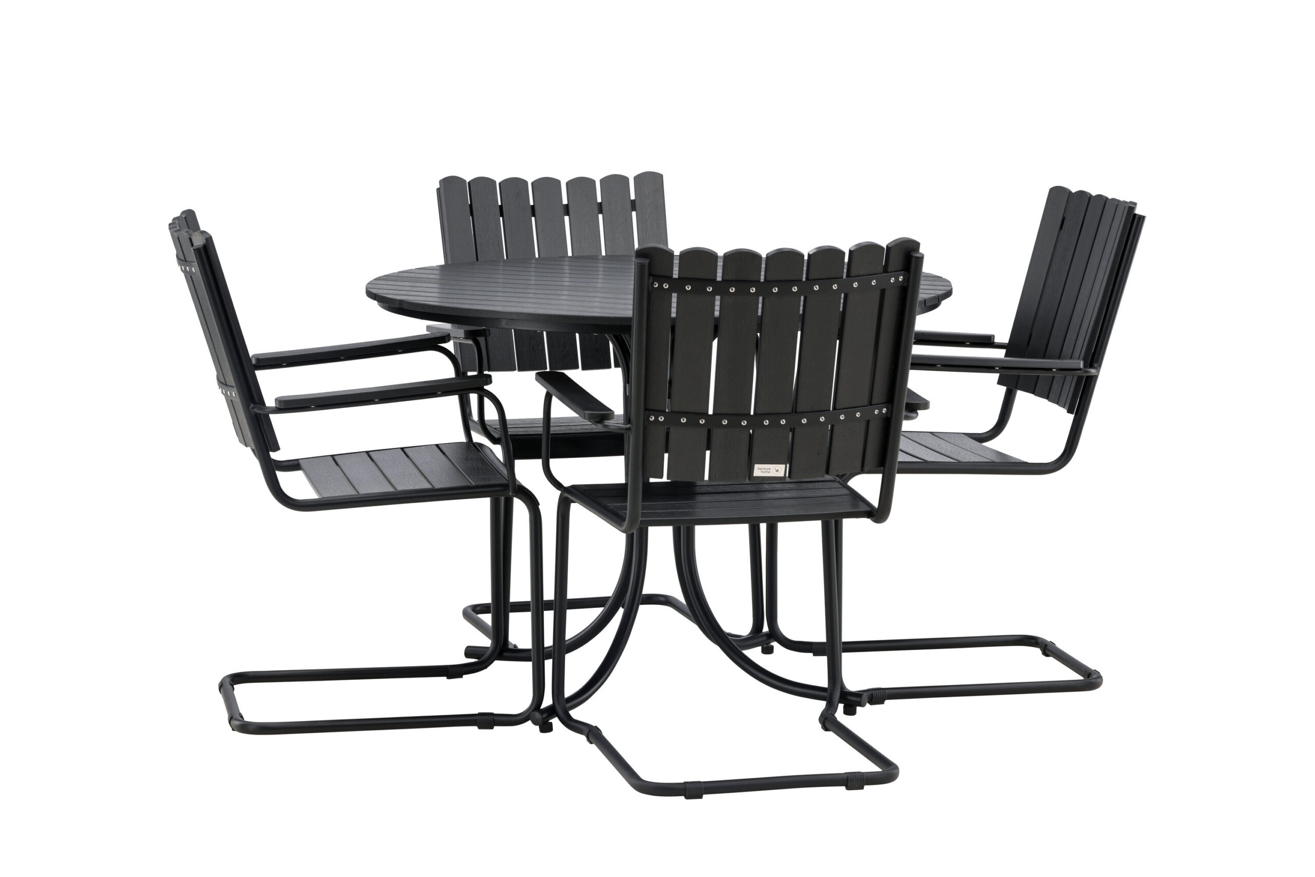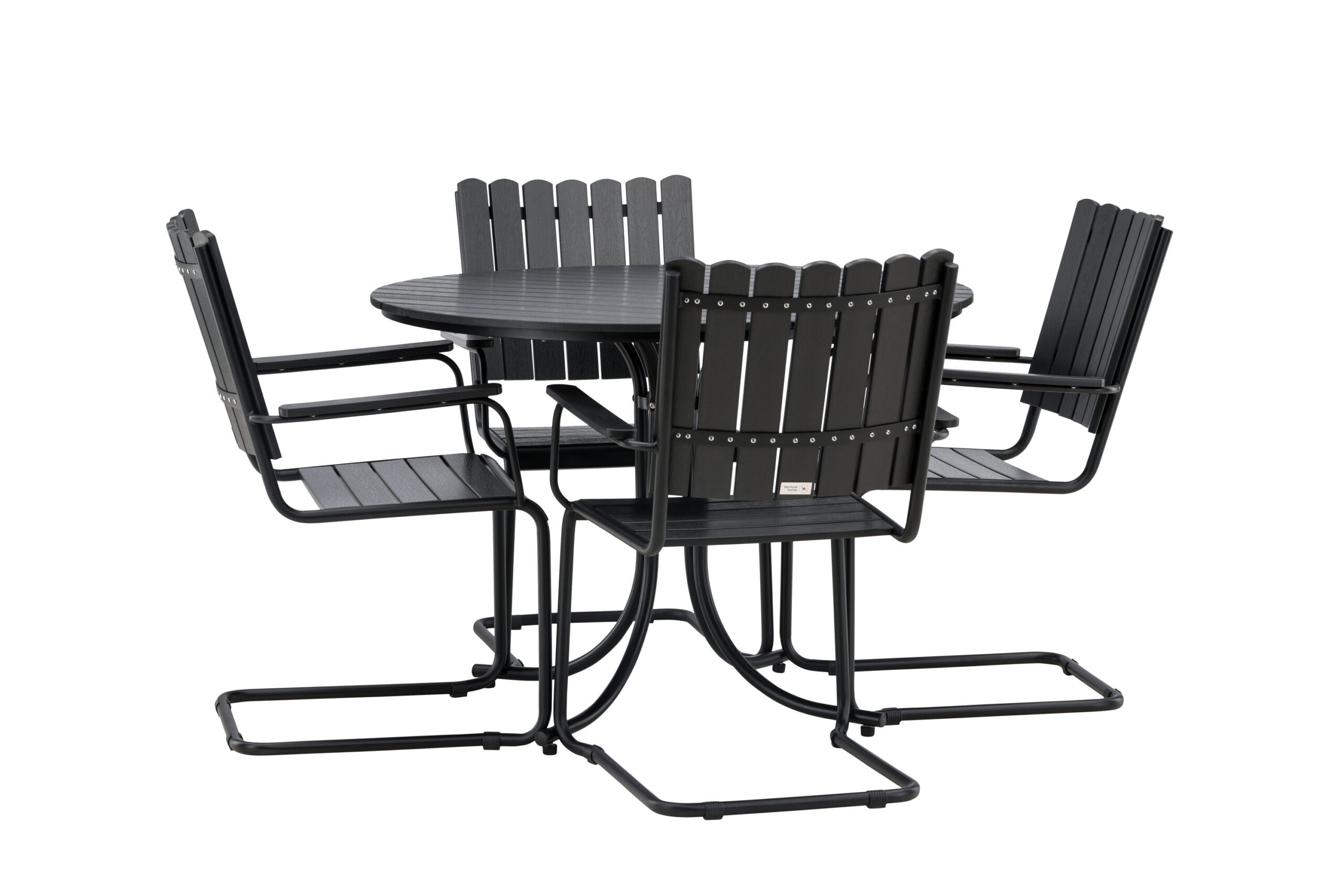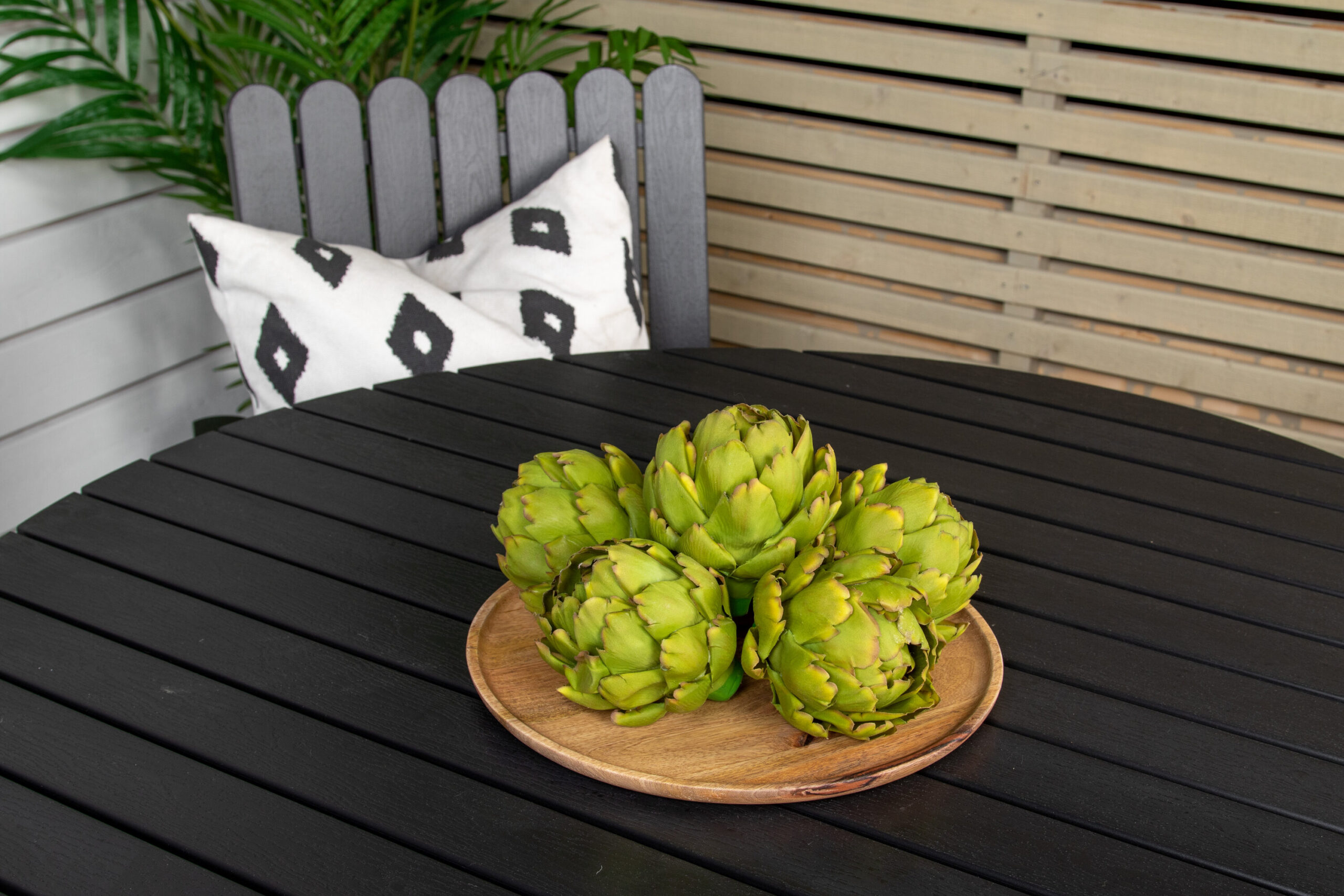 Tugevast mustast terasest valmistatud Holmsundi söögikomplekt, millel on kaunis akaatsiapuust lauaplaat ja toolid, pakub nii modernsuse kui ka loomuliku ilu tunnet. Ilmastikule vastupidavaks ehitatud, saate usaldusväärse söögikomplekti, mida saate aastast aastasse muretult nautida.