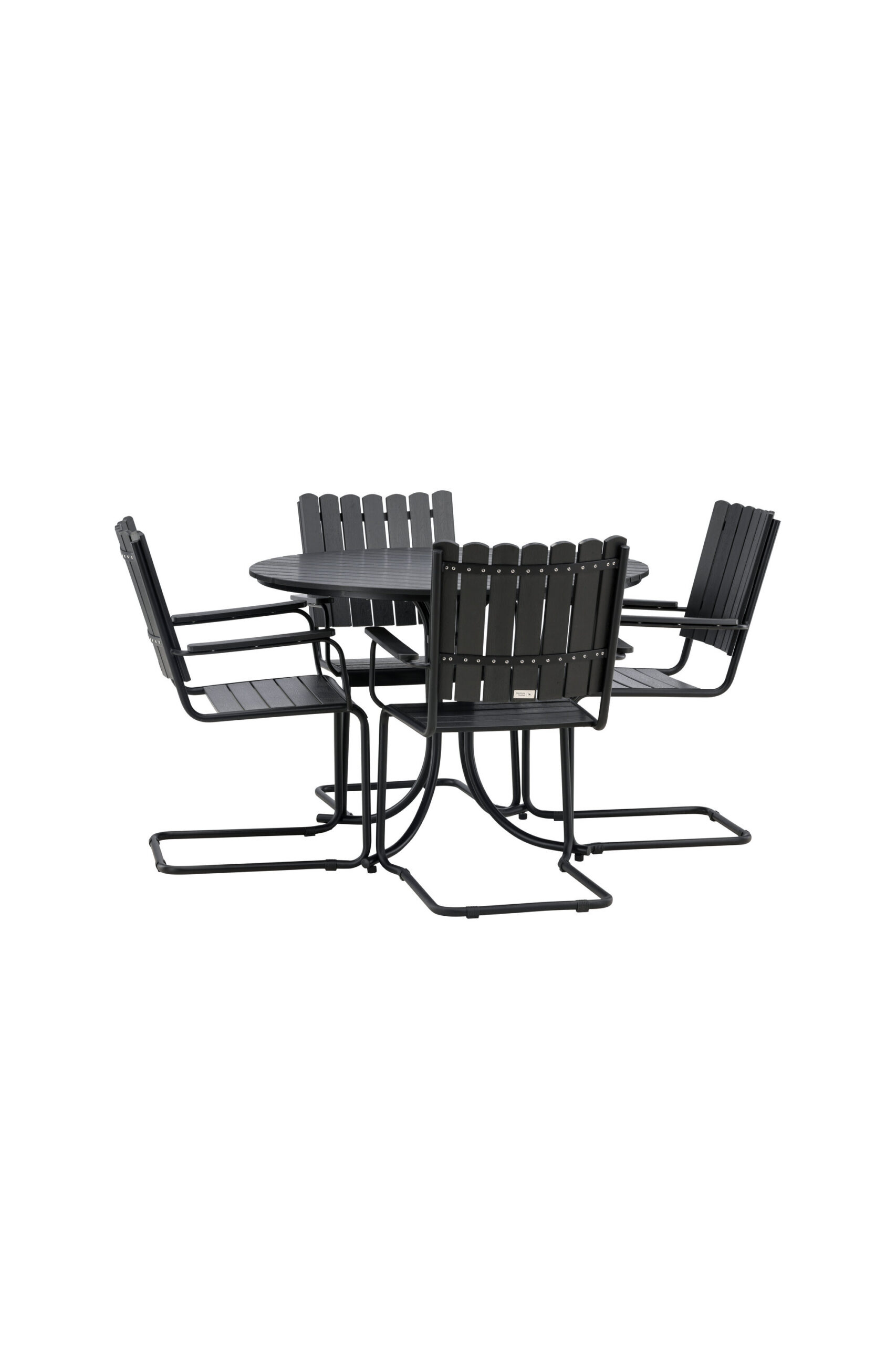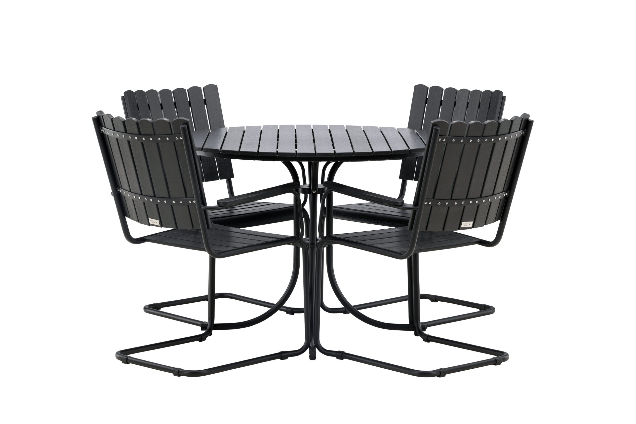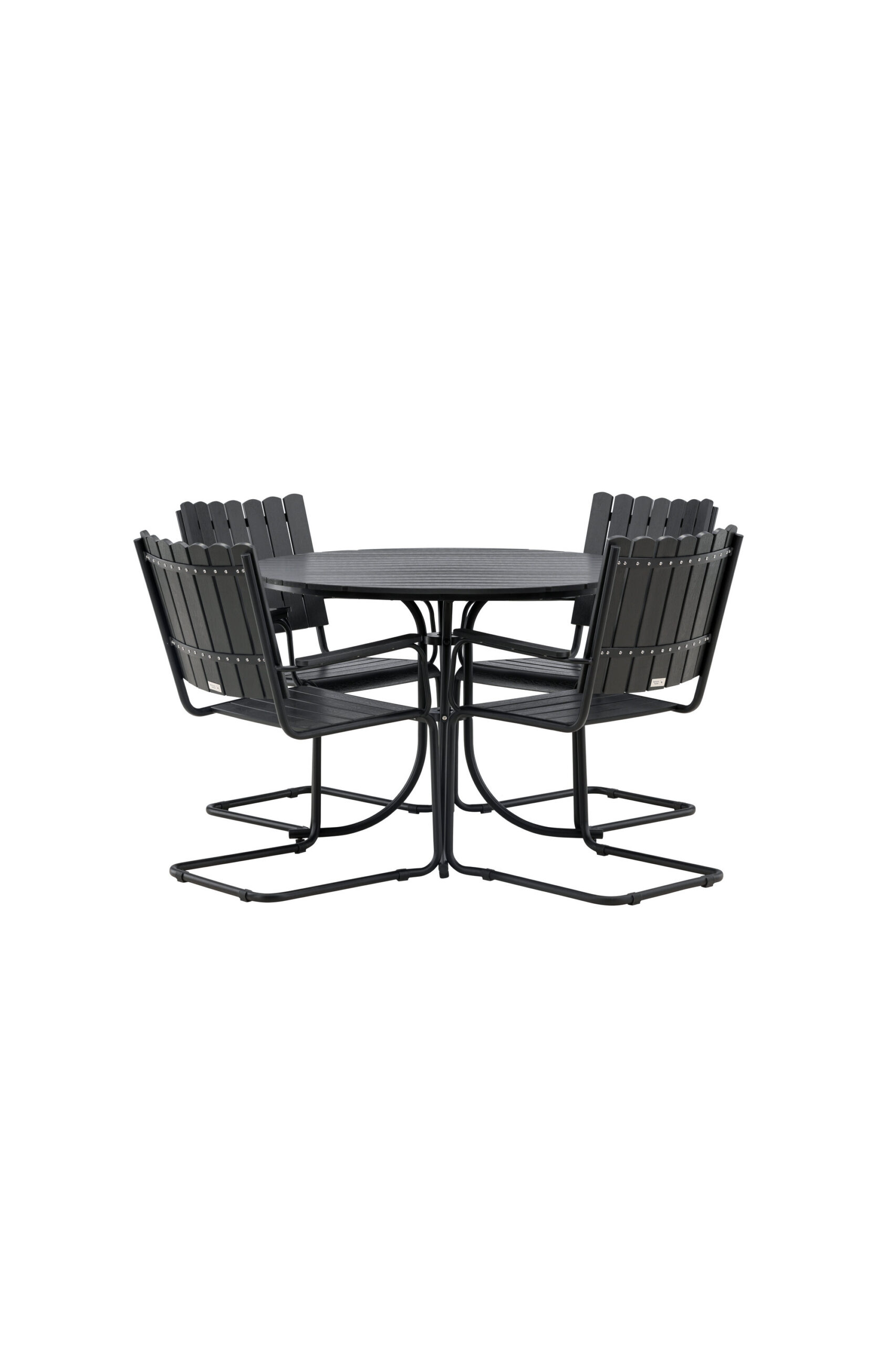 Tugevast mustast terasest valmistatud Holmsundi söögikomplekt, millel on kaunis akaatsiapuust lauaplaat ja toolid, pakub nii modernsuse kui ka loomuliku ilu tunnet. Ilmastikule vastupidavaks ehitatud, saate usaldusväärse söögikomplekti, mida saate aastast aastasse muretult nautida.
