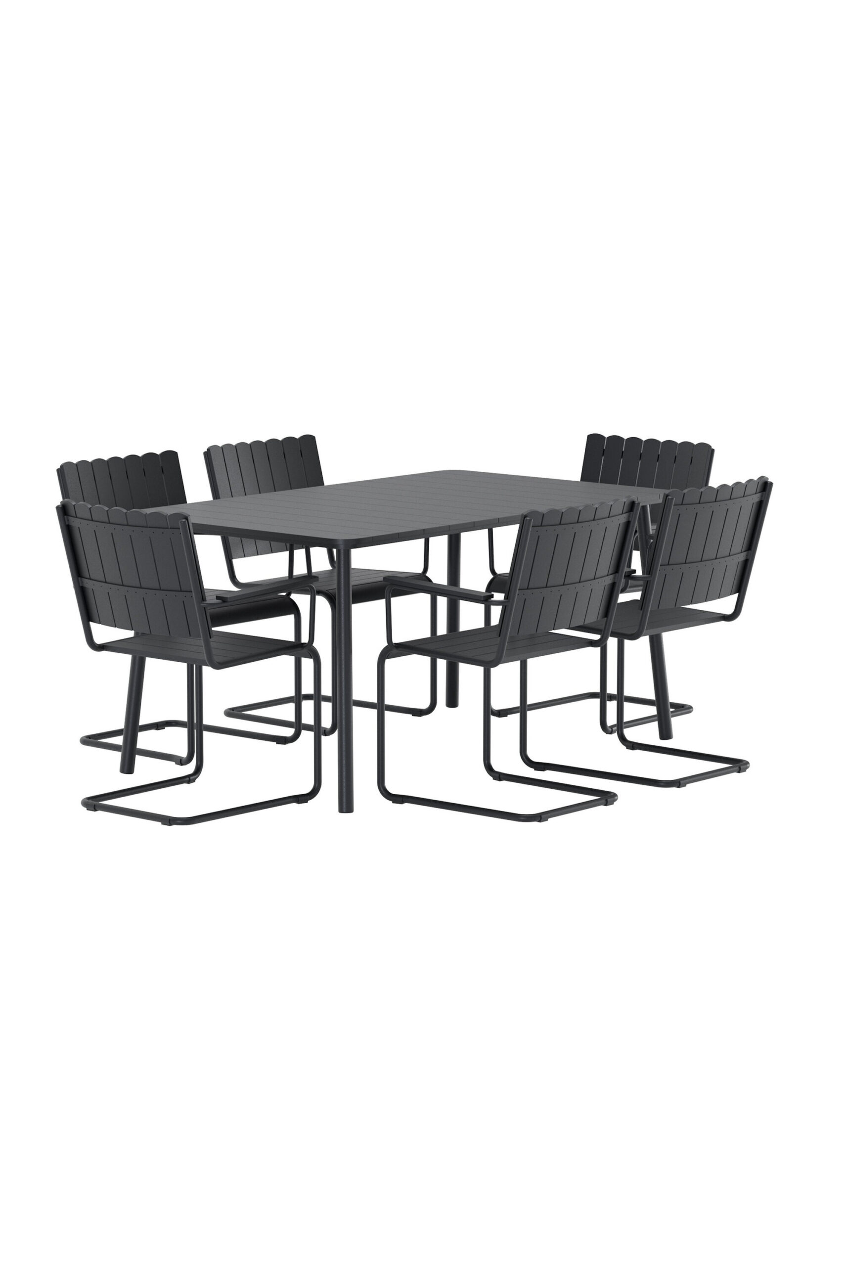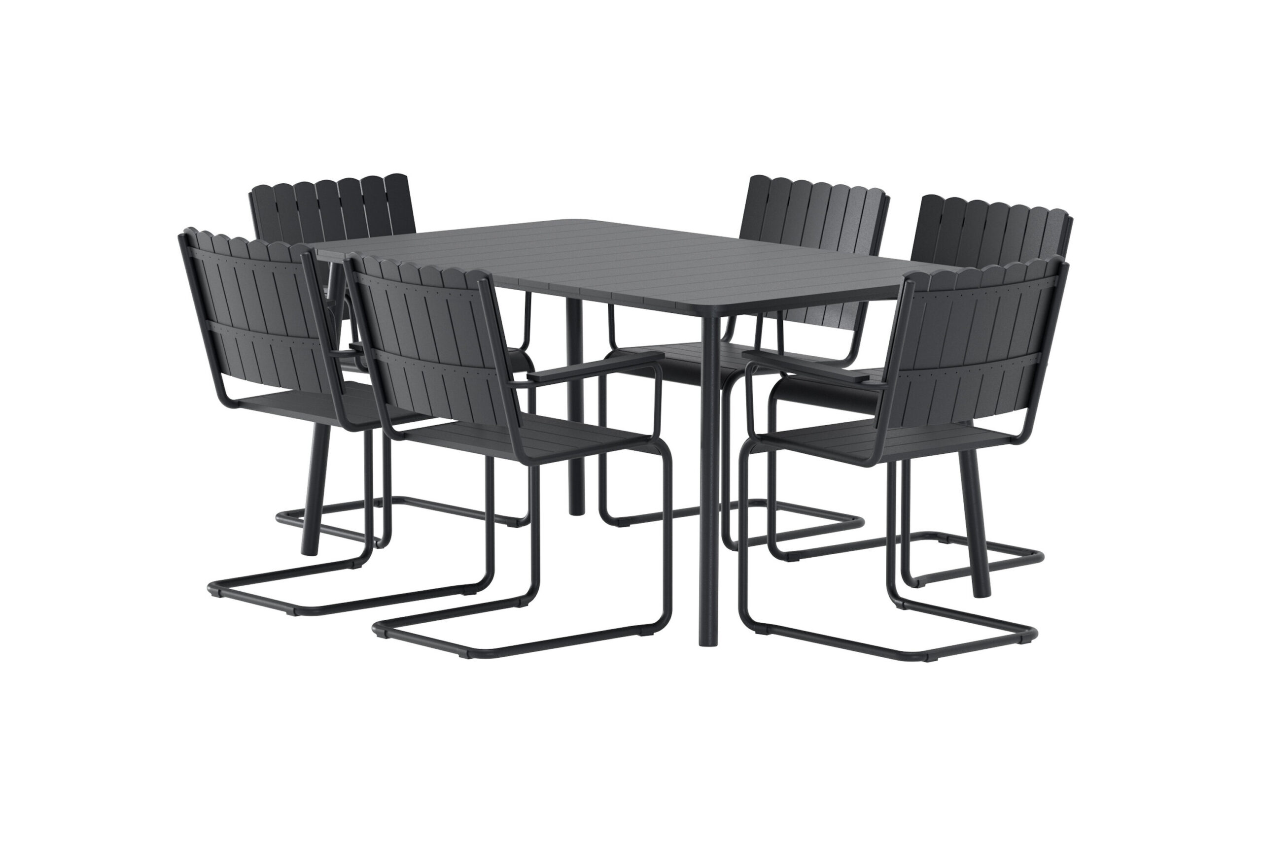 Looge moodne ja elegantne väljas einestamisnurk klanitud üleni musta disainiga Holmsundi söögikomplektiga. Komplekti kuulub ristkülikukujuline laud ja kuus sobivat tooli – ideaalne õhtusöögiks, kohvipausiks ja seltskondlikuks koosviibimiseks terrassil või aias.