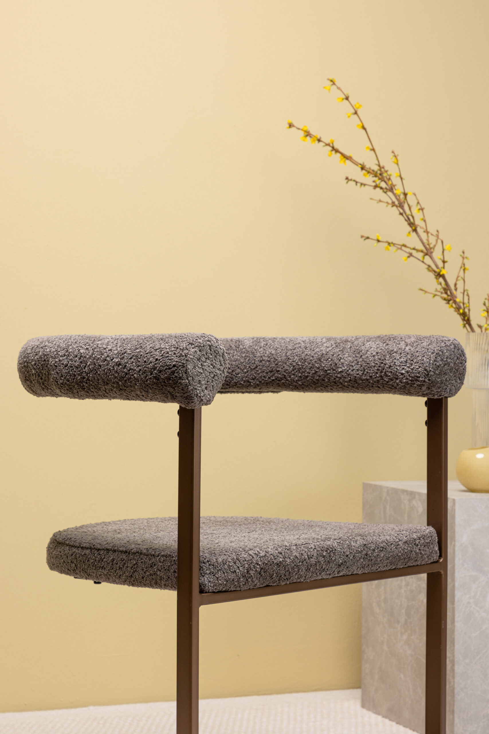 See läbimõeldud disainiga maitsev söögitool sarjast Morning on sama mugav kui stiilne! Ümar tooli seljatugi ja polsterdatud iste on hallist boule-kangast ning minimalistliku disainiga raami struktuur on pruunist terasest. Kaunista oma kodu söögitoolidega, kuhu jääd hea meelega pikaks ajaks ja naudid meeldivaid eineid koos lähedastega!