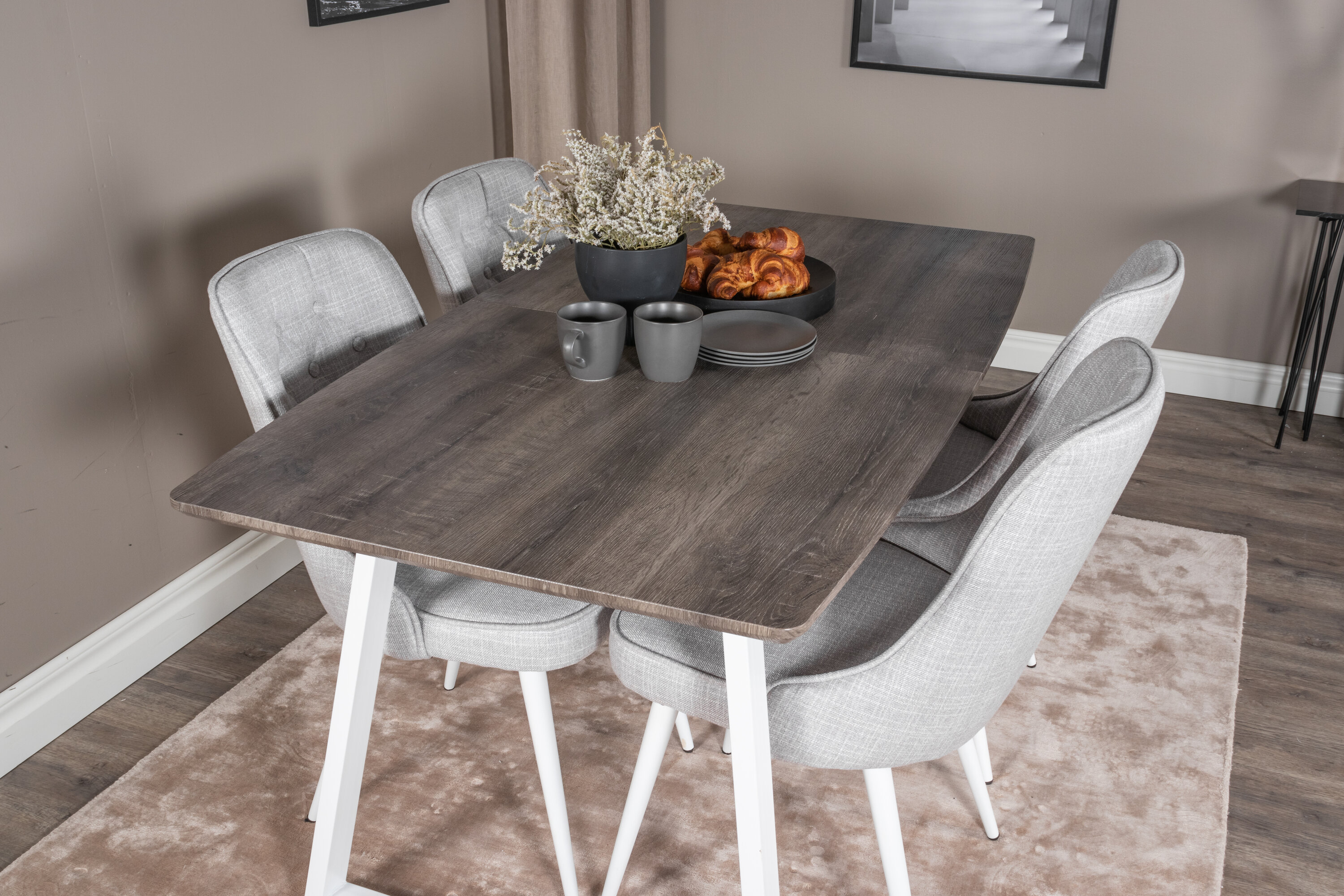 Moodne ja hubane! Söögilaud Inca koos sametist söögitoolidega annab teile söögigrupi, kes igatseb kodu järele. Toolid on tugevad ja hästi kasvanud – siin on hea meel istuda pikka aega ja nautida head sõprade seltskonda!
