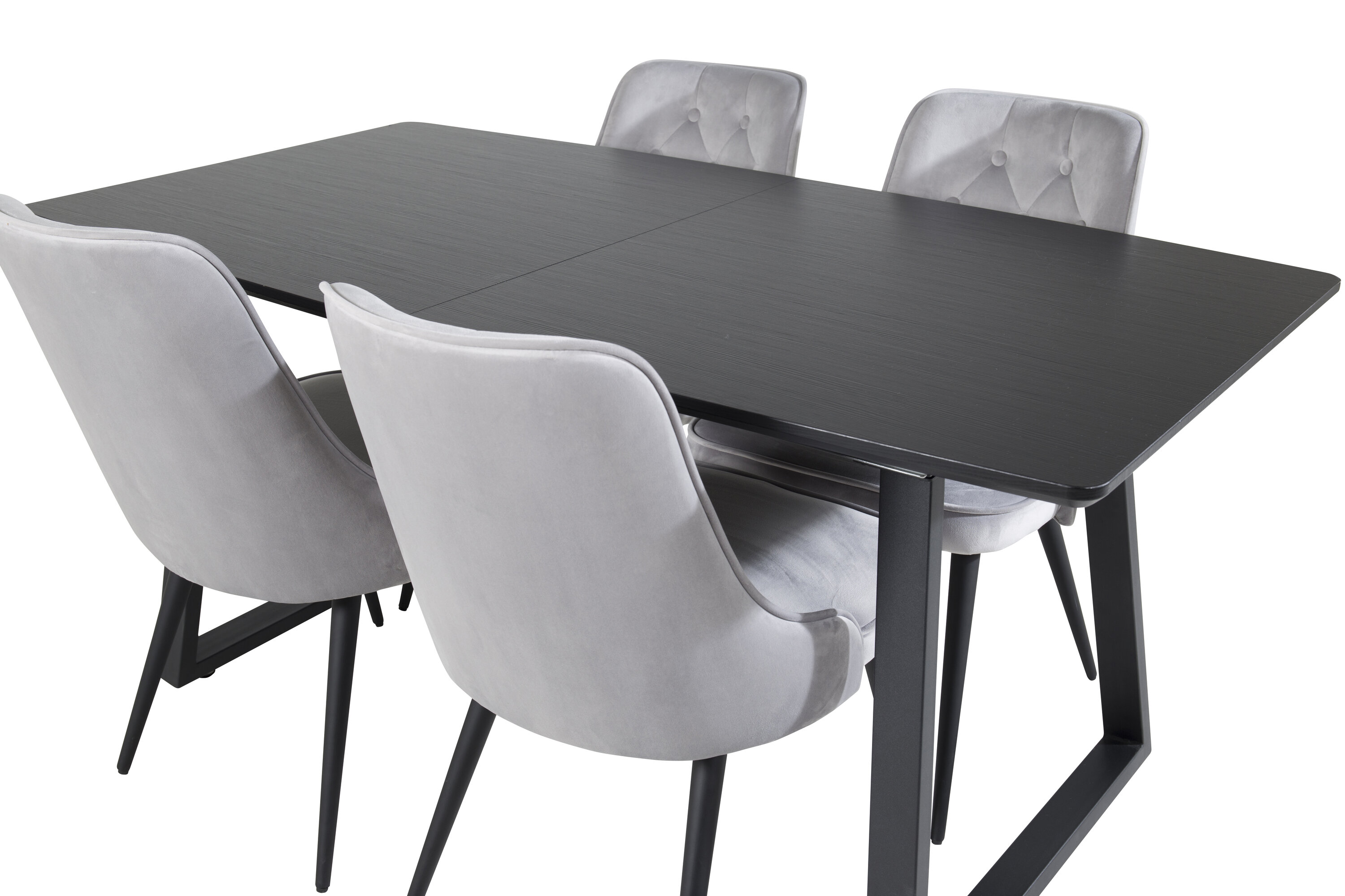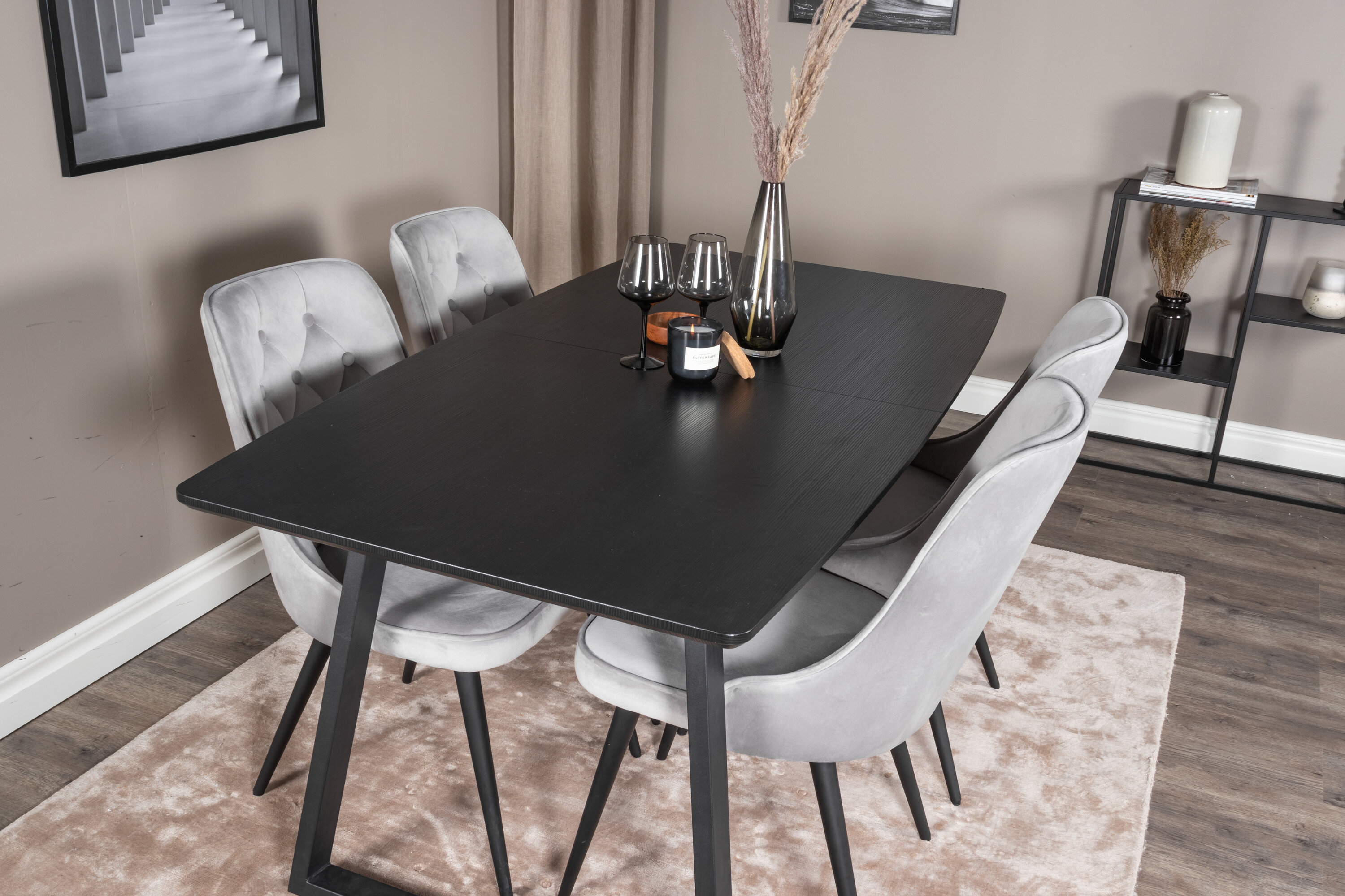 Moodne ja hubane! Söögilaud Inca koos sametist söögitoolidega annab teile söögigrupi, kes igatseb kodu järele. Toolid on tugevad ja hästi kasvanud – siin on hea meel istuda pikka aega ja nautida head sõprade seltskonda!
