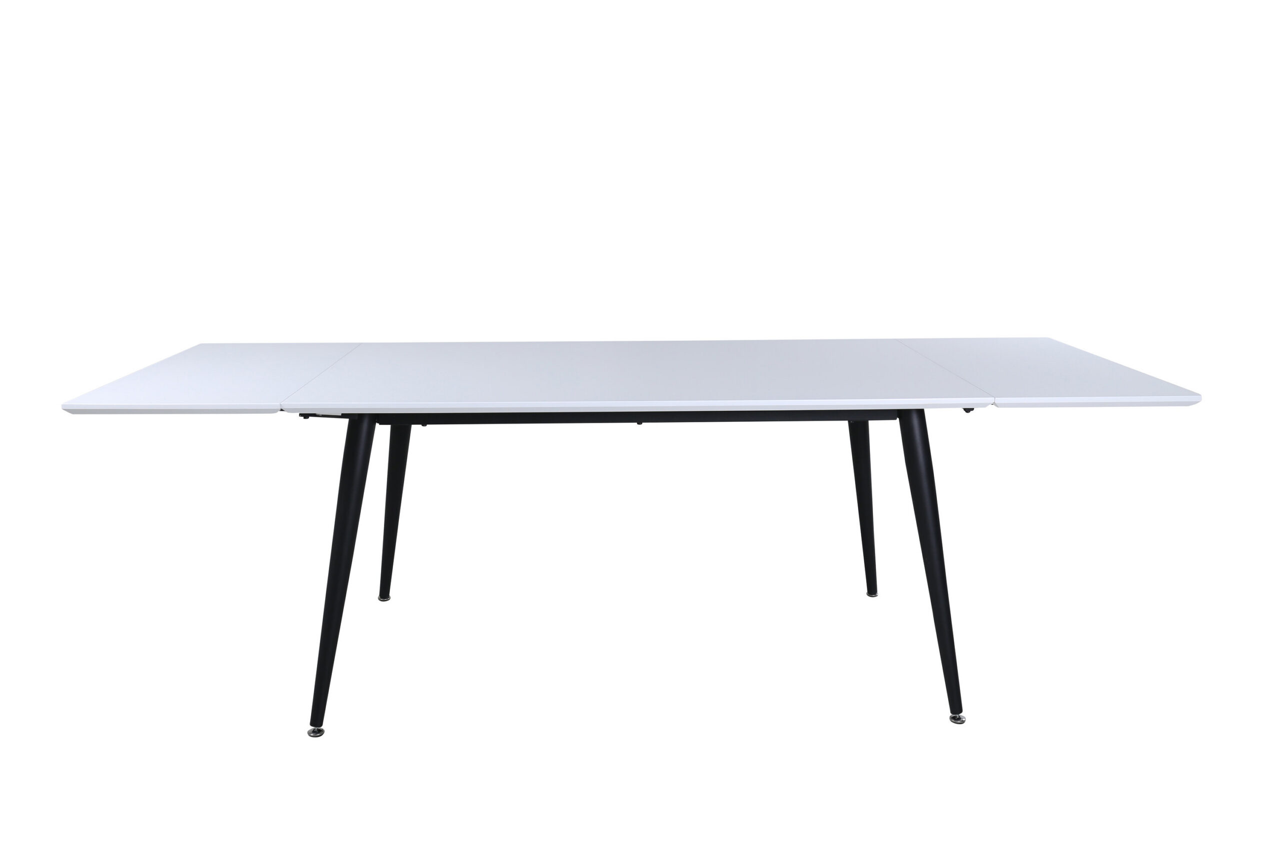 Klassikaline, stiilne ja praktiline – Jimmy söögilaud on turvaline kaart igaks juhuks! Valge HPL- ja MDF-spoonist pealisplaadi ning kergelt laienevate mustast metallist jalgadega laud sobib ideaalselt igasse interjööri ja kodudesse. Laud on pikendatav ja sobib seega nii väikesele kui ka suuremale peole. Riietuge või riietuge paari mugava söögitooliga ja looge võluv keskpunkt, kuhu koguda pere ja sõbrad!