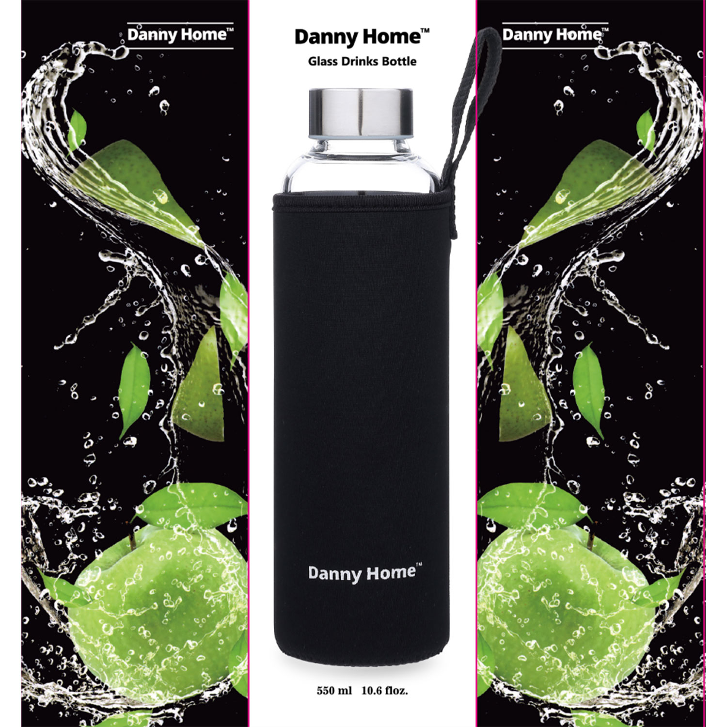 Joogipudel GLASS H22,5cm 550ml klaasist, must ümbris