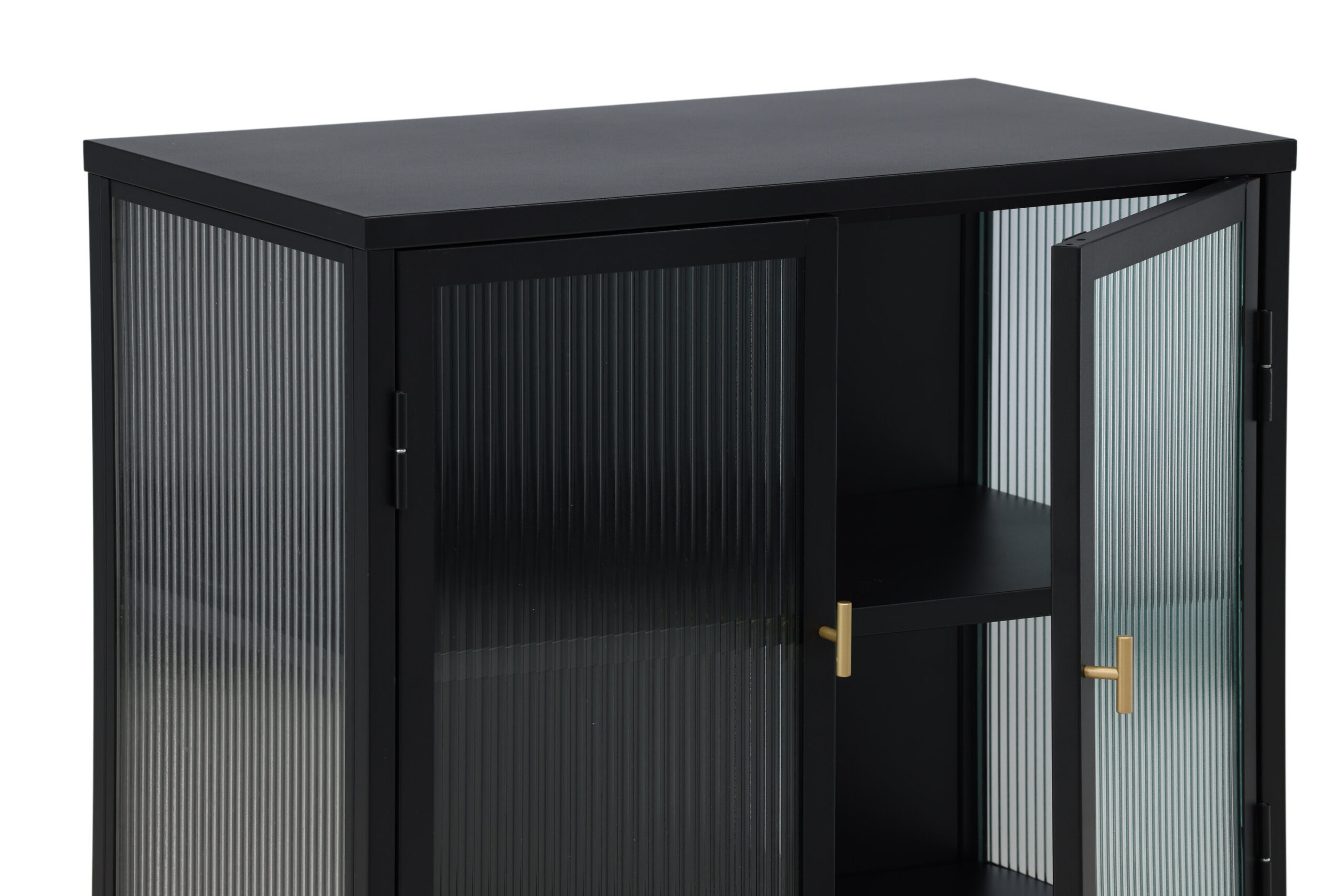 Tere tulemast keeruka hoiustamise maailma koos meie trendika Garise seeria hoiukapiga. See skandinaaviapärase disainiga must klaasustega kapp ühendab esteetika funktsionaalsusega. Kahel klaasuksel on volditud disain ja kappi raamib klanitud mustast pulbervärvitud metallist raam, mis teeb sellest kapist ajatu investeeringu teie interjööri.