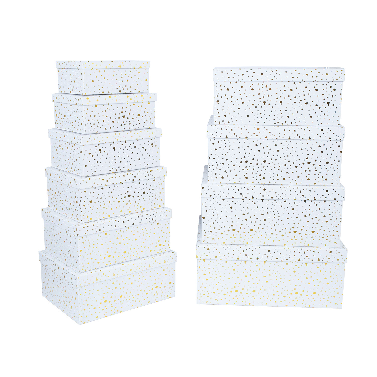 Pappkarp DIANA-3 kaanega 33×25,5xH14,5cm, valge kuldsete täppidega