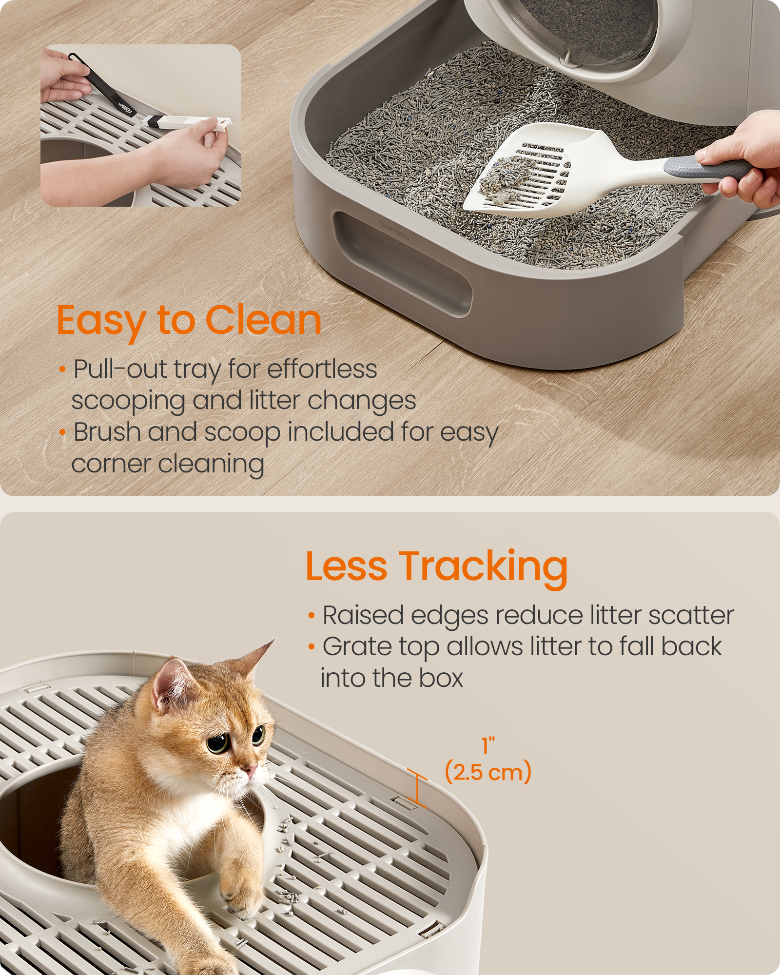 Spetsifikatsioonid: Värv: Kaerahelbekarva, soe hall Materjal: PP (polüpropüleen) Toote mõõdud: 54 x 42,8 x 40 cm (21,3″P x 16,9″L x 15,7″K) Toote kaal: 3 kg (6,7 naela) Kaane maksimaalne staatiline kandevõime: 15 kg (33 naela) Pakisisu: 1 x liivakast 1 x kühvel 1 x harja ja labida komplekt 1 x juhend