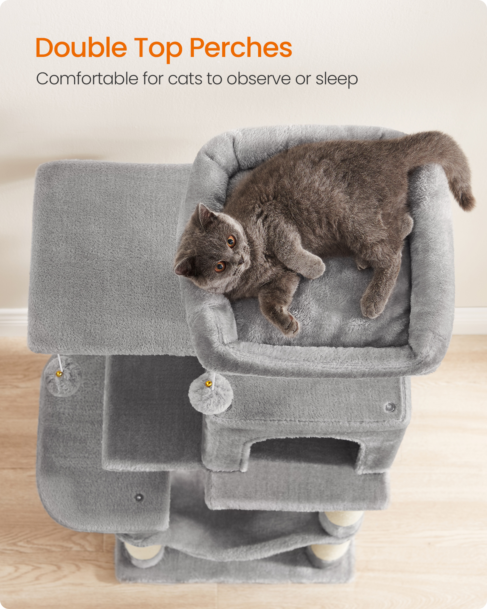 Spetsifikatsioonid: – Värvus: helehall – Materjal: puitlaastplaat, plüüs, sisal – Toote mõõdud: 45 x 35 x 112 cm (P x L x K) – Toote kaal: 10 kg – Maksimaalne staatiline kandevõime: 40 kg – Ideaalne kasside arv: kuni 4 kassi (igaüks ≤ 5 kg) Pakisisu: – 1 x kassipuu – 1 x ümberkukkumisvastane komplekt – 1 x tarvikute komplekt – 1 x juhend Feandrea Märkused: – Kui teie karvane sõber hakkab pompomi või kummipaela närima või sööma, eemaldage need ja hoidke neid mõnda aega oma karvase sõbra käeulatusest eemal. – Kui kassi koobas on ulakate käppade poolt kriimustatud või kahjustatud, parandage või vahetage see enne edasist kasutamist, et vältida oma karvase sõbra vigastamise ohtu. – Kuna kassid armastavad hüpata ja mängida, kinnitage kassitorn ohutuks kasutamiseks seinale kaasasoleva ümberkukkumisvastase komplektiga.