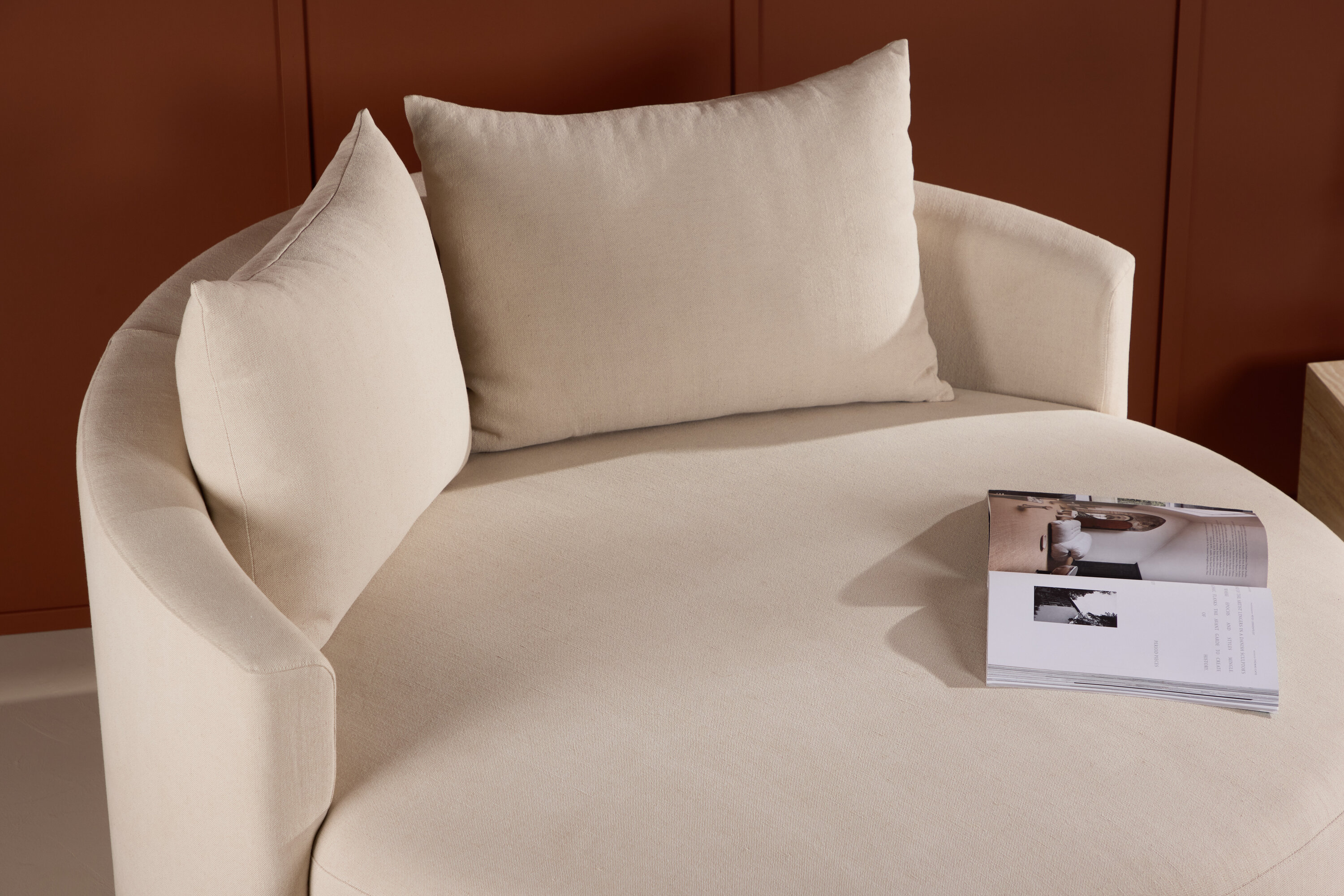 Andke oma kodule ainulaadne ja stiilne hõng Kelso diivaniga, ümmarguse diivaniga, mis on polsterdatud elegantse beeži linaga. Oma muljetavaldava 150 cm läbimõõduga Kelso muutub keskseks ja pilkupüüdvaks mööbliesemeks igas ruumis, kuhu see paigutatakse. Beež linane kangas annab diivanile loomuliku ja läbimõeldud tunde, mis harmoneerub erinevate interjööristiilidega, alates kaasaegsest minimalismist kuni klassikalise elegantseni. Linane kangas pole mitte ainult ilus, vaid ka vastupidav ja pehme, muutes Kelso kutsuvaks kohaks lõõgastumiseks. Kelso ümmargune kuju loob vahetu ühtekuuluvus- ja kogukonnatunde, mis sobib ideaalselt pere ja sõprade kogumiseks. Selle suur istmesügavus ja hoolikalt kujundatud seljatugi tagavad, et diivan mitte ainult ei näe fantastiline, vaid pakub ka mugavat istumiskogemust. Kelso sobib ideaalselt suurematesse elutubadesse või avatud ruumidesse, kus see võib olla keskne mööbliese ja kogunemiskoht. Ükskõik, kas kasutate seda raamatuga lõõgastumiseks, külalistega suhtlemiseks või lihtsalt vaikset hetke nautimiseks, on Kelso diivan nii stiili kui ka mugavuse väljendus. Laske beežist linasest Kelso diivanist saada teie kodu elegantne fookuspunkt, kus selle ainulaadne disain ja ümar kuju loovad rahuliku ja läbimõeldud võlu atmosfääri.