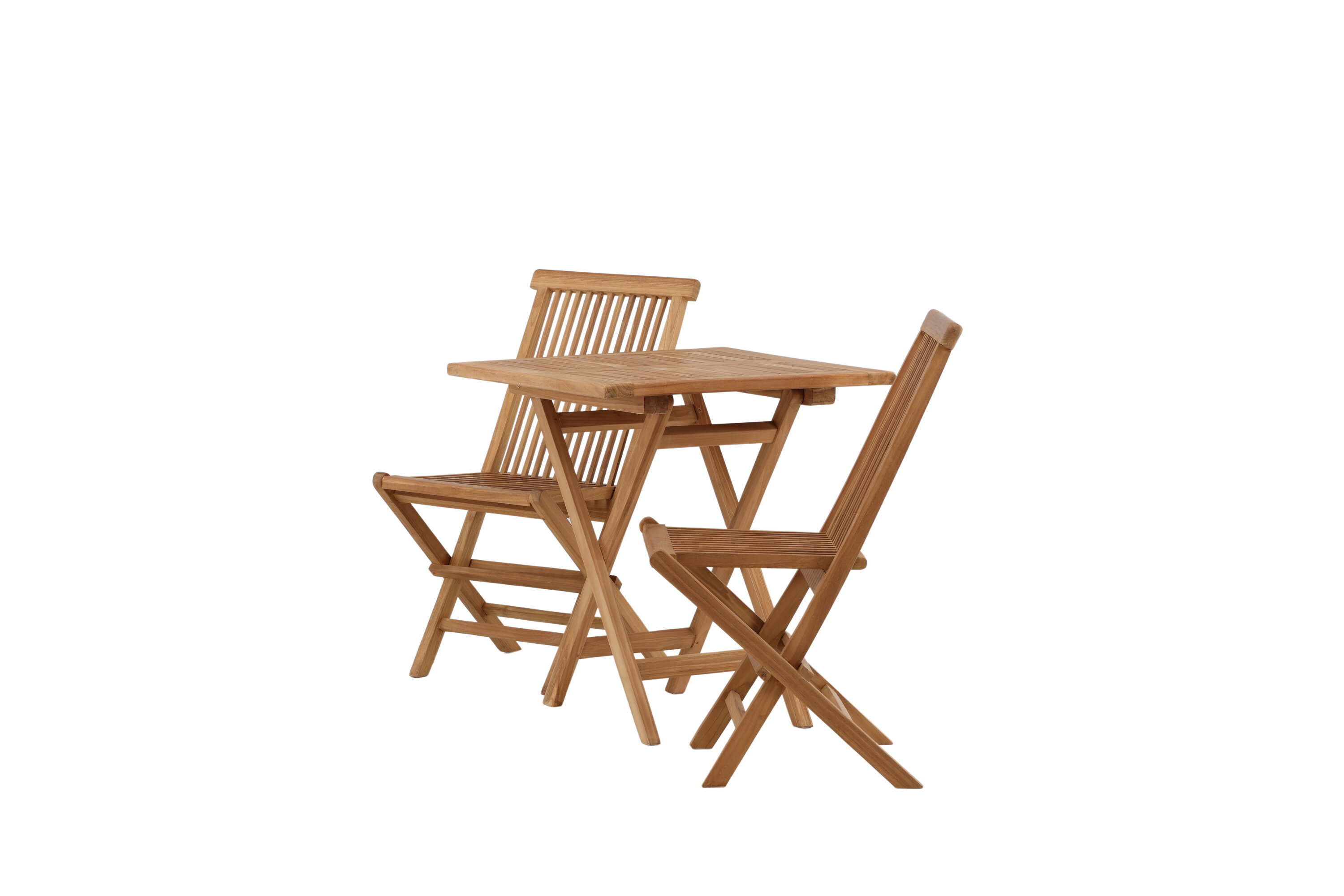 Moodsa disaini ja luksusliku välimusega armas kohvikugrupp! Kenya kohvikulaud on kokkupandav, moodsas stiilis tiikpuust. Klassikalise töötluse ja sujuva disainiga lauda on lihtne sobitada ja liigutada. Mõõdud: 70×70 cm. Siin koos sama sarja trendikindlate tiikpuust söögitoolidega. Toolid on kokkupandavad ja kutsuva disainiga – naudi sel suvel kohvipausi õues!