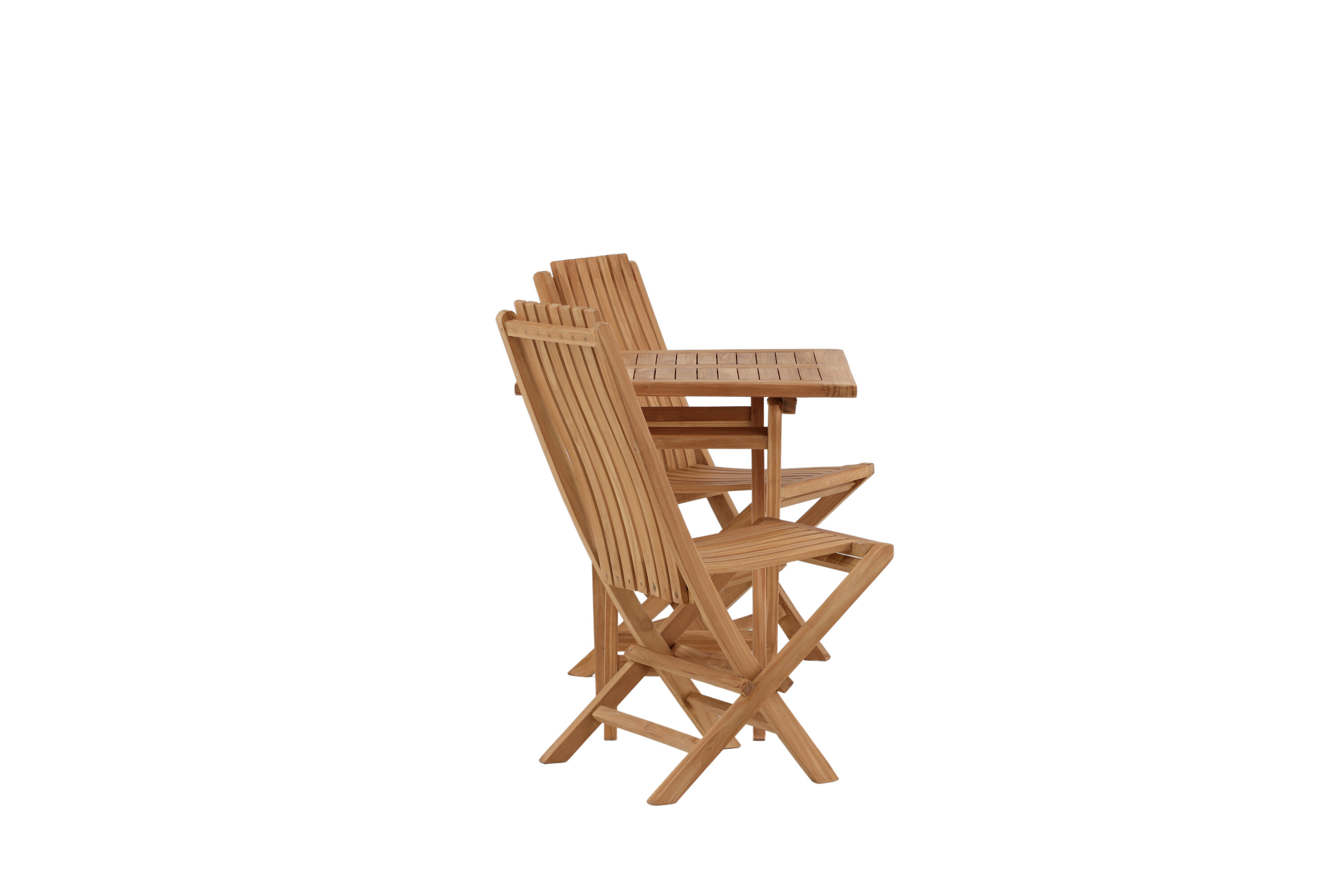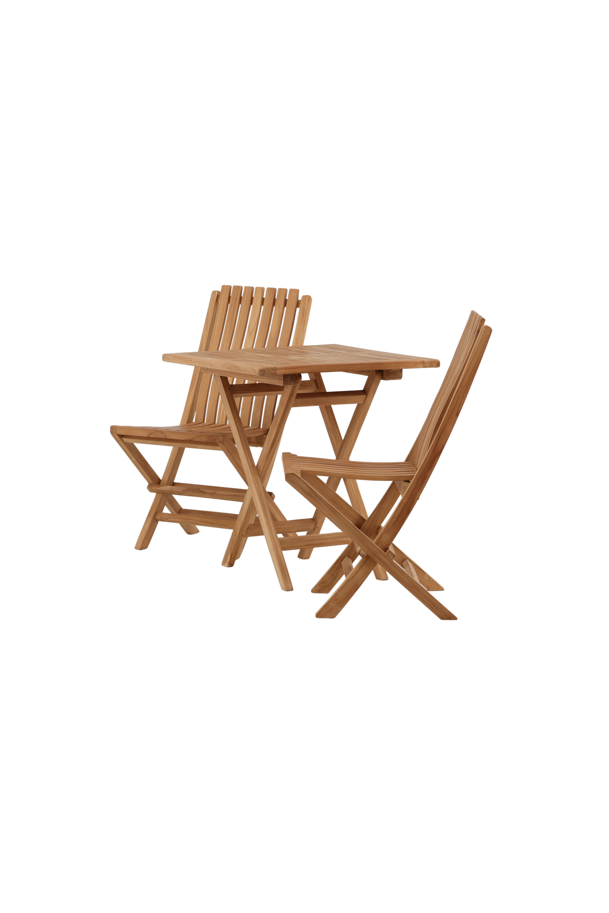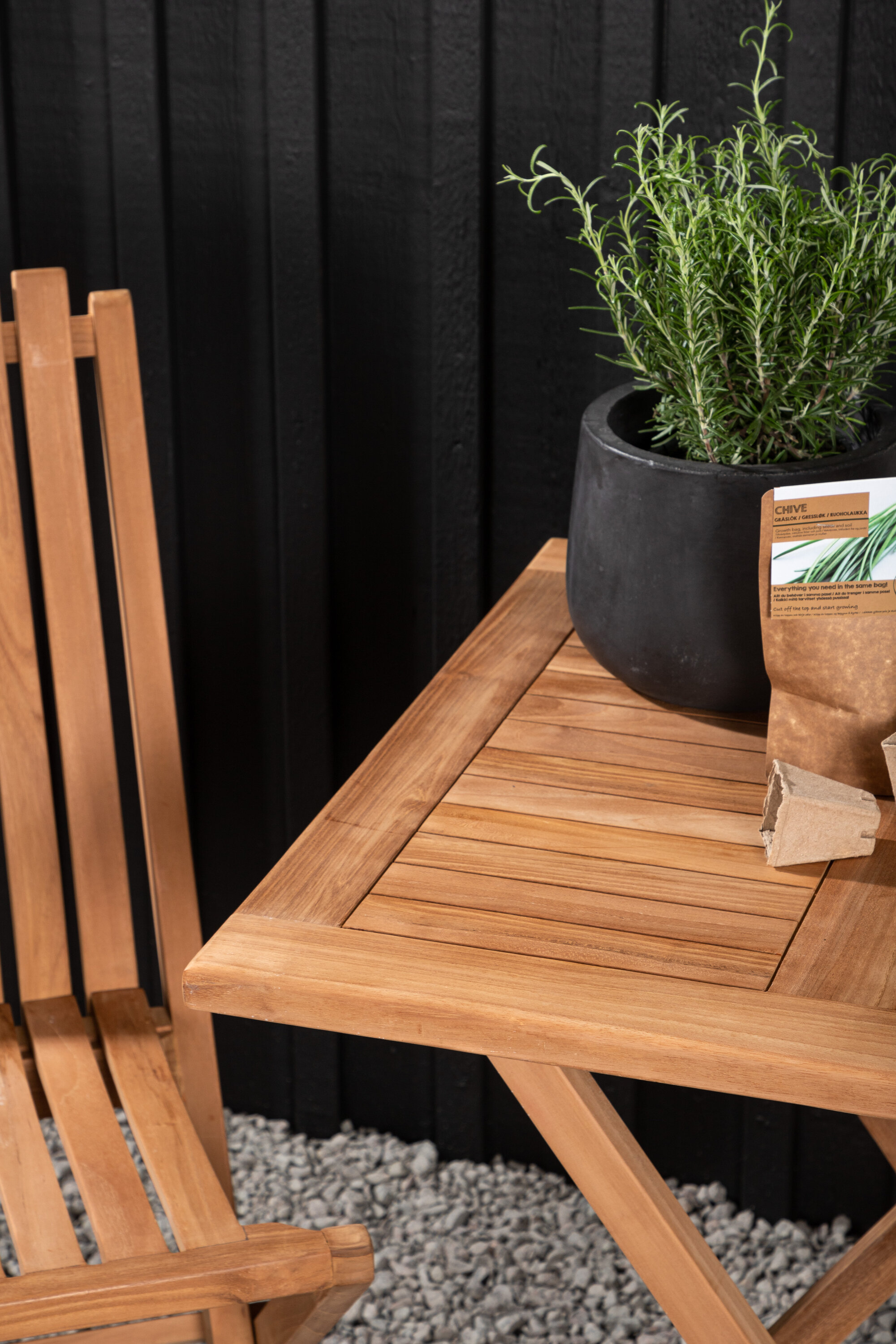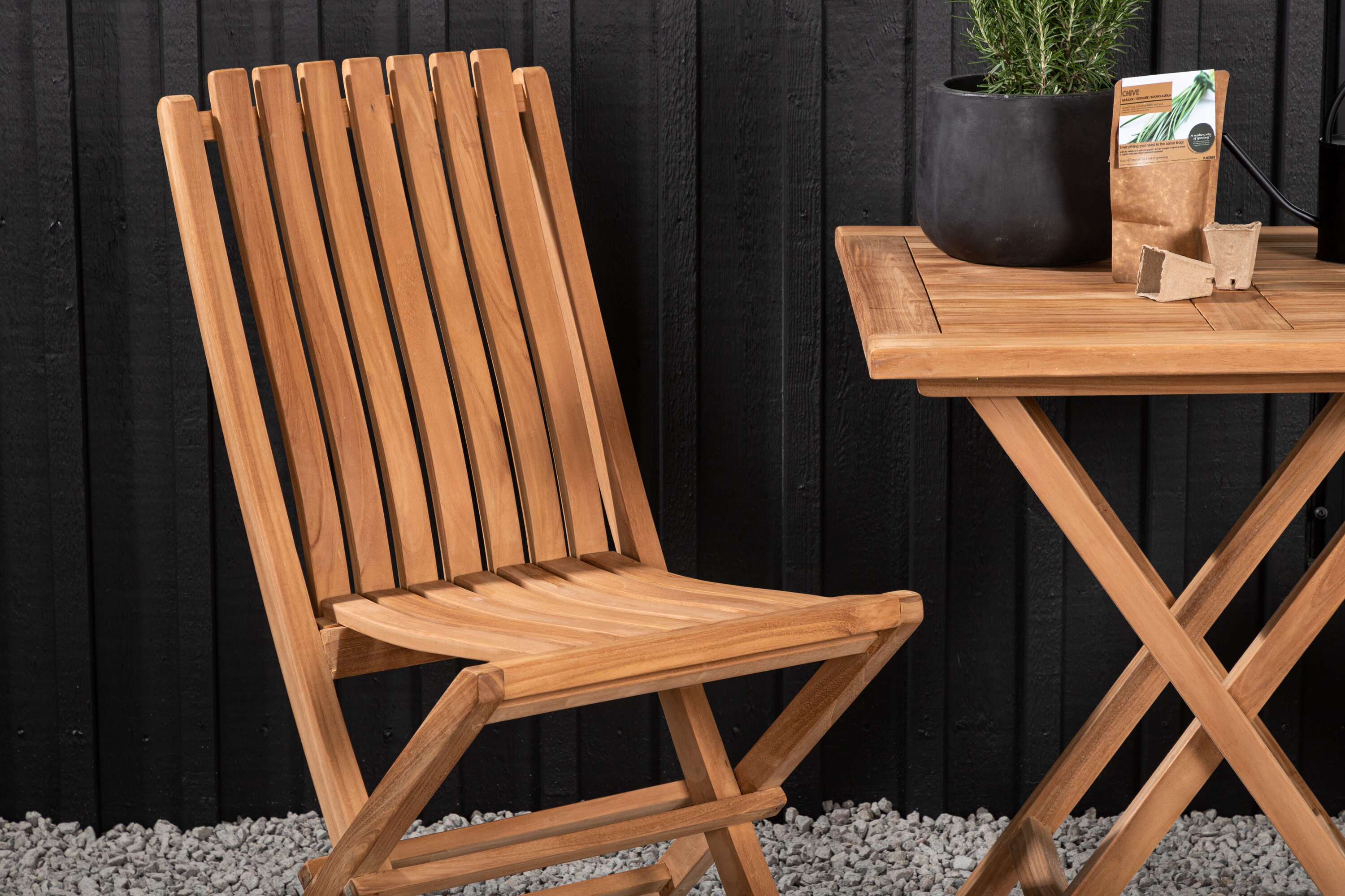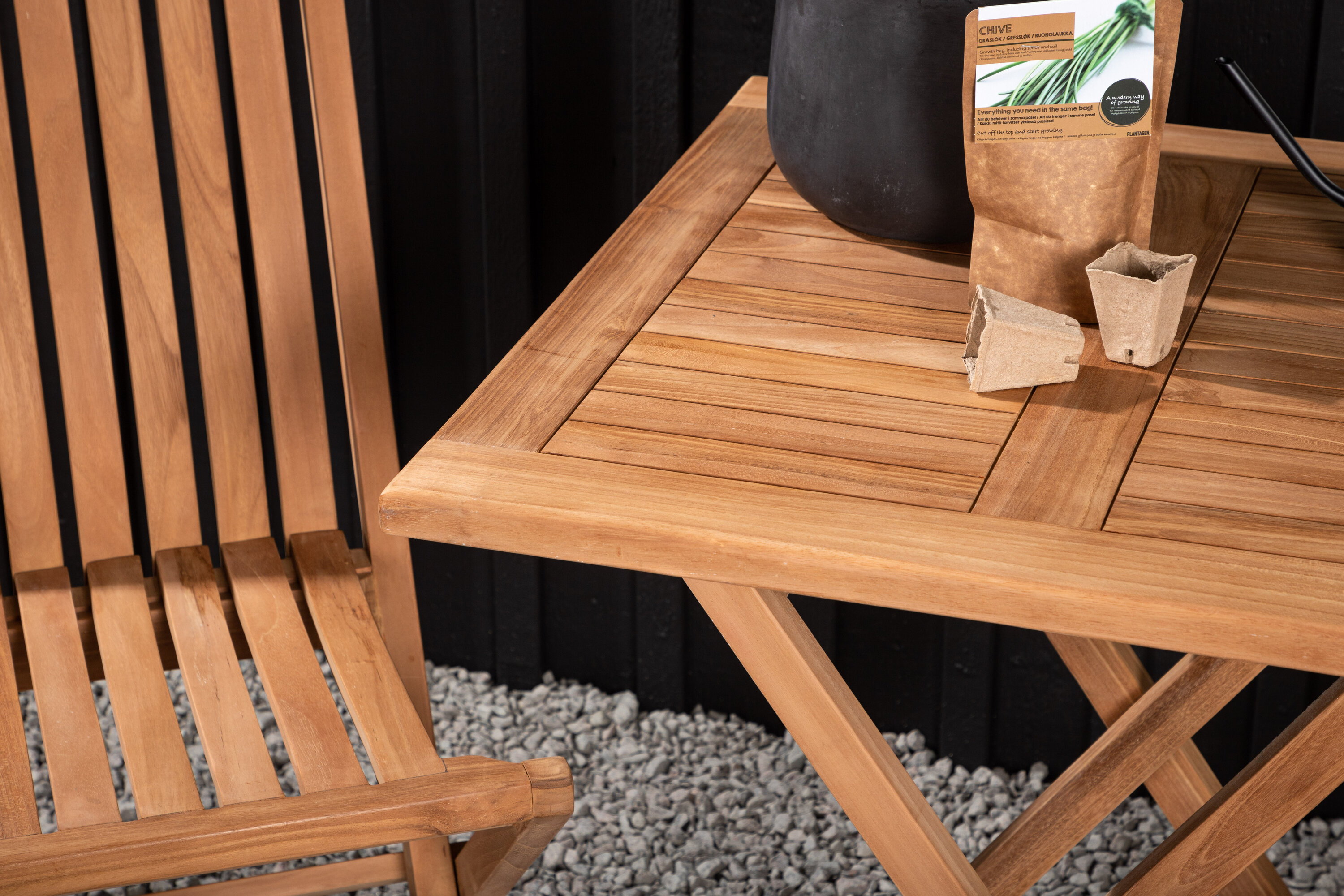 Moodsa disaini ja luksusliku välimusega maitsev kokkusobiv kohvikugrupp! Kenya Café laud on ideaalne kaunis tiikpuust laud, mis sobib suurepäraselt kogu suve õues hommikusöögiks ja pärastlõunaseks kohviks. Klassikalise disaini ja paindliku disainiga lauda on lihtne kokku sobitada ja seda on lihtne liigutada. Mõõdud: 70×70 cm. Siin koos trendikindlate söögitoolidega Ghana seeriast sobivast tiikpuust. Toolid on kokkupandavad ja kutsuva disainiga – nautige sel suvel viigimarja õues!