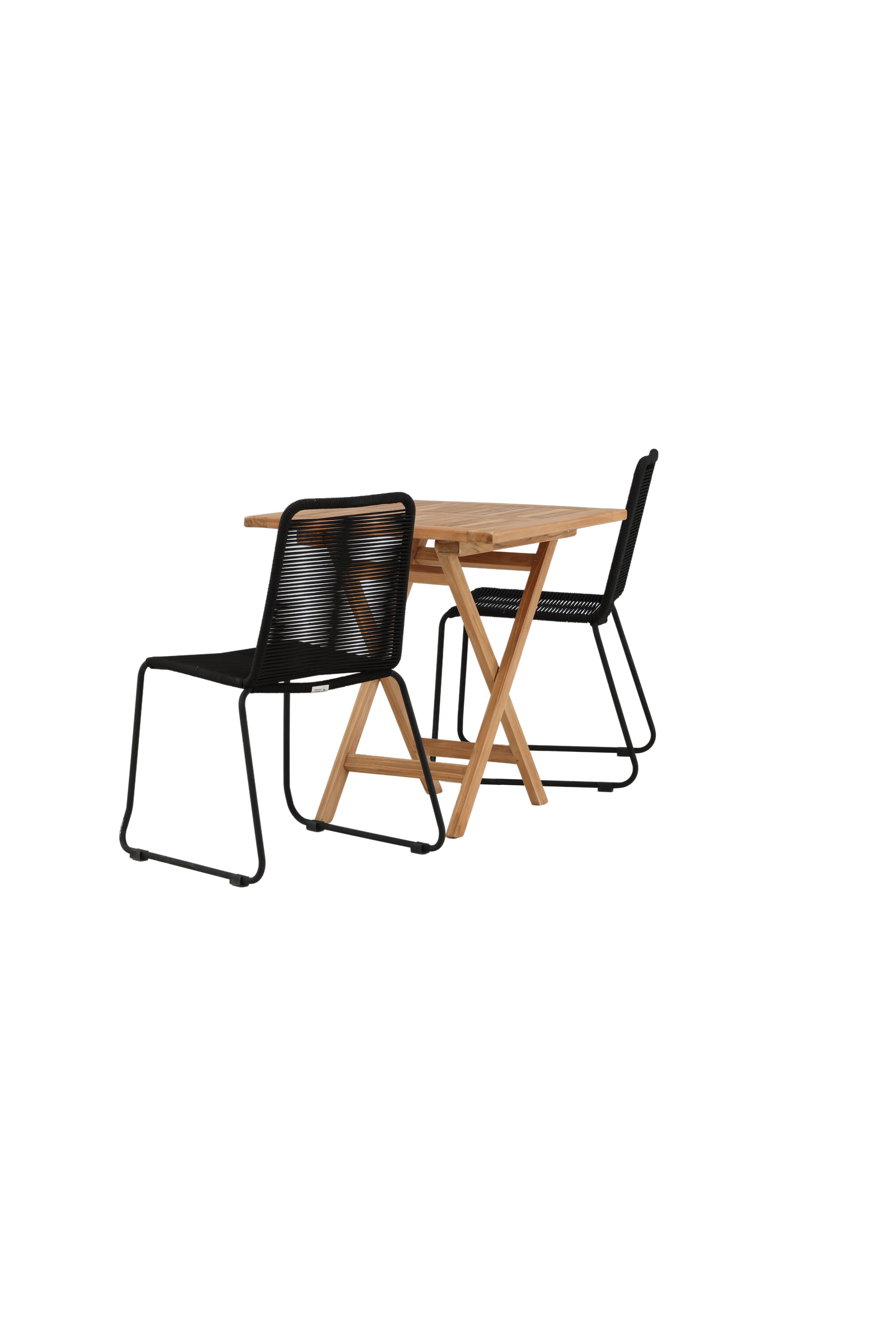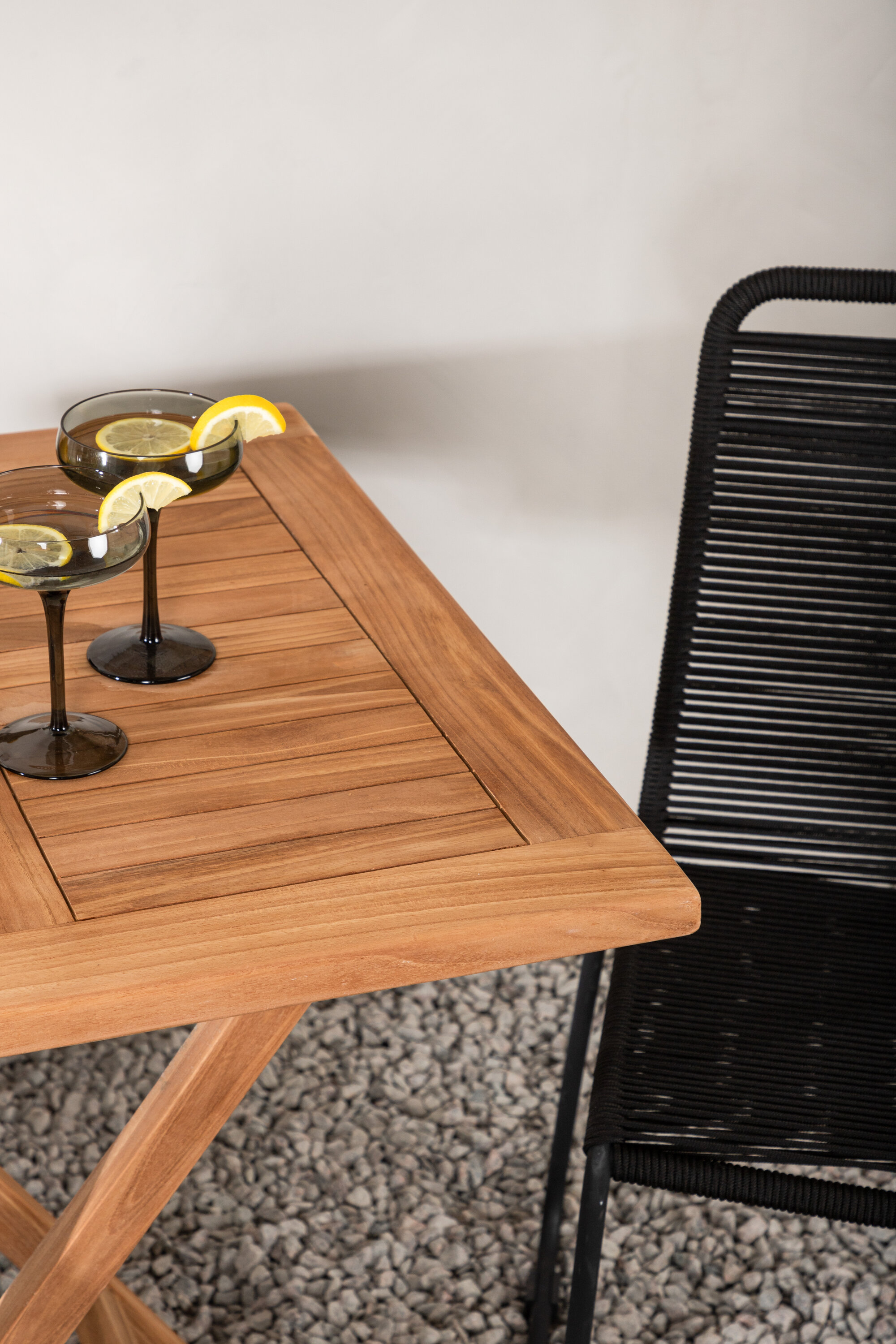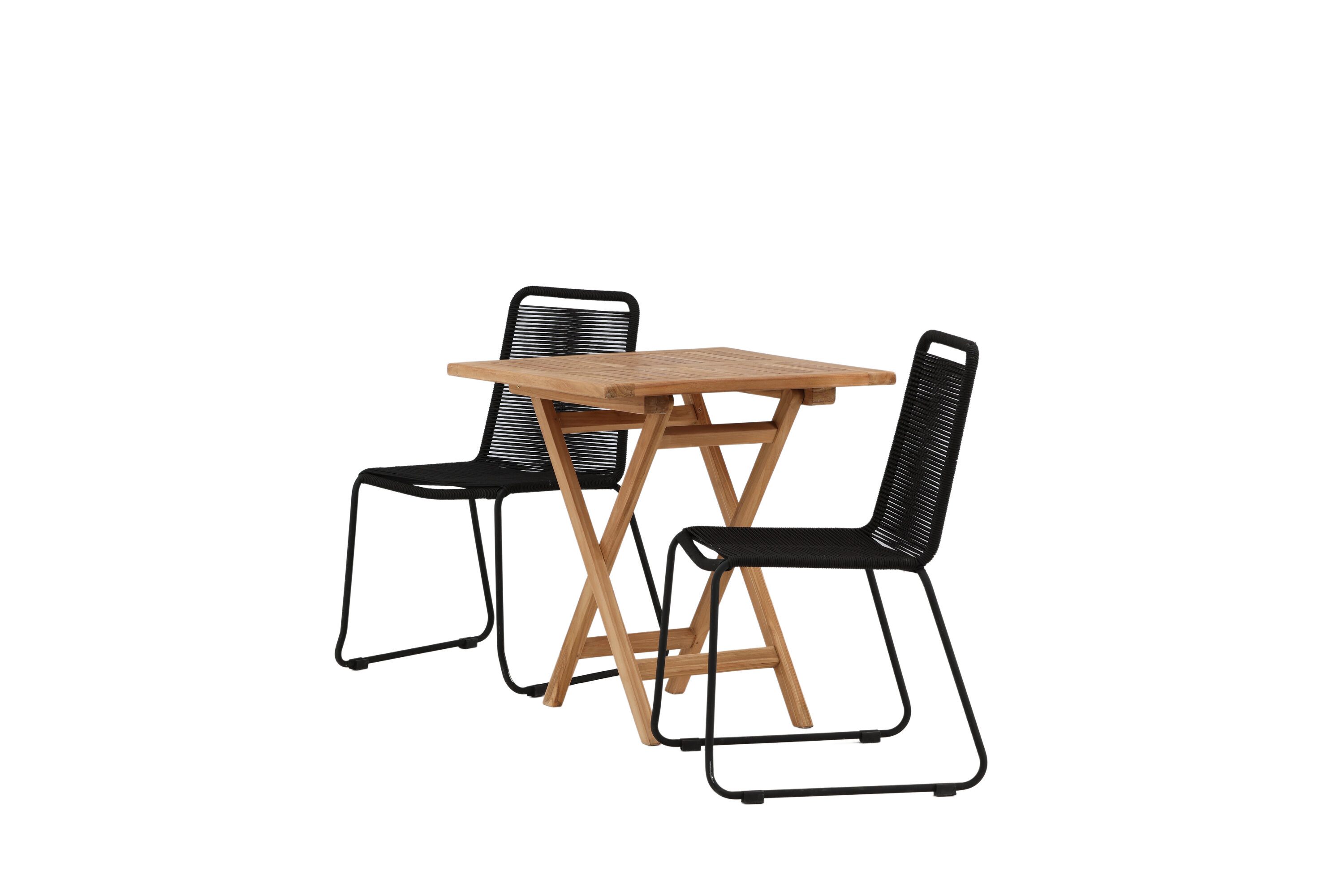 Sisusta rõdu või terrass võluvalt kõikideks suvepuhkudeks! Kenya Café laud on ideaalne kaunis tiikpuust laud, mis sobib suurepäraselt kogu suve õues hommikusöögiks ja pärastlõunaseks kohviks. Klassikalise disaini ja paindliku disainiga lauda on lihtne kokku sobitada ja seda on lihtne liigutada. Mõõdud: 70×70 cm. Siin koos Lindose sarja toolidega moeteadlikus disainis. Toolidel on stiilsed kitsad mustast alumiiniumist jalad ja vastupidavast mustast köiest iste. See on kutsuv toidugrupp kahele, mis pikendab sel suvel kindlasti mõnusaid hetki!