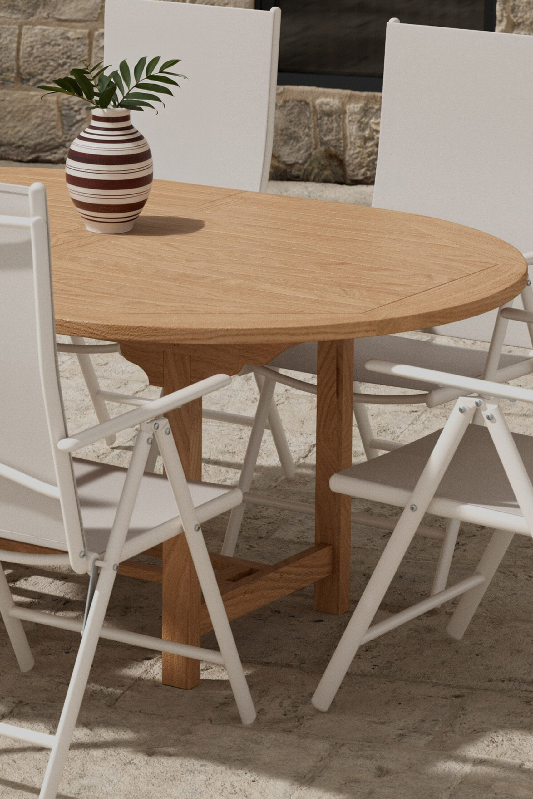 Selle elegantse Break lamamistoolide ja tiikpuust ovaalse Kenya söögilaua kombinatsiooniga looge stiilne ja mugav välisöögituba. Break lamamistool on koht, kus disain kohtub funktsiooniga. Beež värv ja vastupidav alumiiniumraam annavad kaasaegse ja harmoonilise ilme, samas kui tugevast tekstiilist iste pakub suurepärast mugavust. Tool on ka kokkupandav ja reguleeritava seljatoega – ideaalne nii söömiseks kui ka lõõgastumiseks. Kenya söögilaud on ajatu ja võluv ovaalne laud, mis on valmistatud vastupidavast tiikpuust. See pakub istekohti kuuele ja sobib nii terrassile kui ka aeda. Naturaalne tiikpuu pind annab sooja ja kutsuva tunde, mis tõstab kogu väliskeskkonna kõrgele. Break toolid ja Kenya laud moodustavad koos funktsionaalse, vastupidava ja elegantse söögikomplekti – ideaalne suvisteks õhtusöökideks ja seltskondlikeks hetkedeks.