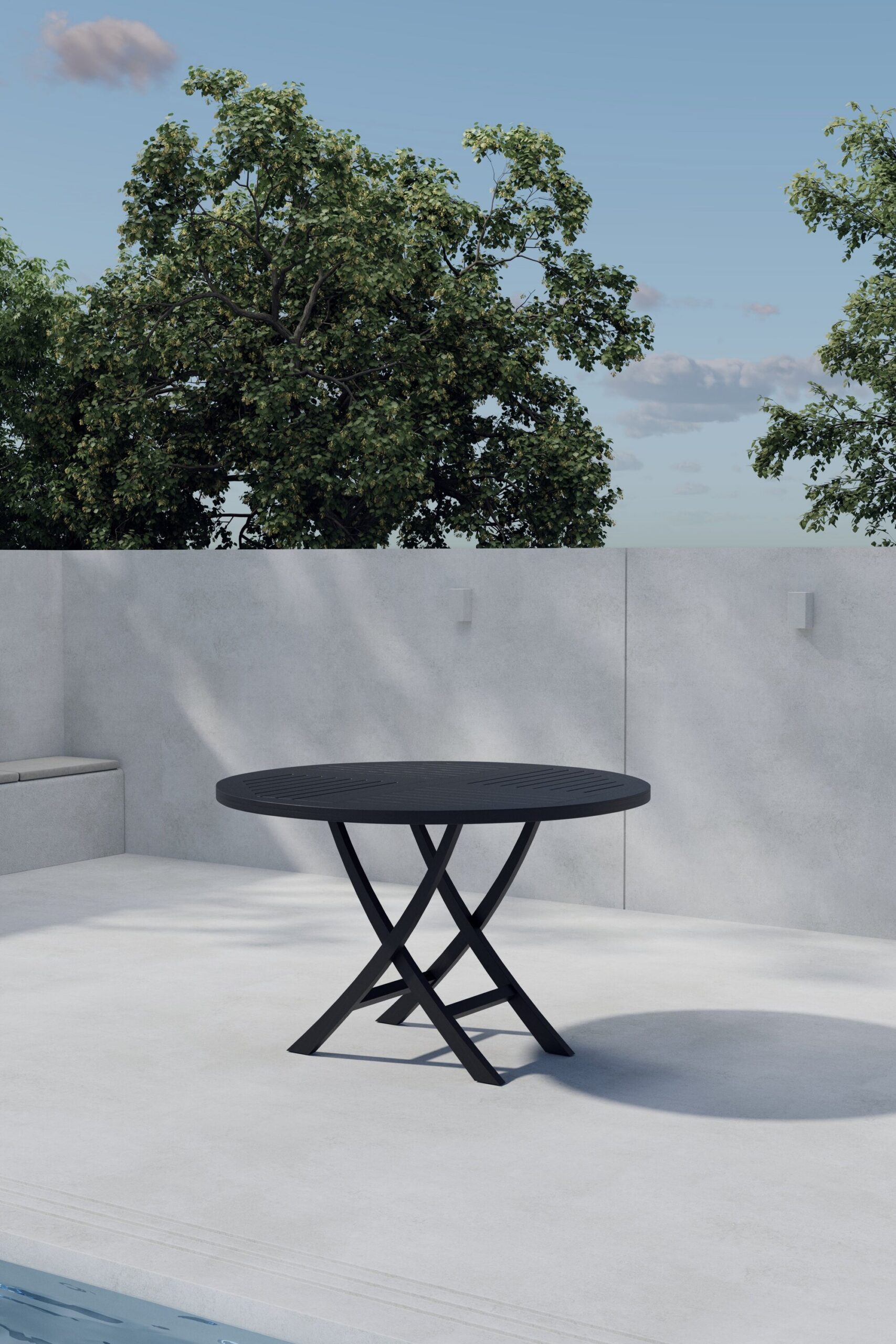 Elegantsest mustast tiikpuust Kenya ümmarguse söögilauaga saate oma väliruumile elegantse ja kaasaegse tunde anda. Laual on elegantne disain, kus ümmargune lauaplaat toetub ristuvale alusele, luues stabiilse ja harmoonilise ilme. Must tiikpuu pind tõstab esile laua eksklusiivse iseloomu ning loob kauni kontrasti roheluse ja heledama mööbli taustal.