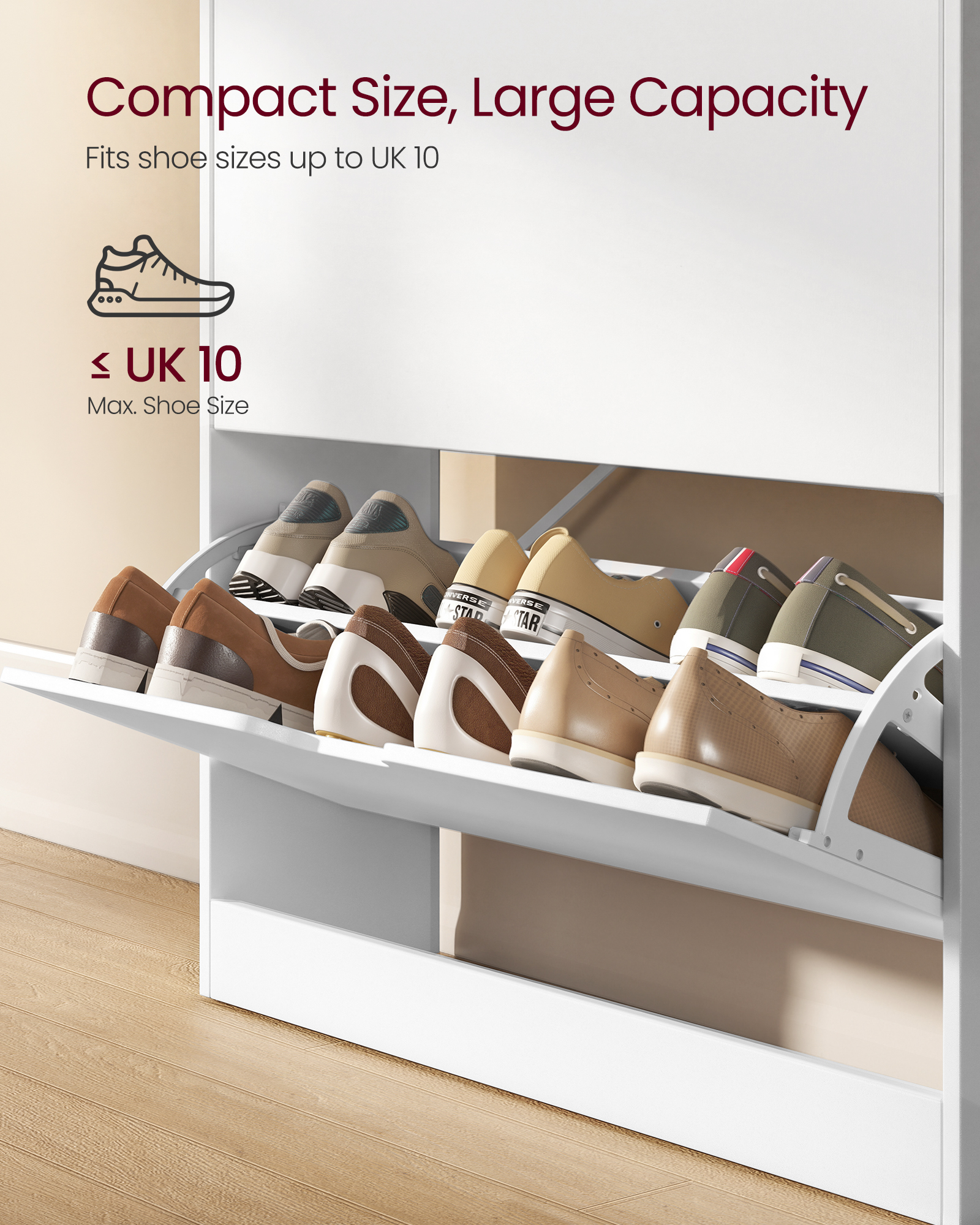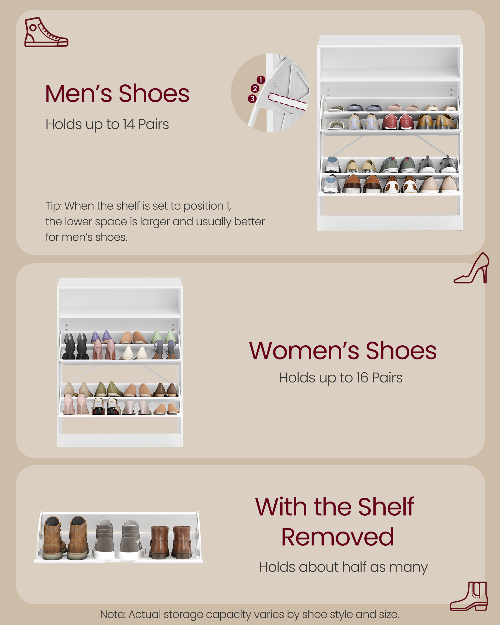 Spetsifikatsioonid: – Värvus: Pilvevalge – Materjal: Puitlaastplaat – Toote mõõdud: 9,4″S x 31,5″L x 40,2″K (24 x 80 x 102 cm) – Toote kaal: 41,9 naela (19 kg) – Maksimaalne staatiline kandevõime: 75 naela (34 kg) Pakisisu: – 1 x Jalanõudekapp – 1 x Lisatarvikute komplekt – 1 x Kallutusvastane komplekt – 1 x Kasutusjuhend